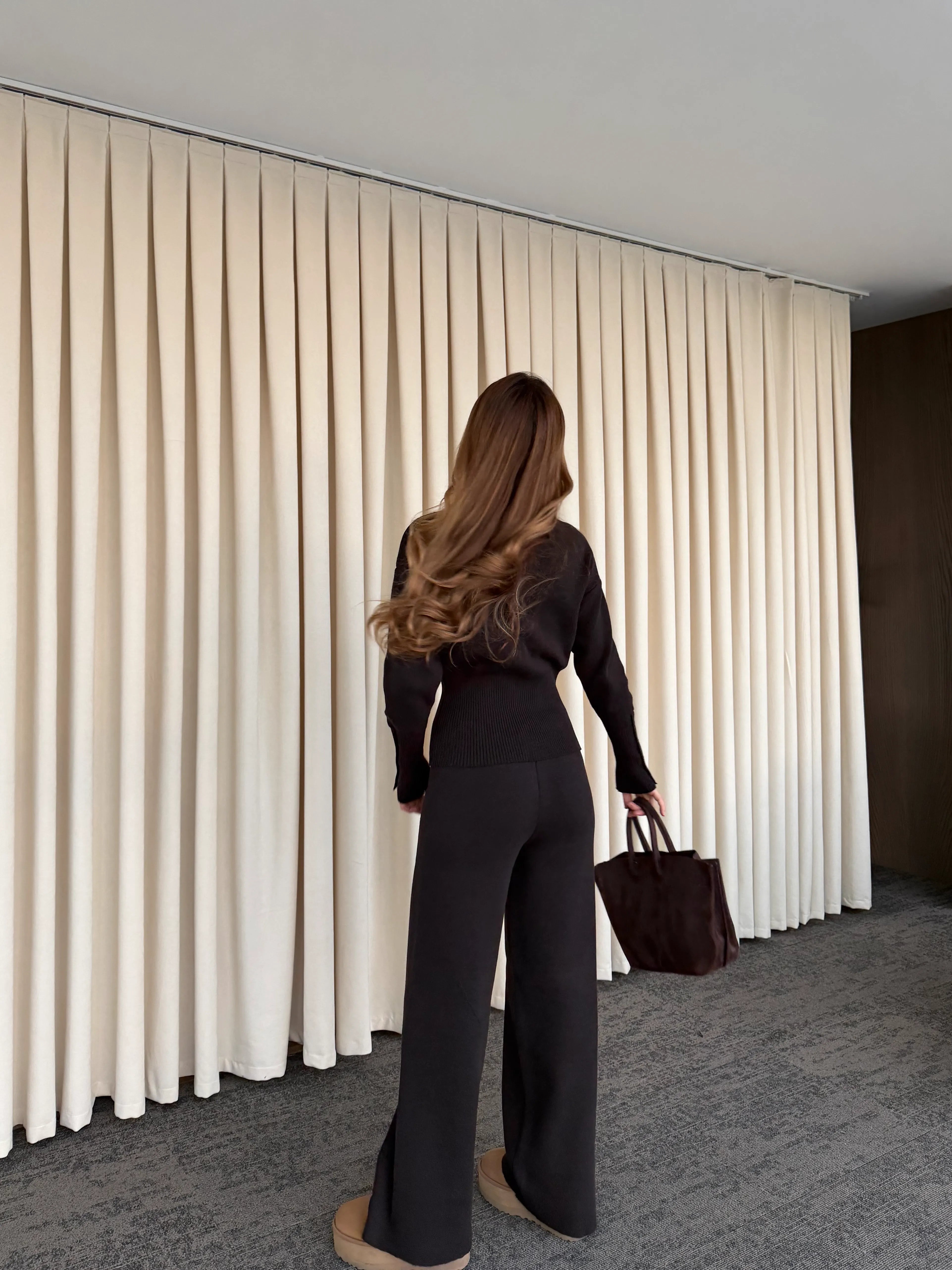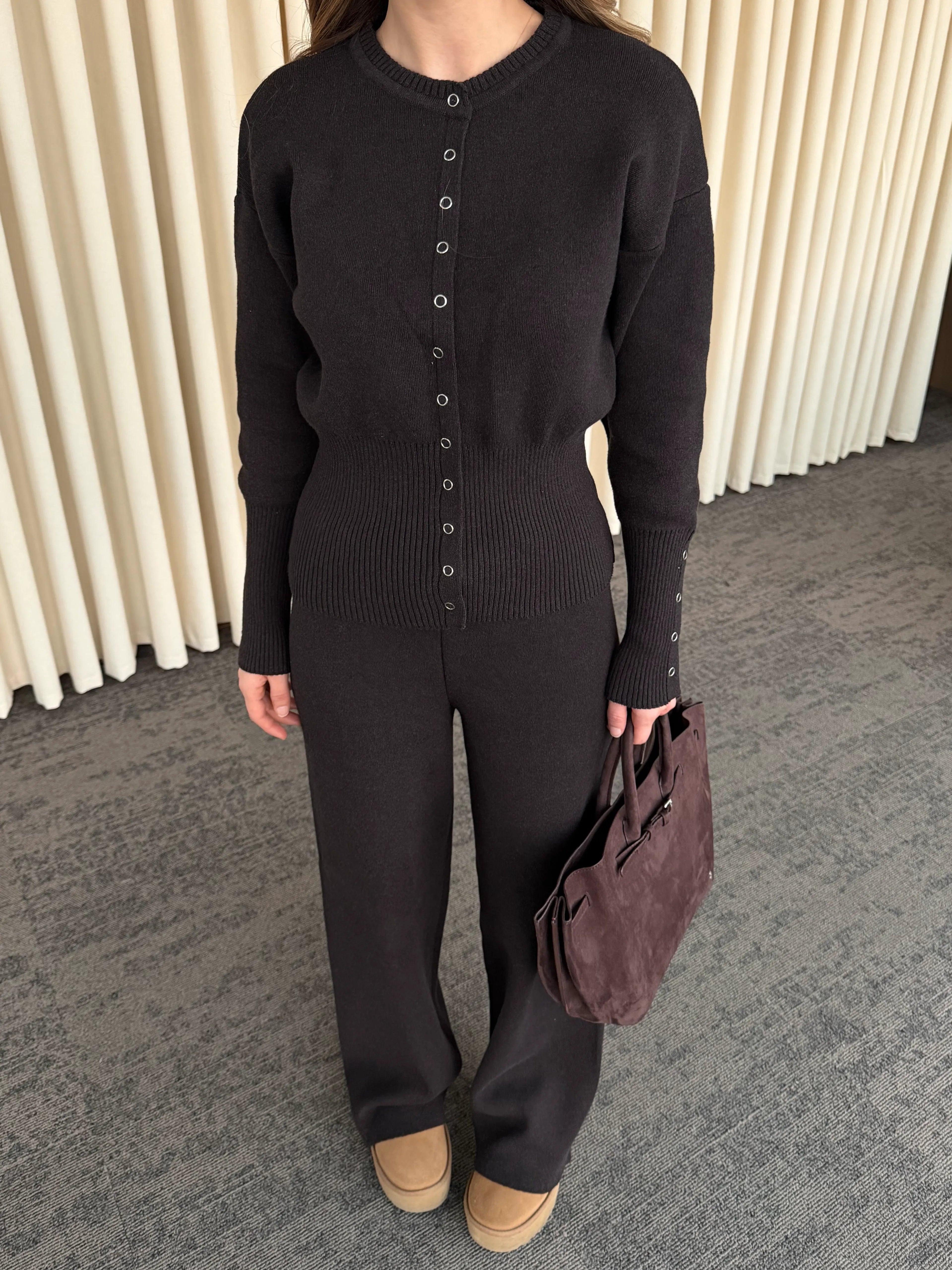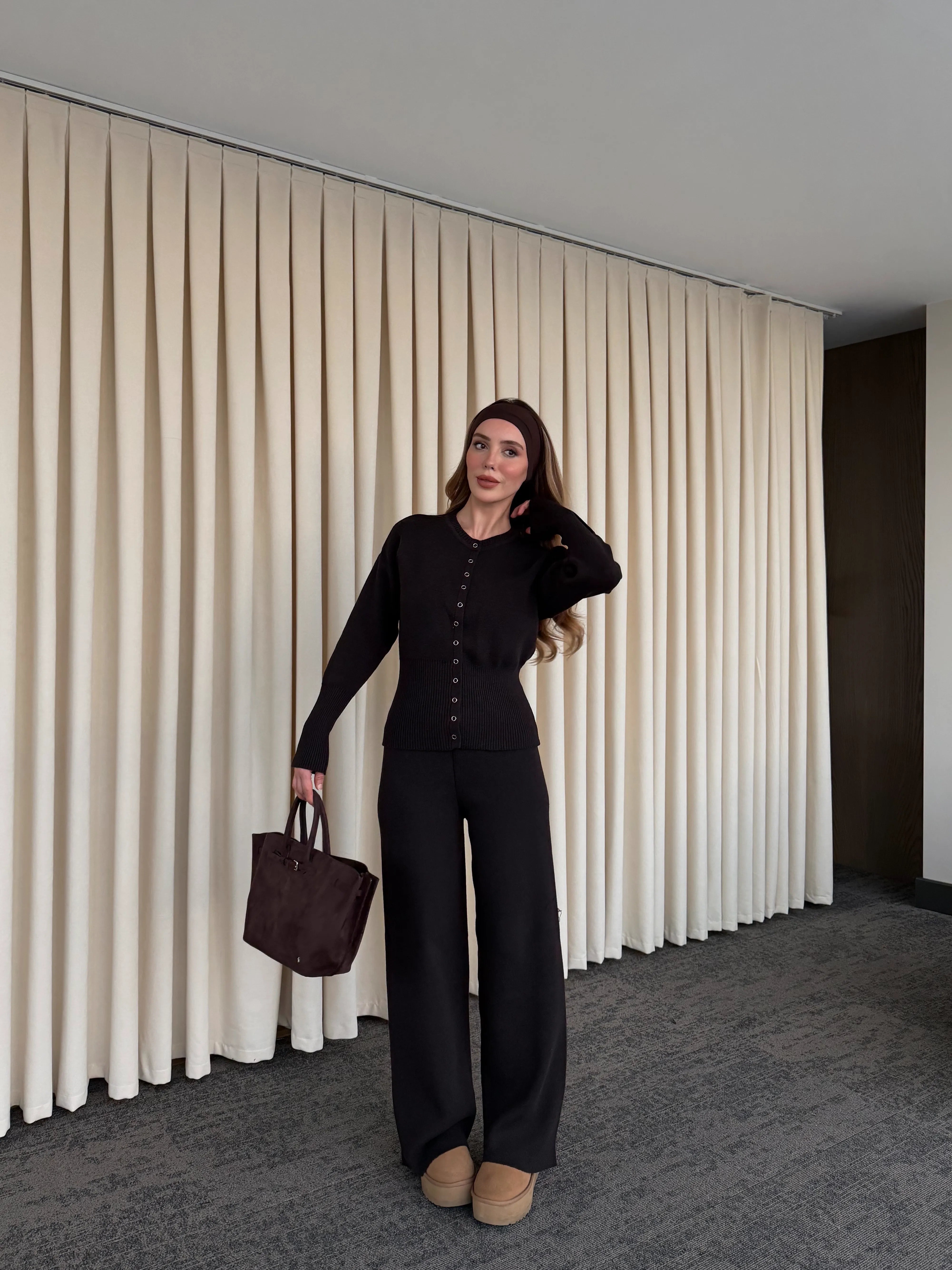 - Kahverengi Çıtçıt Düğmeli Triko Takım - 904