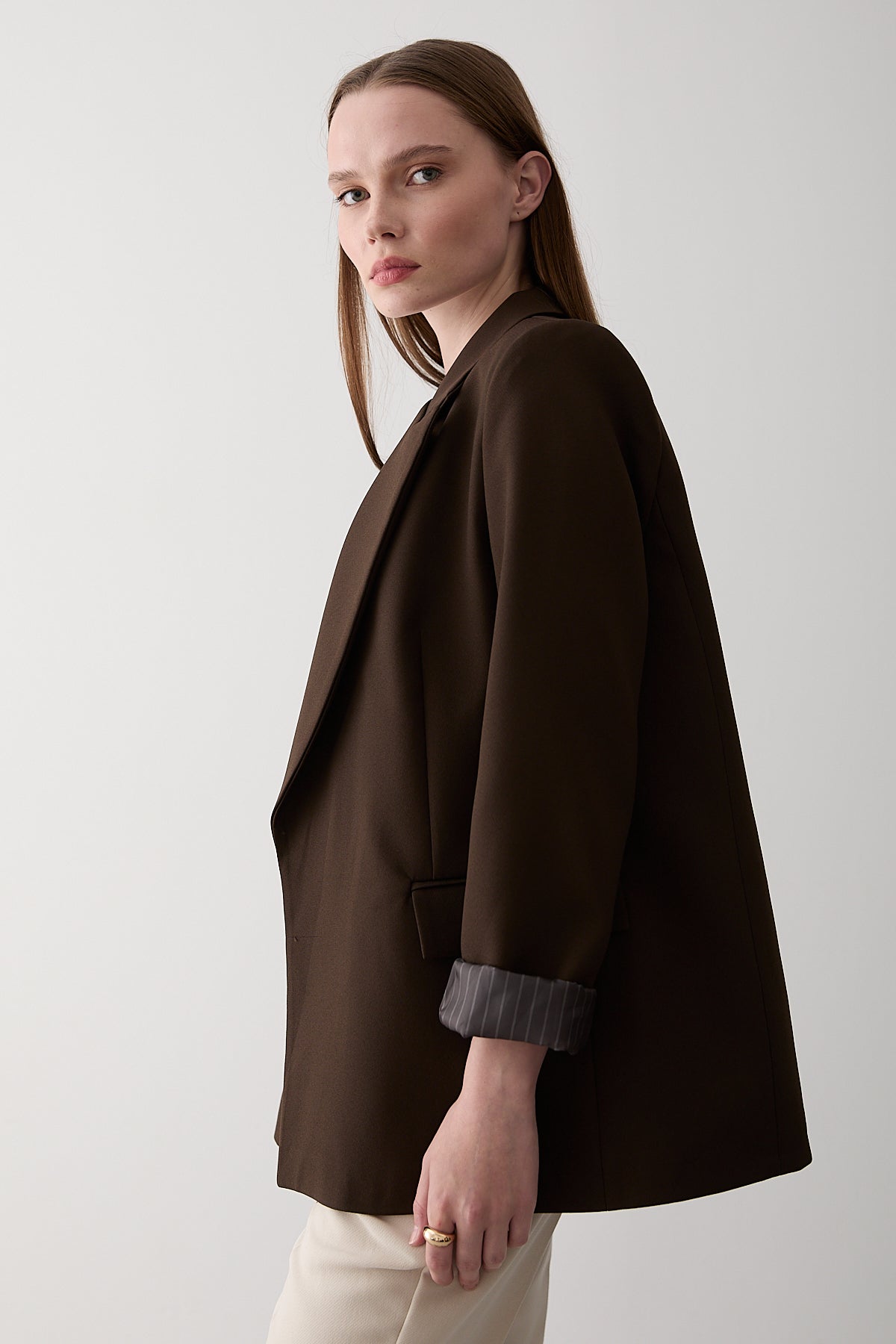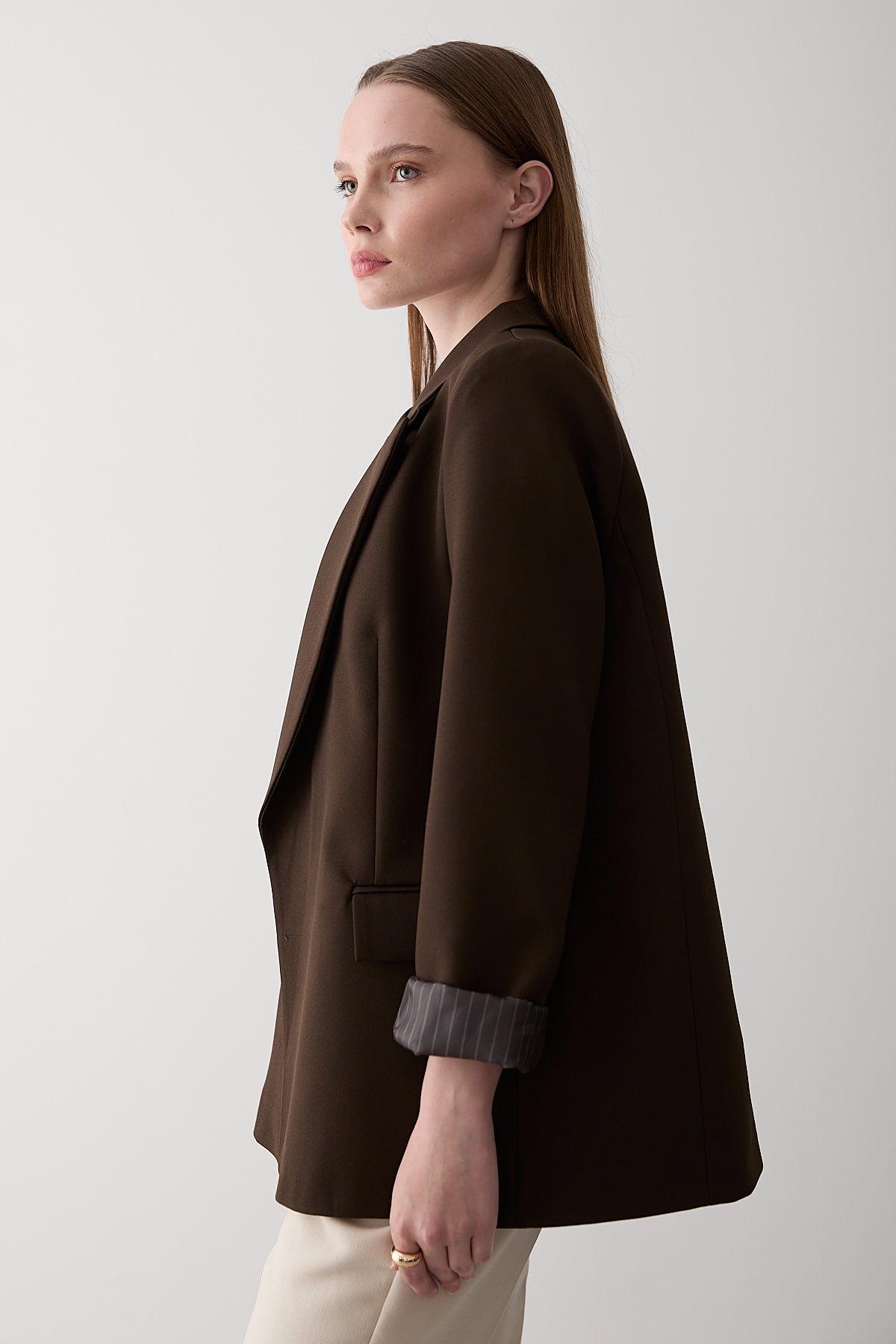 - Kahverengi Çizgili Astarlı Kolu Katlamalı Blazer Ceket - 7560