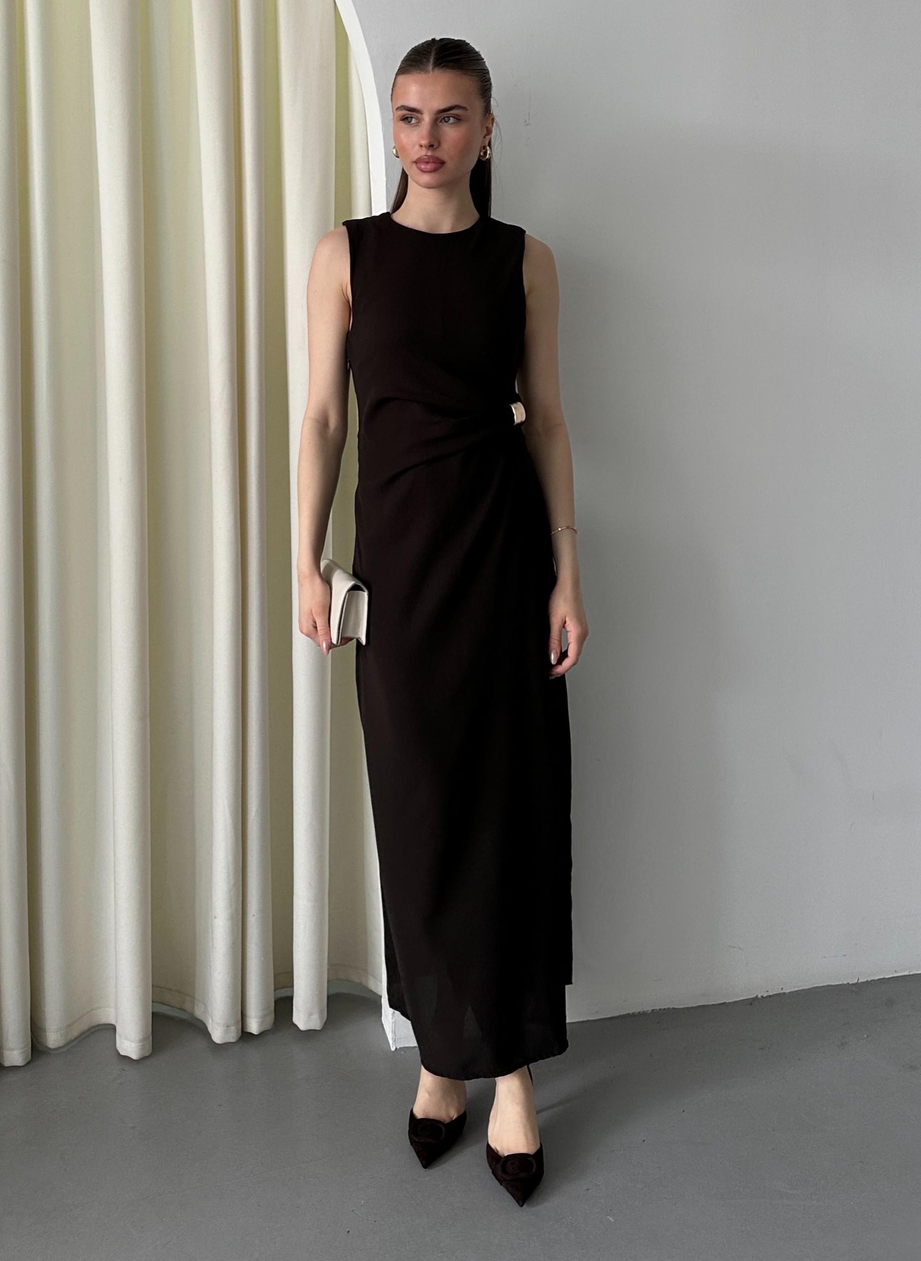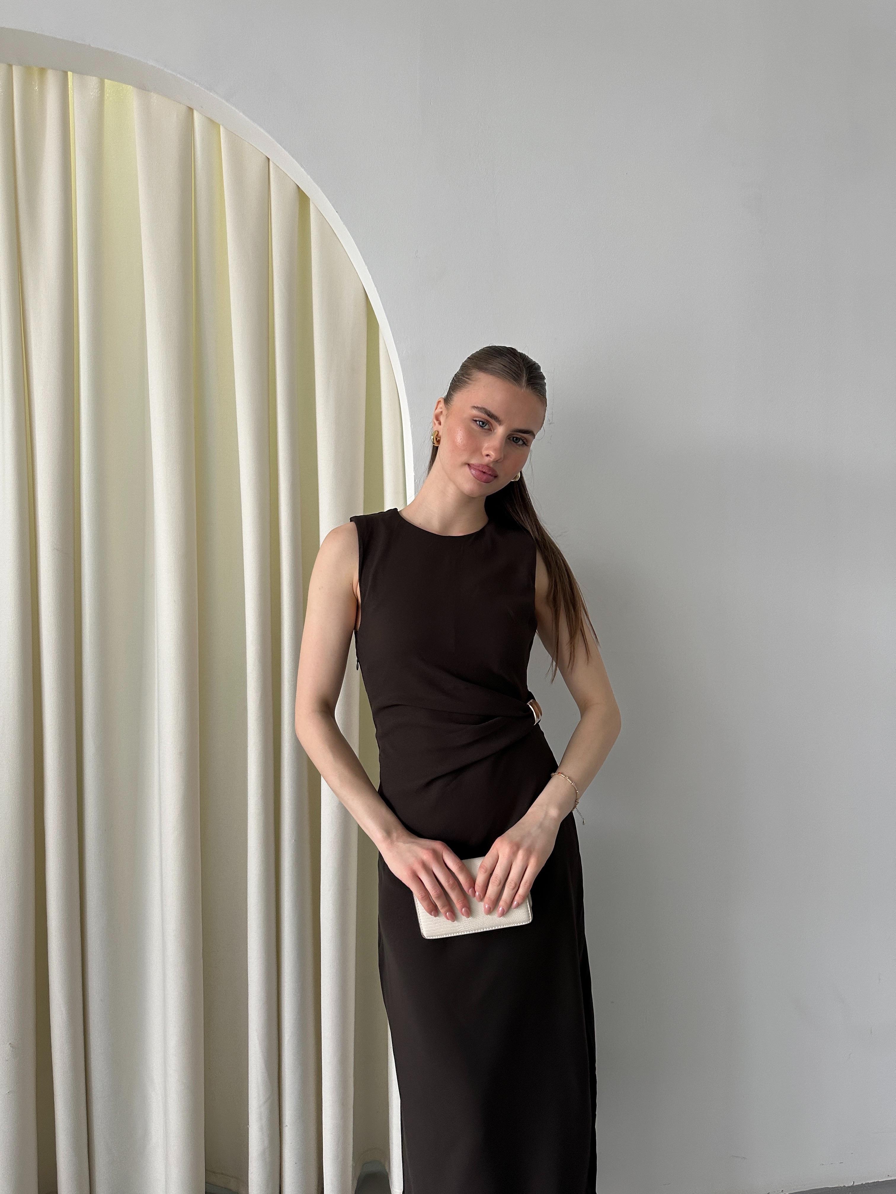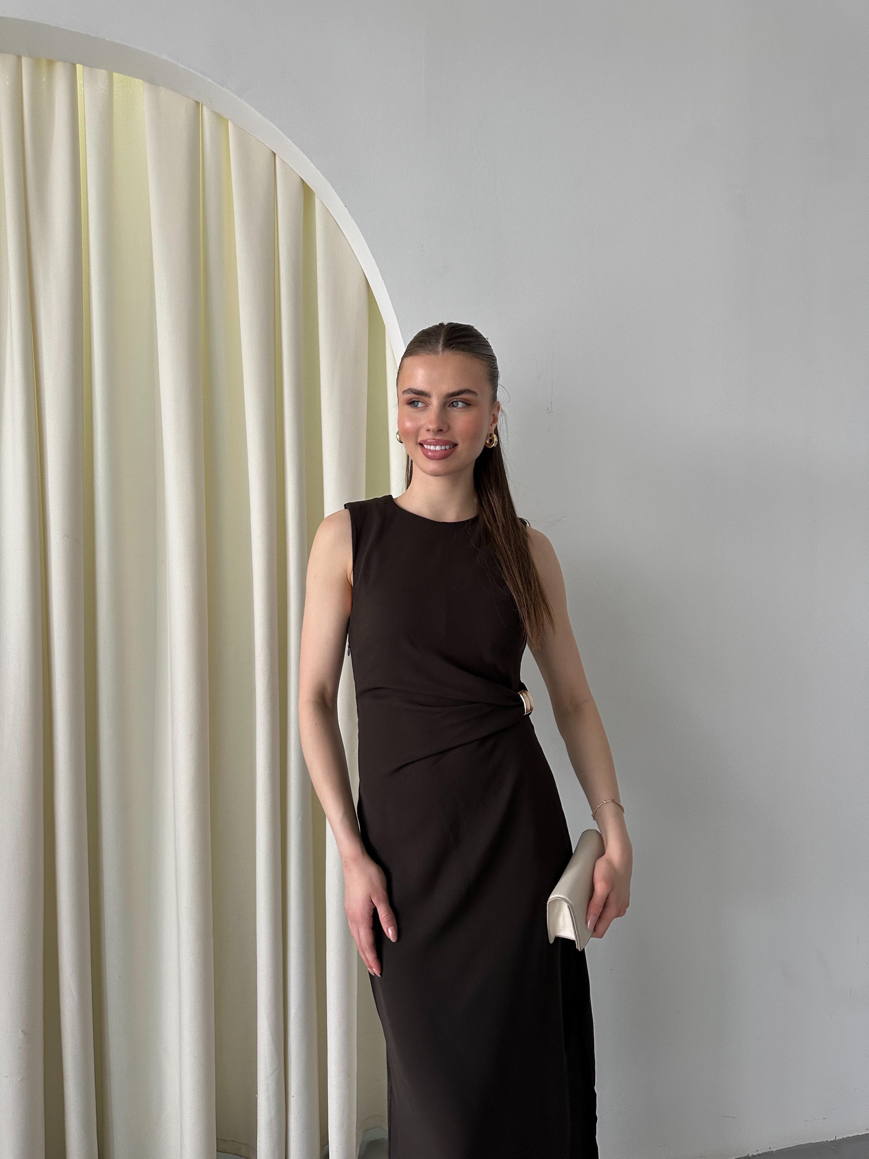 Vizon Yakası Fiyonk Detaylı Elbise- 2001