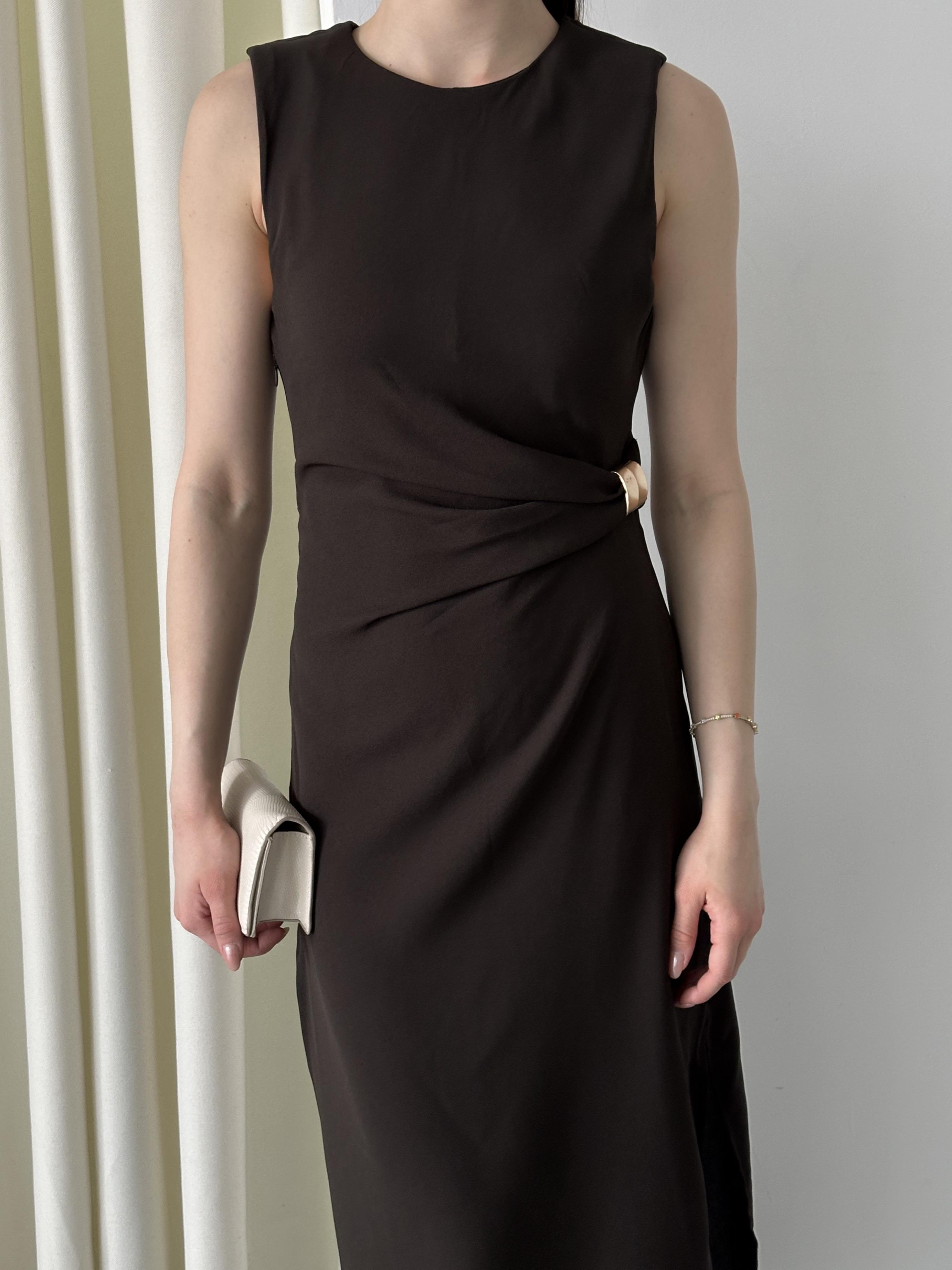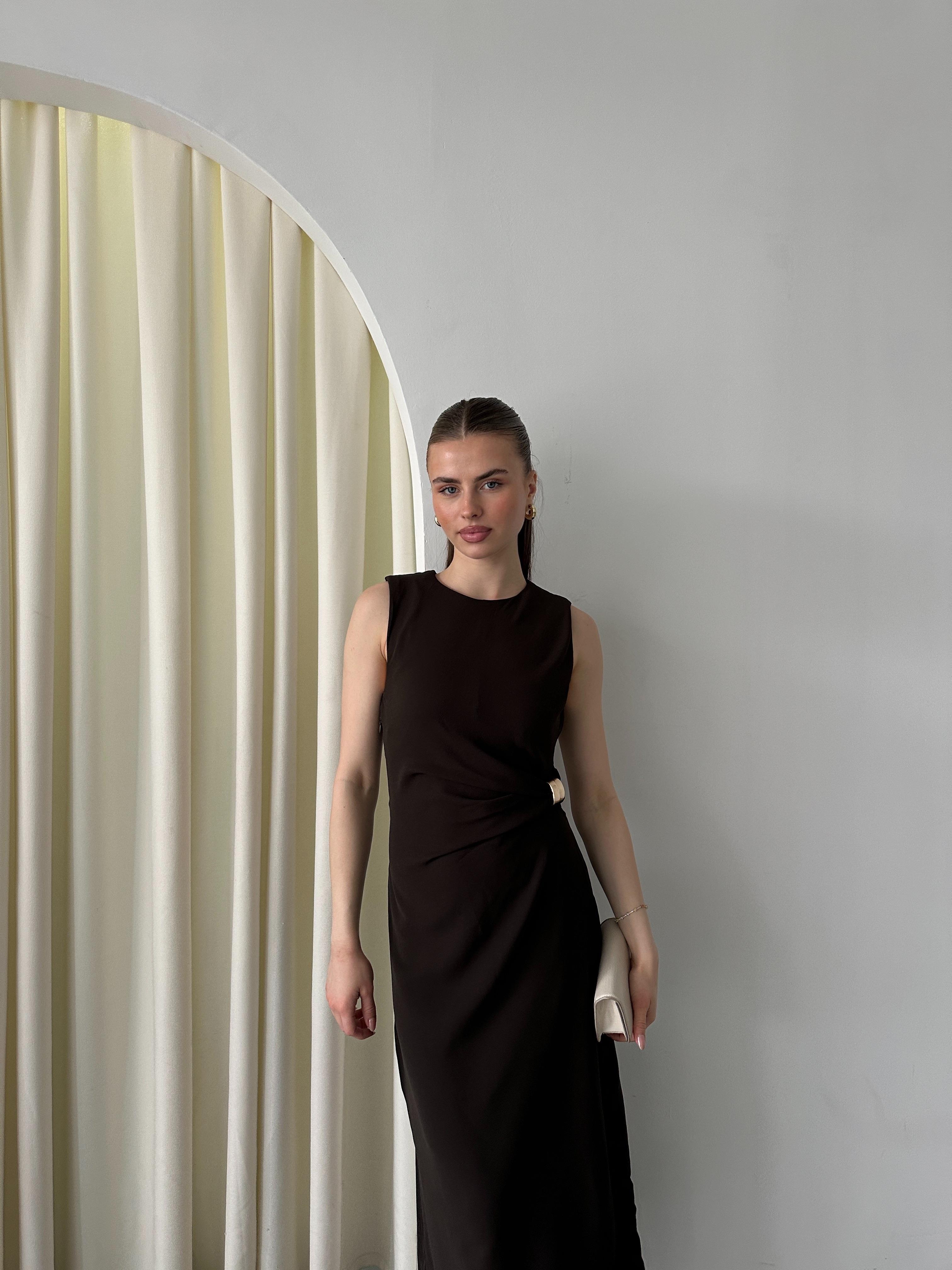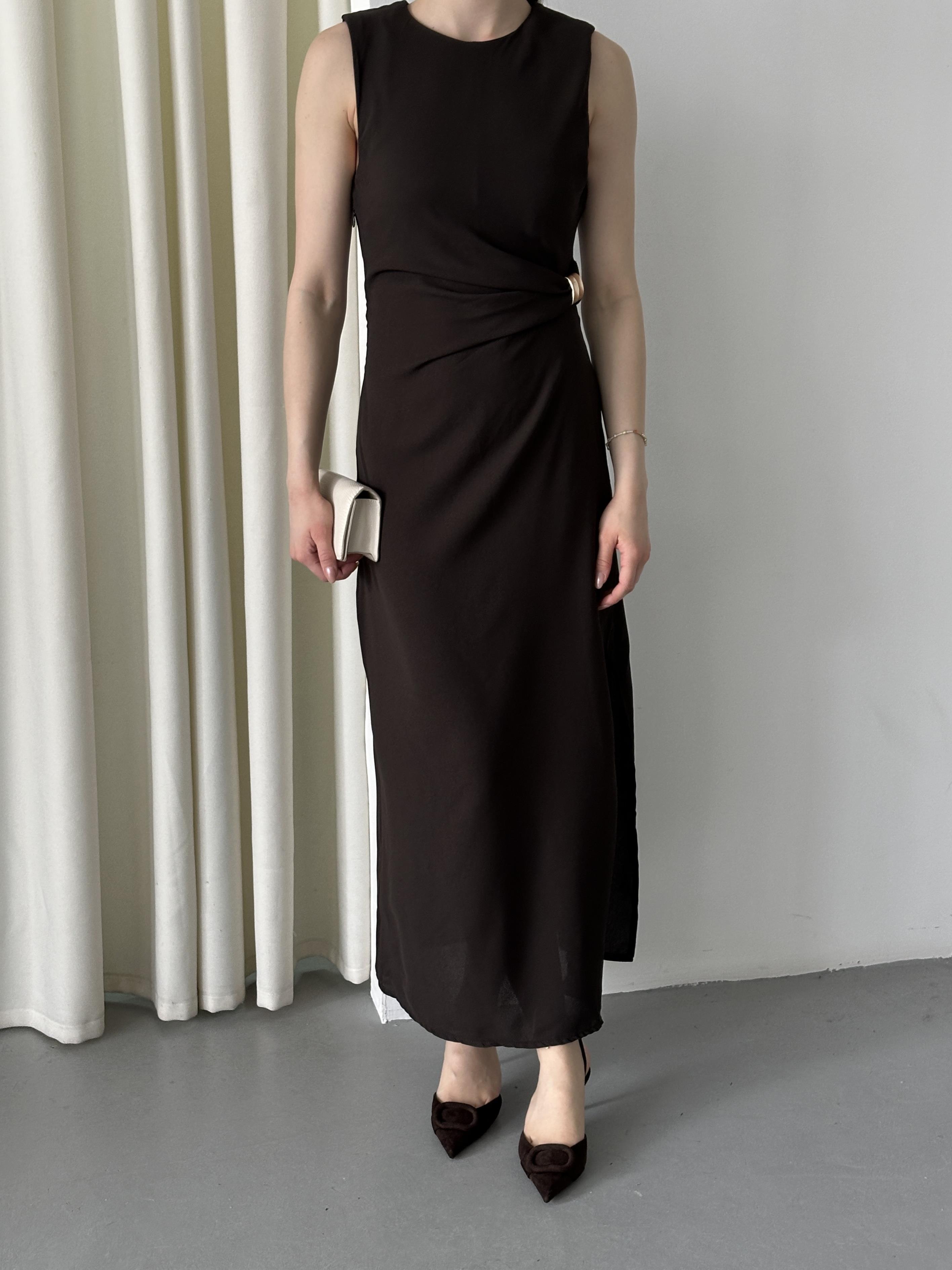 Vizon Yakası Fiyonk Detaylı Elbise- 2001