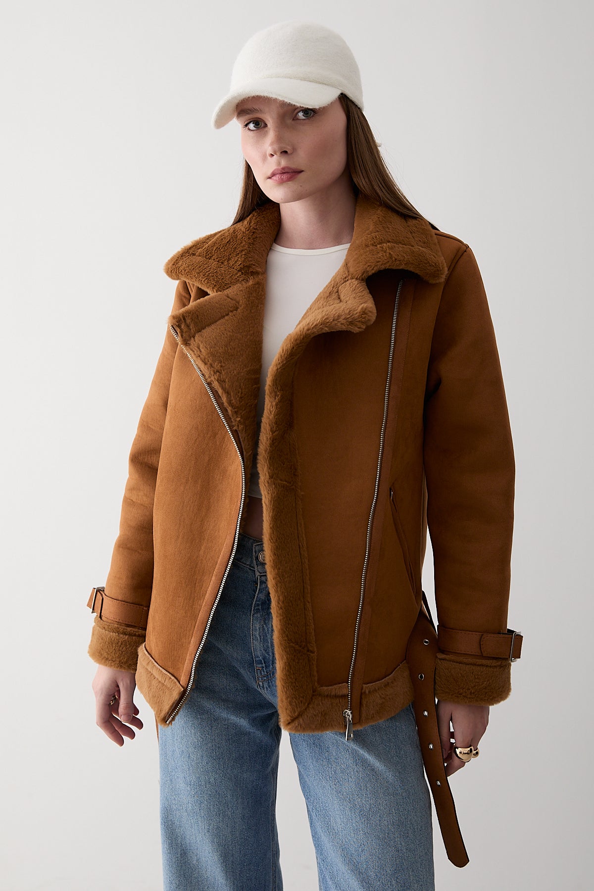 Kahverengi Bağlamalı Şifon Bluz - 5024
