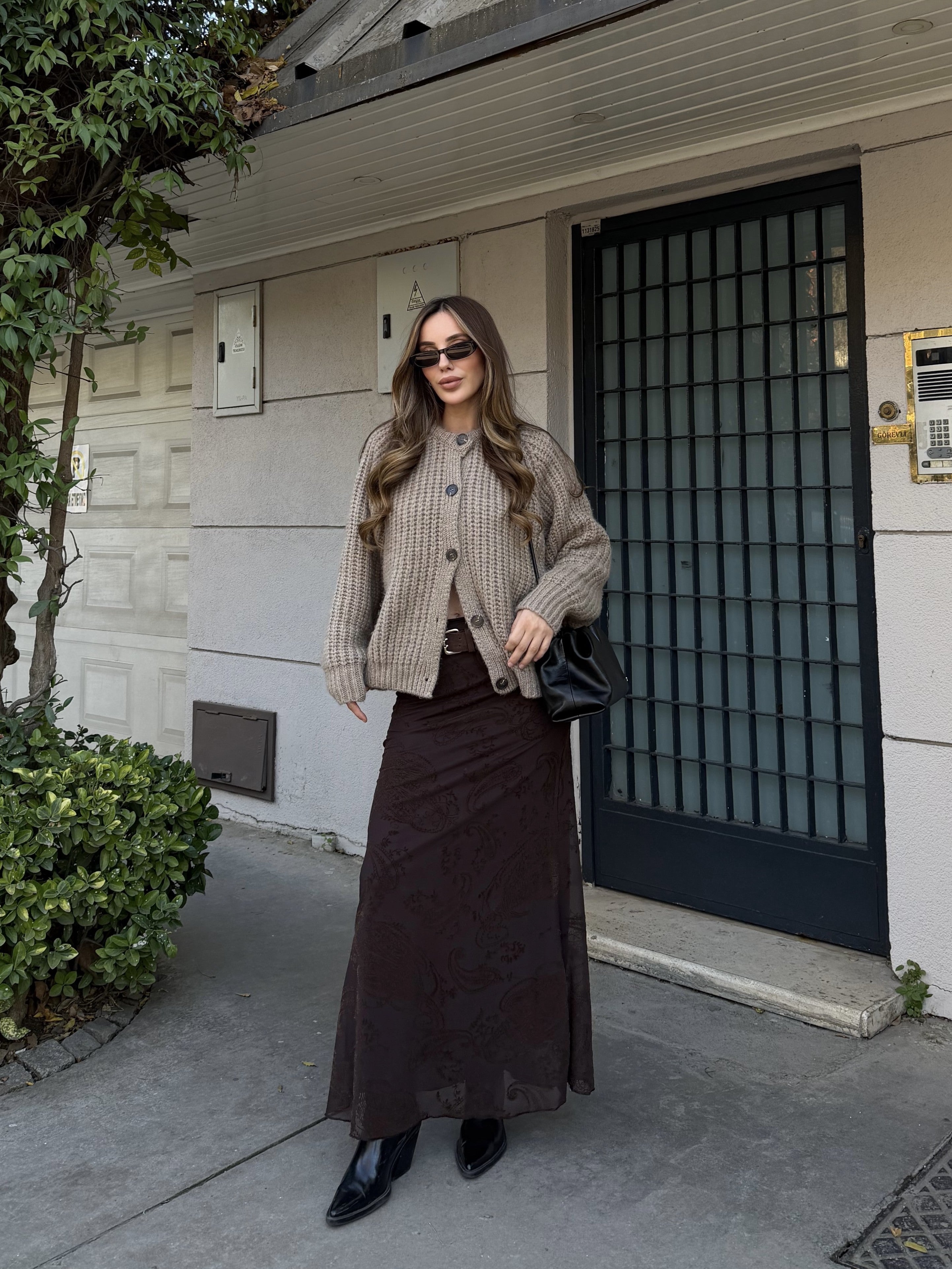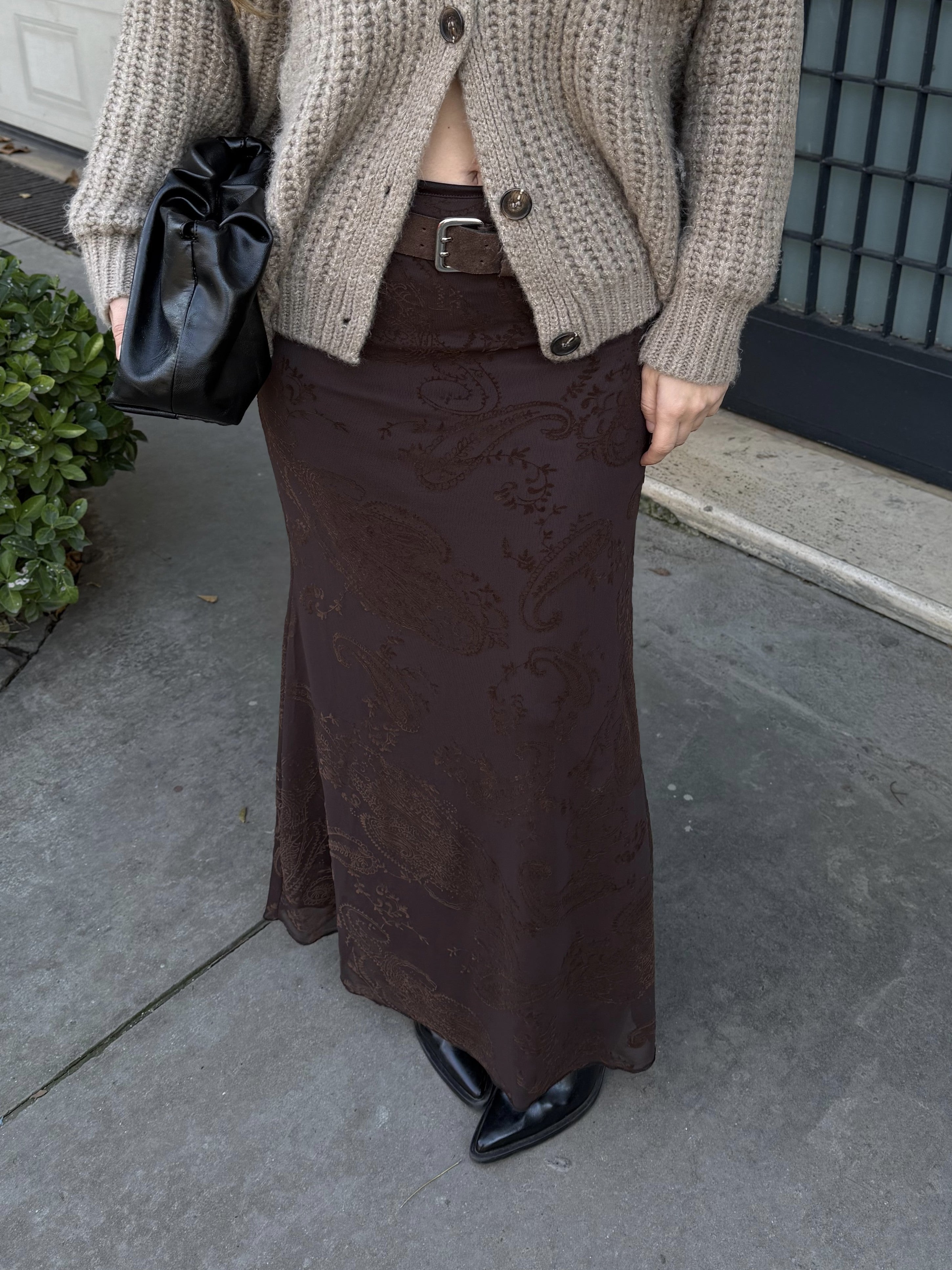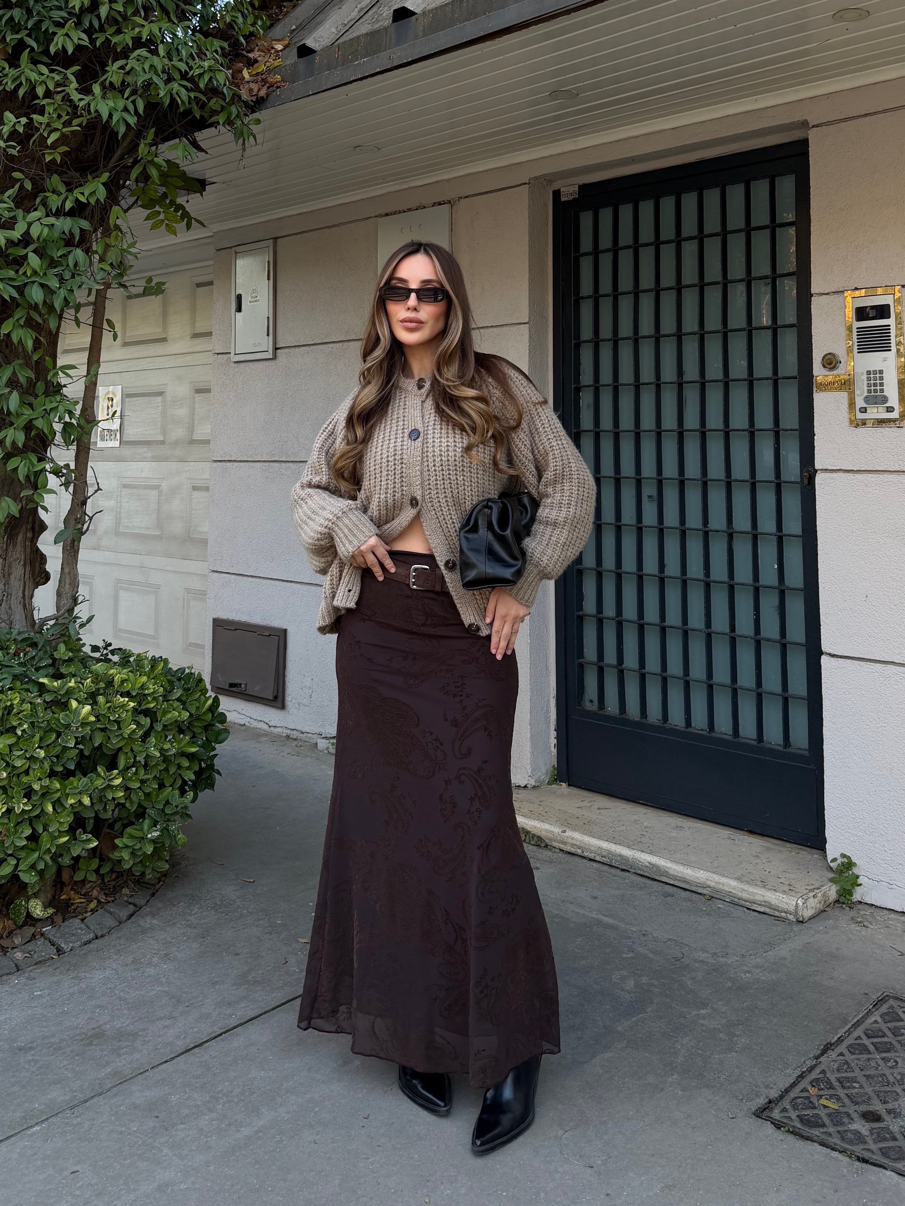 - Kahverengi Kadife Çiçek Desenli Etek - 251134