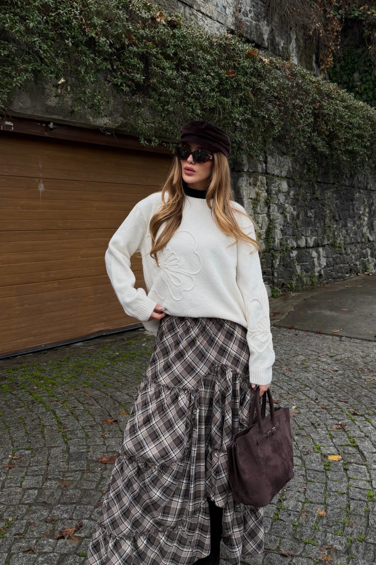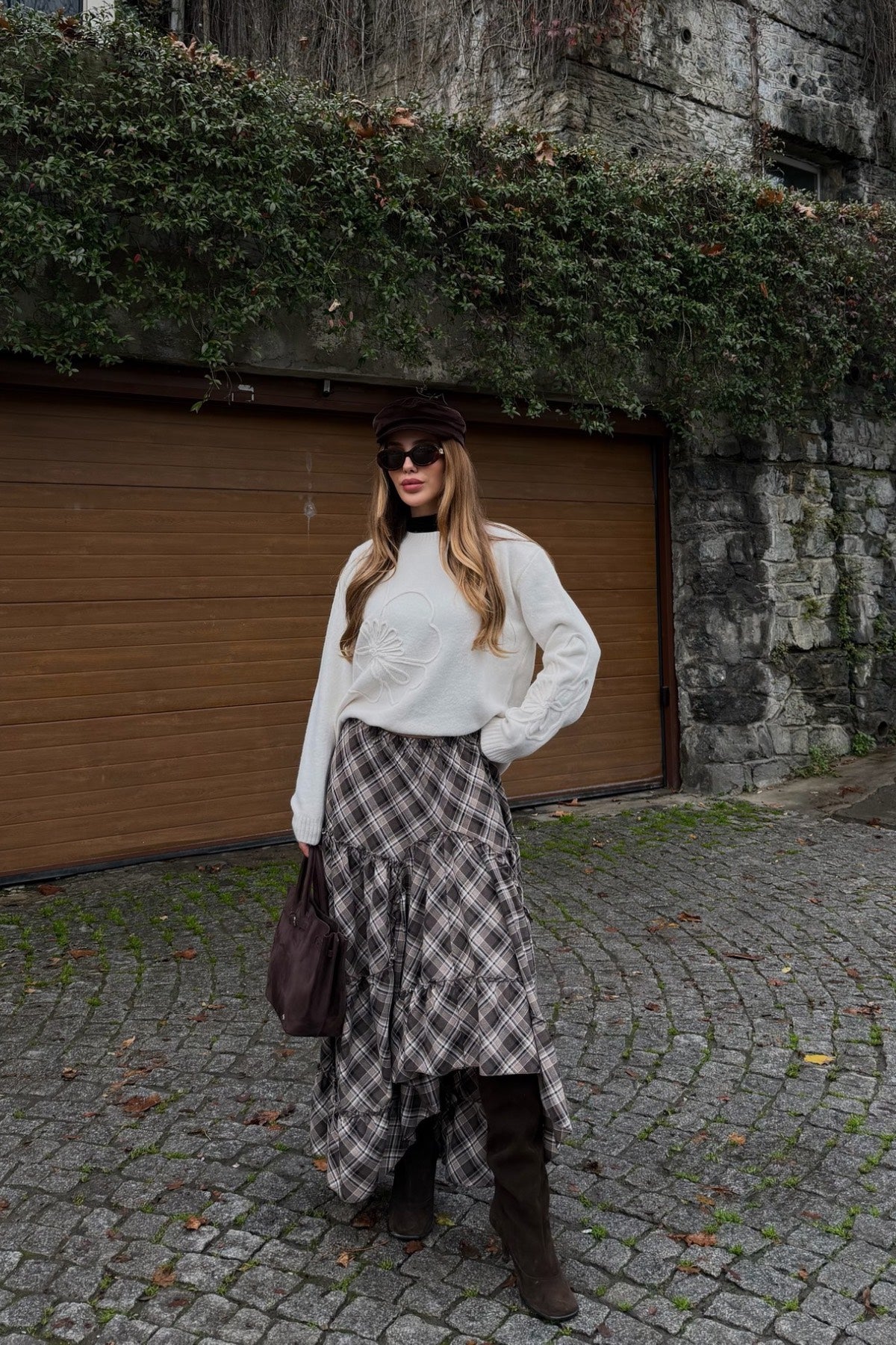 Kahverengi Yakası Fiyonk Detaylı Elbise- 2001