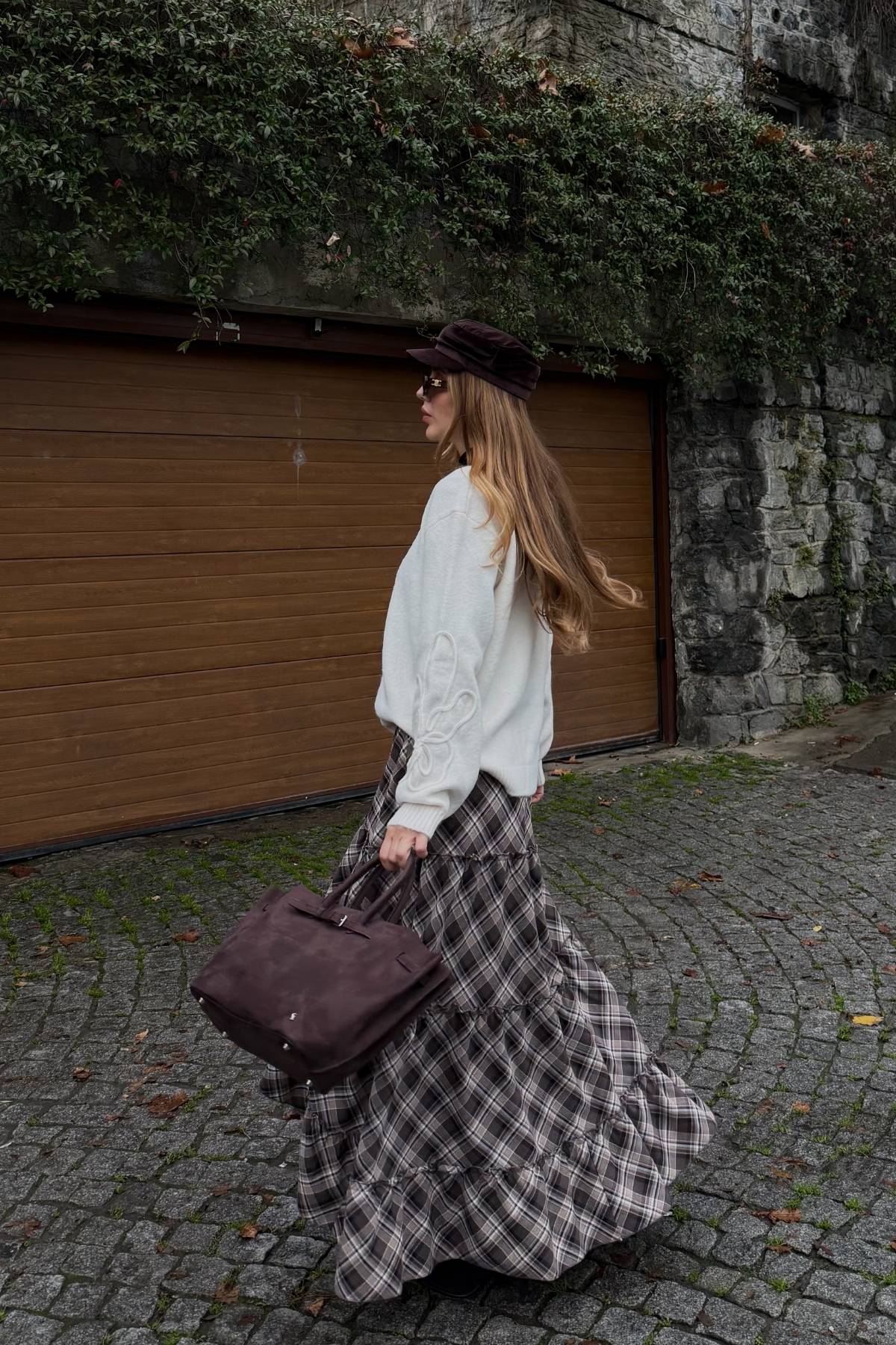 Kahverengi Bağlamalı Şifon Bluz - 5024