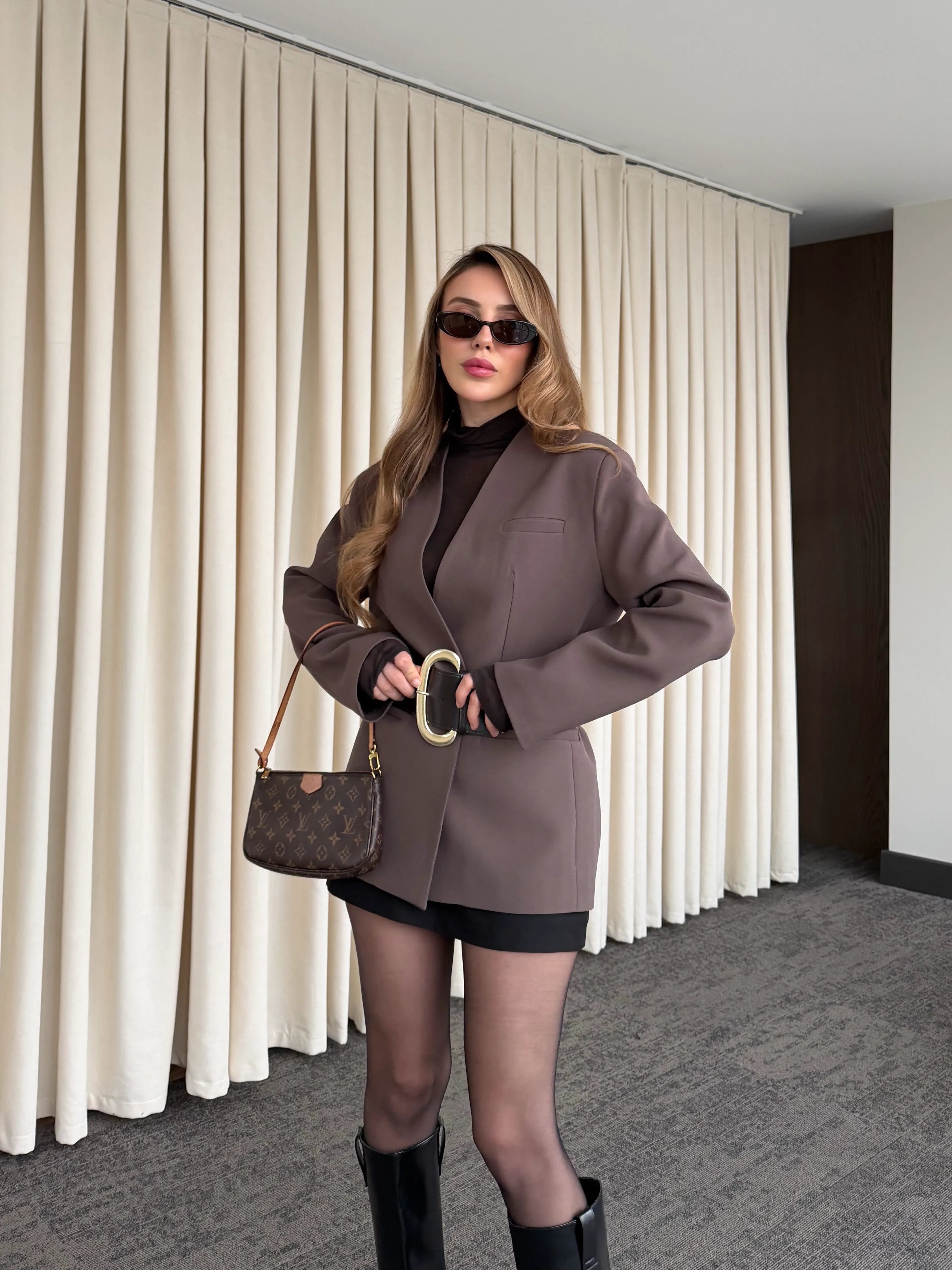 Kahverengi Bağlamalı Şifon Bluz - 5024