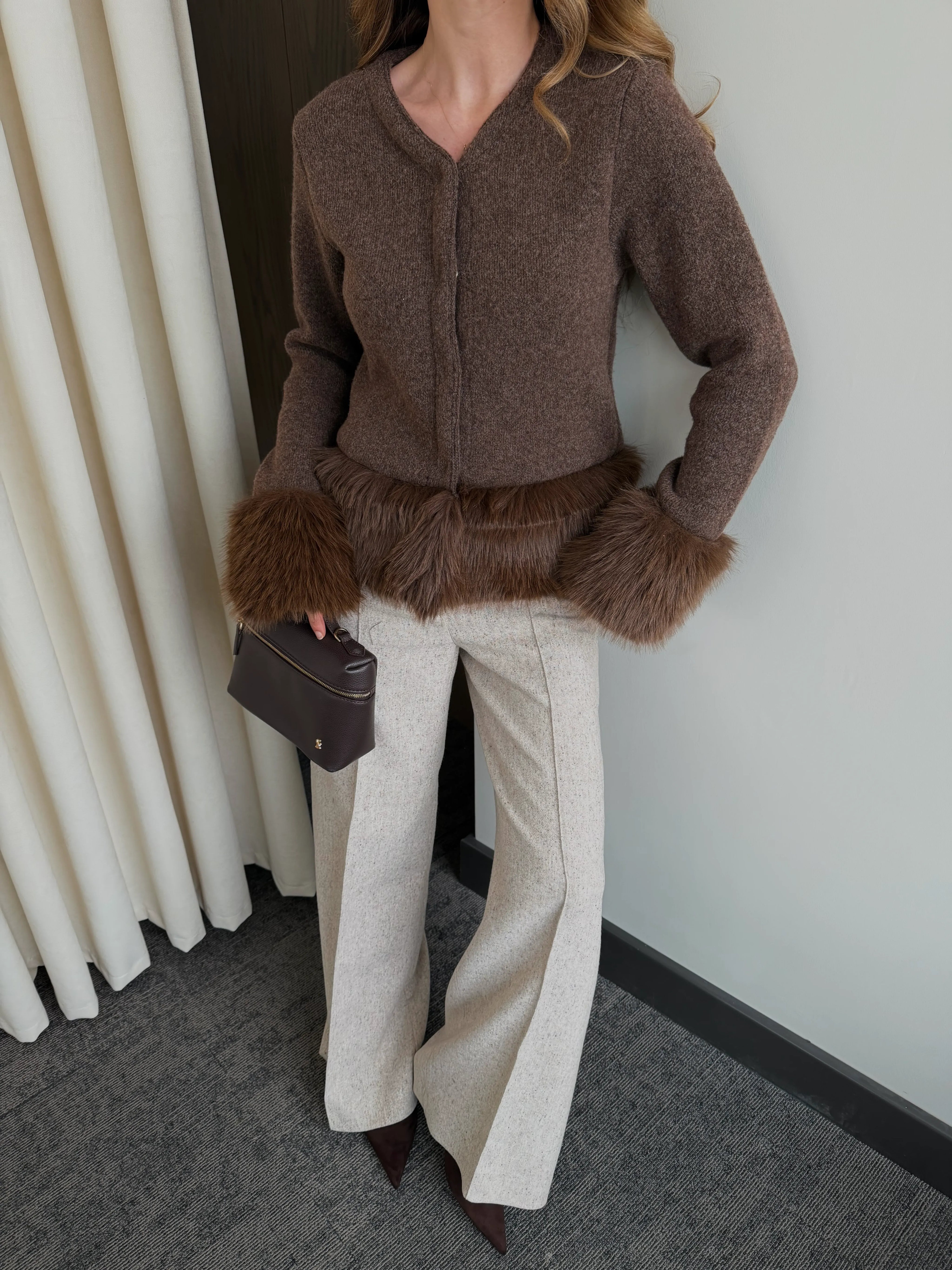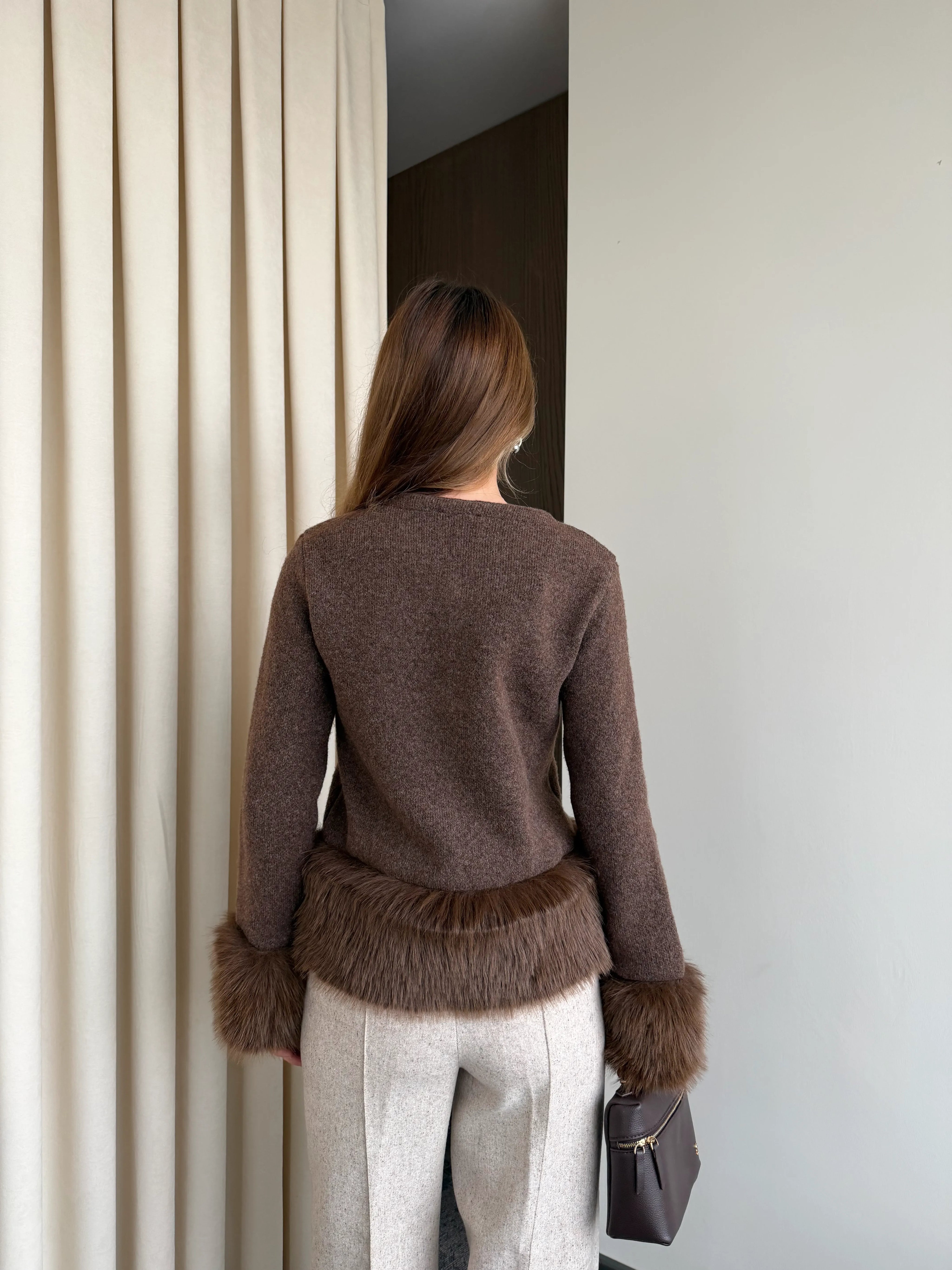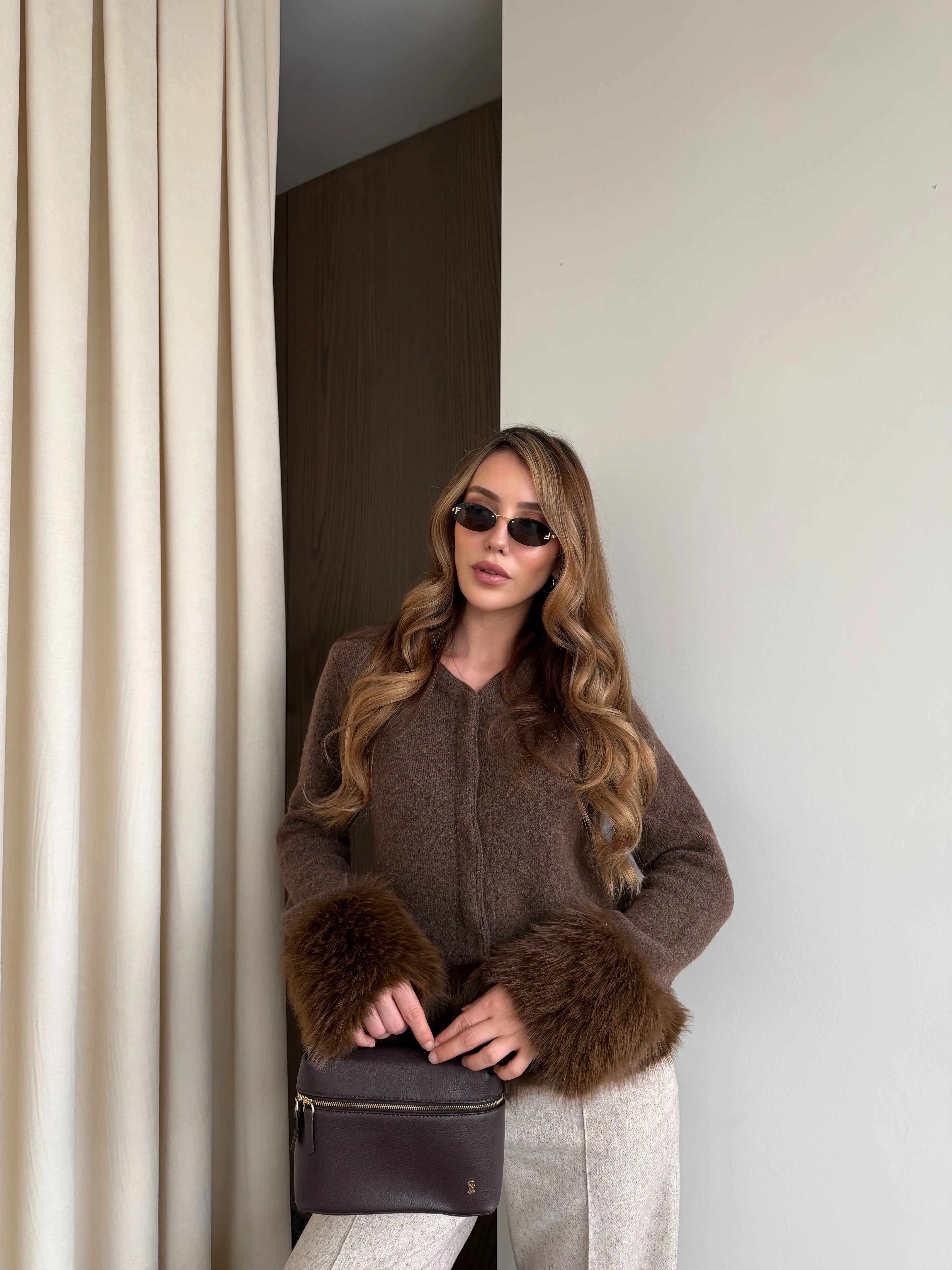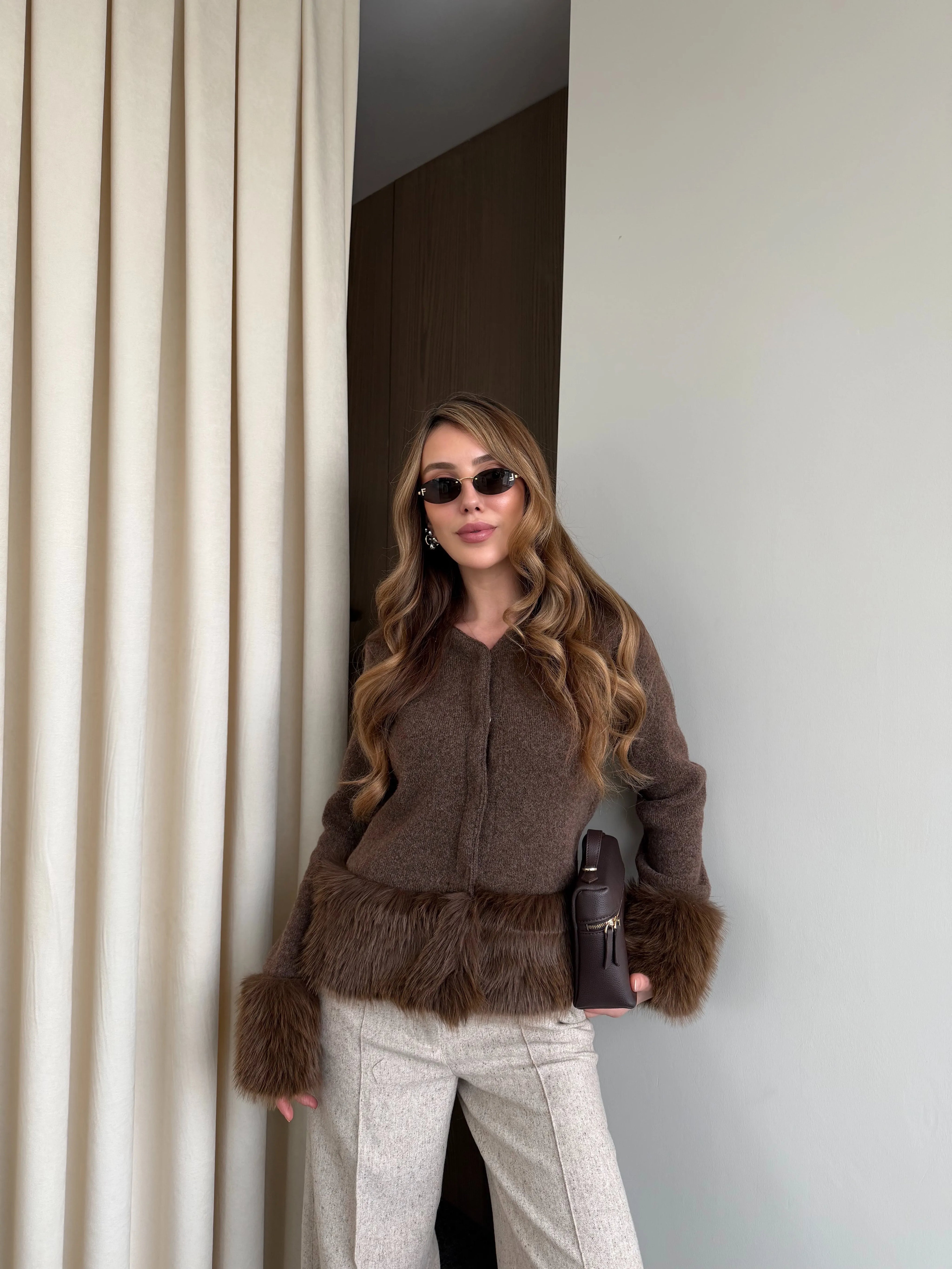 - Kahverengi Kolları Kürklü Hırka - 251104