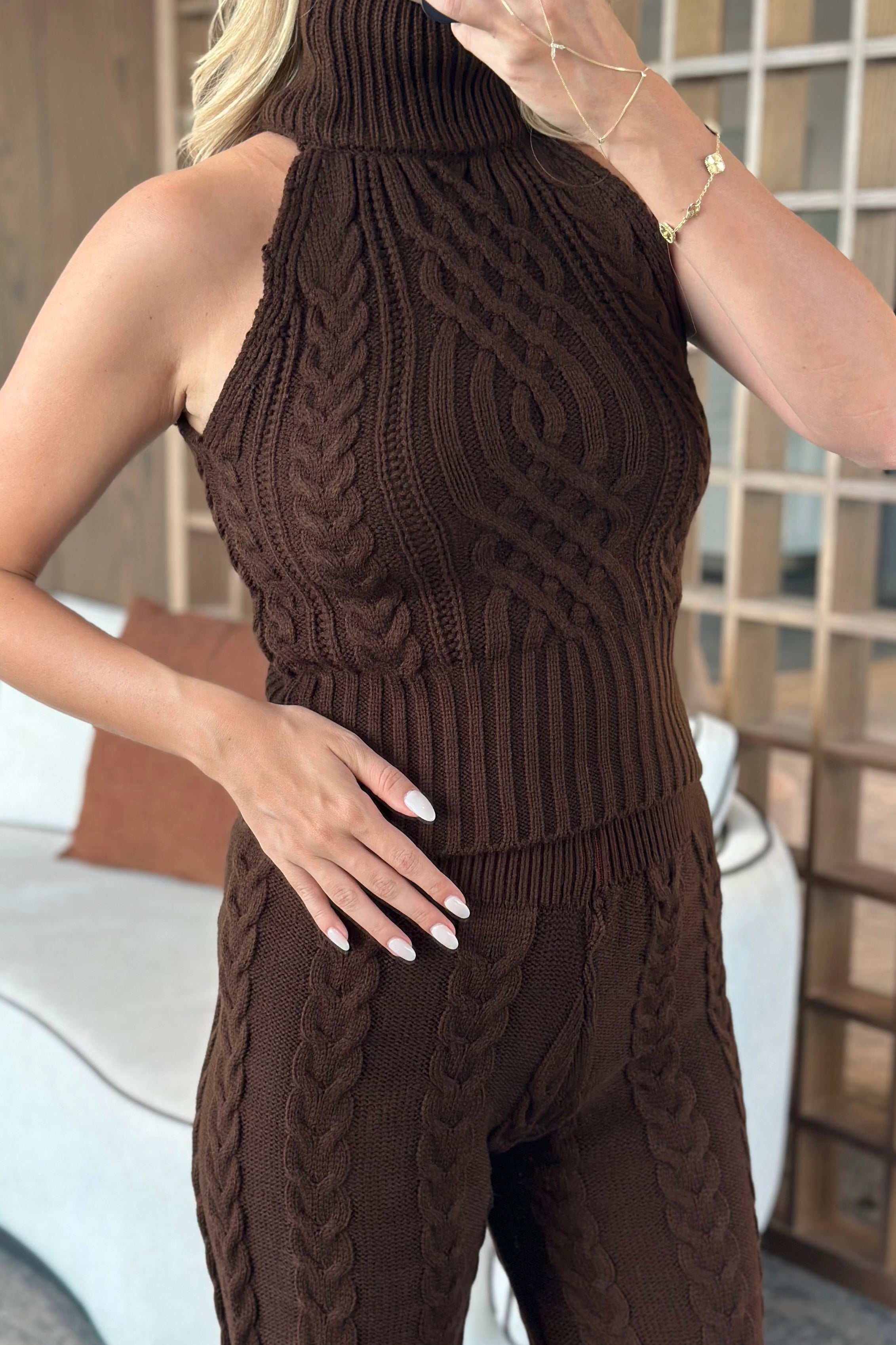 Kahverengi Kolsuz Bluz Pantolon Takım - 3009
