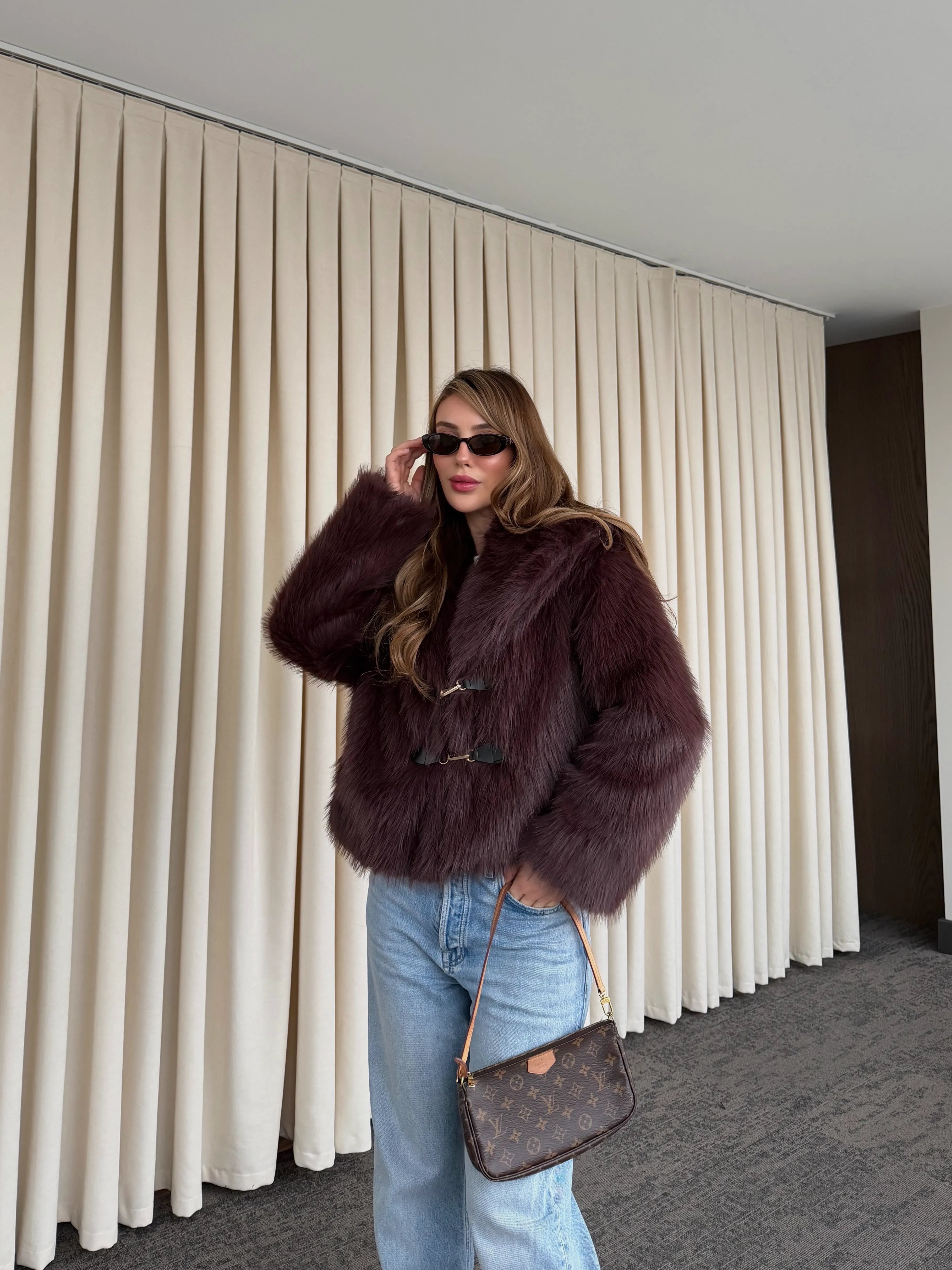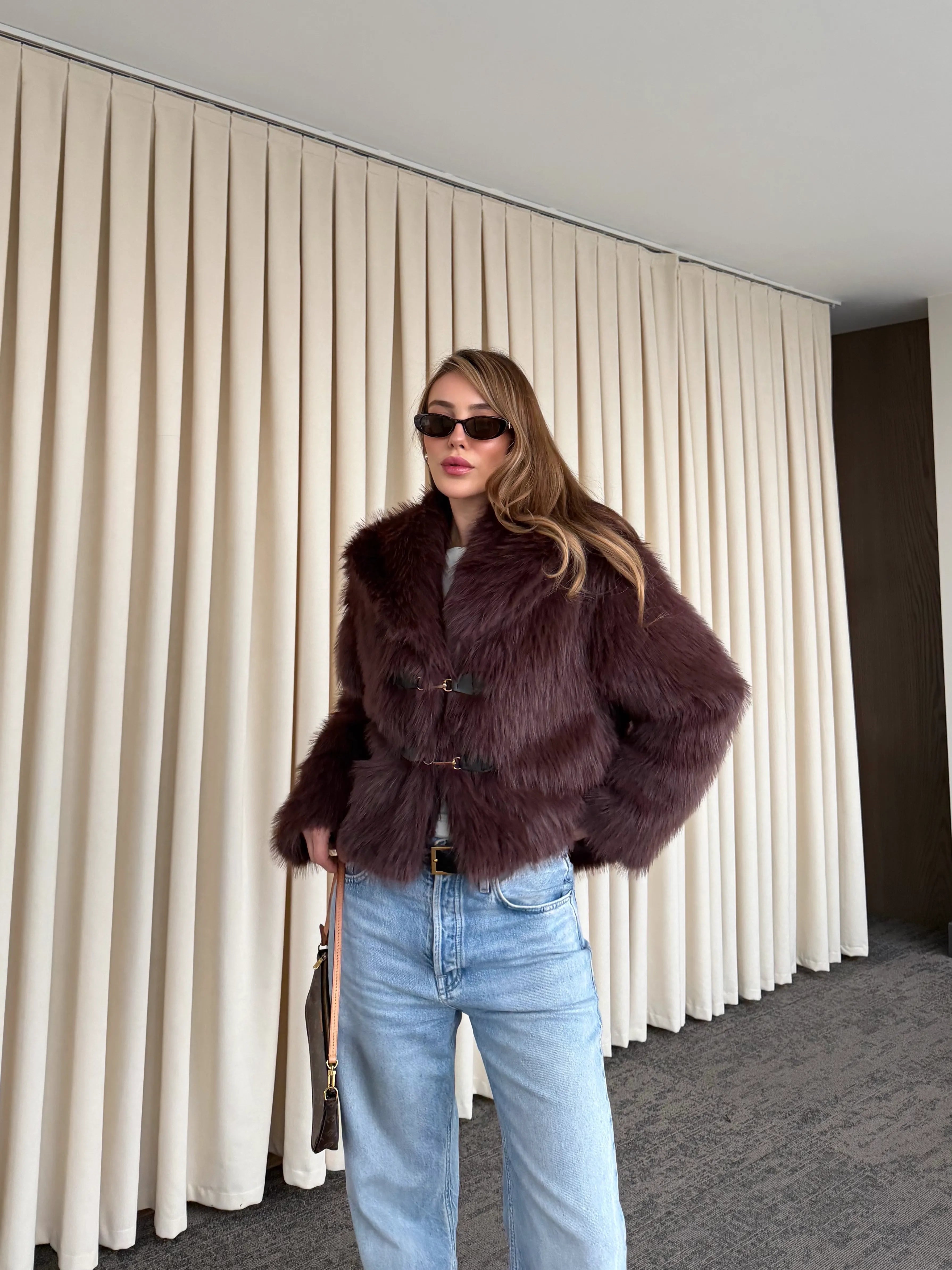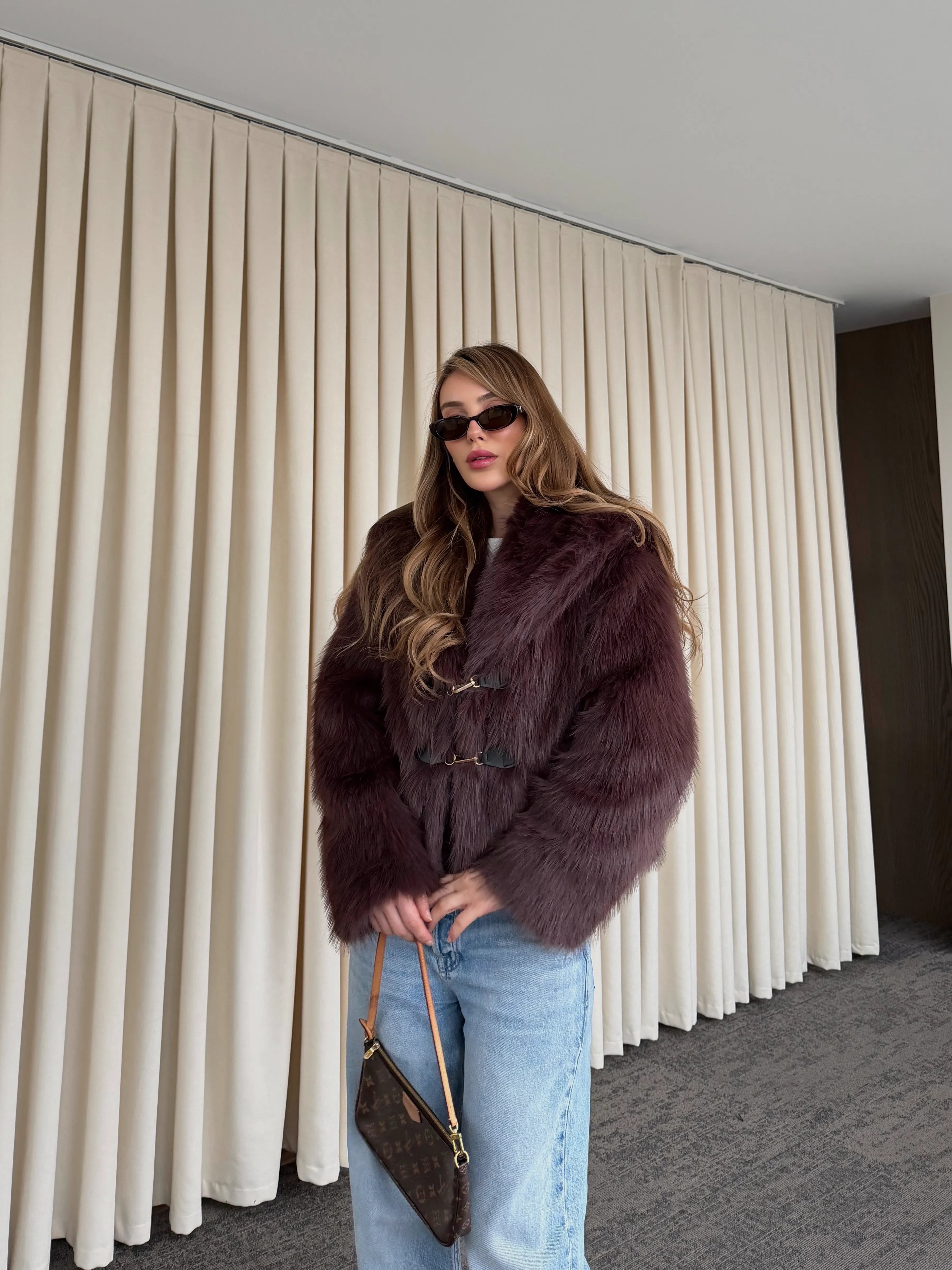 - Kahverengi Kürk Mont - 9679