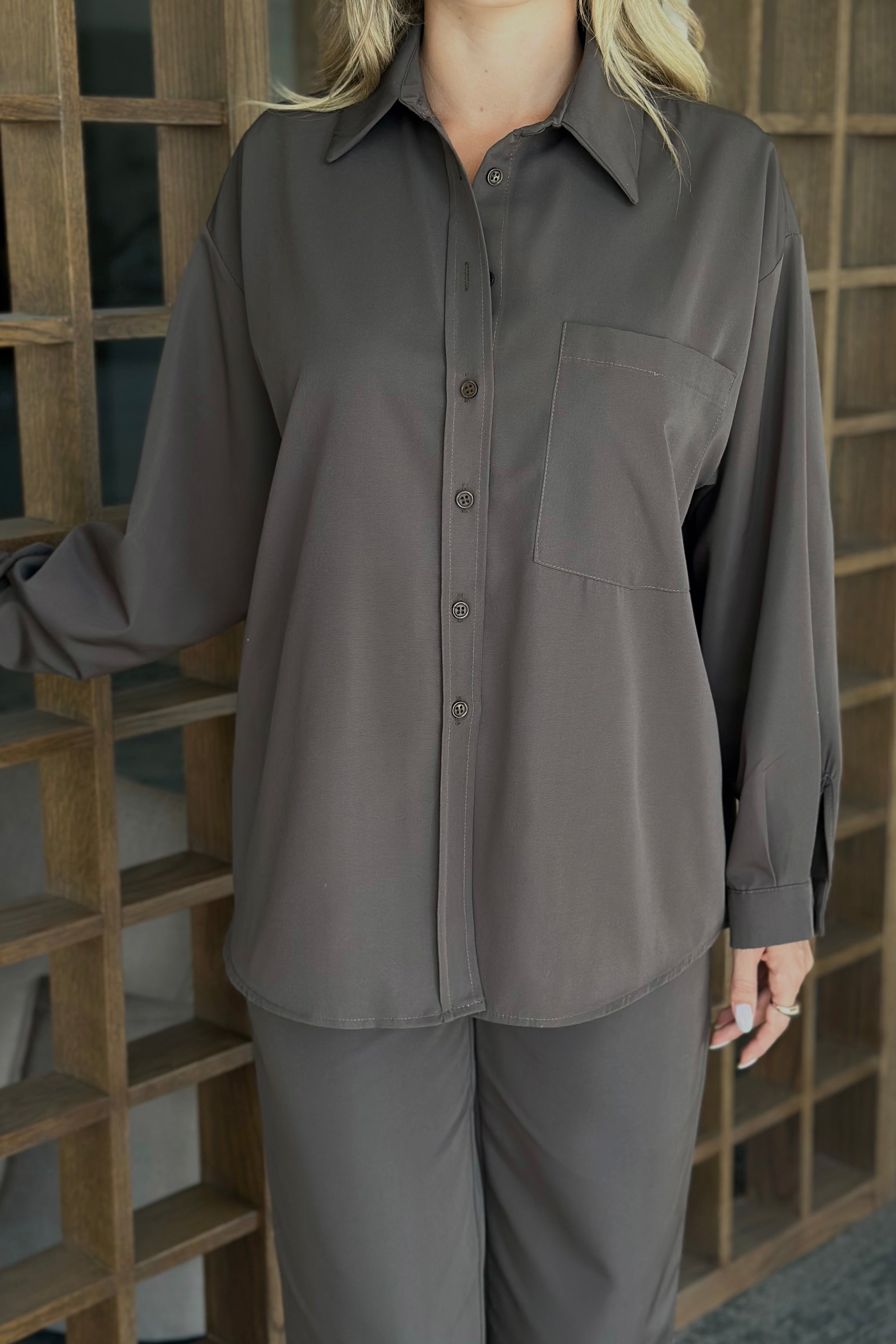 Antrasit Bej Cep Kapaklı Gömlek - 508