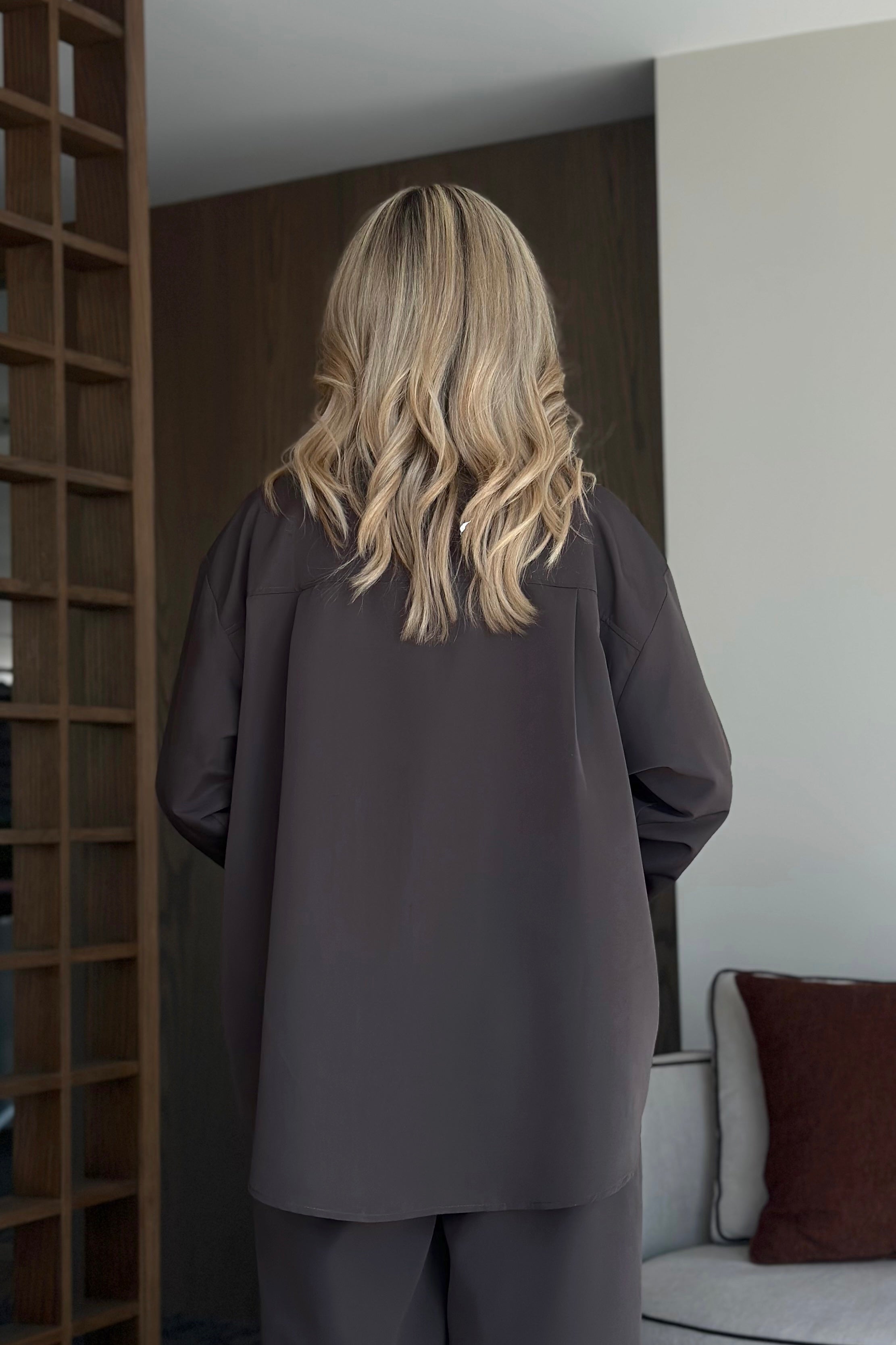 - Kahverengi Merlin Kemerli Gömlek Pantolon Takım - 8453