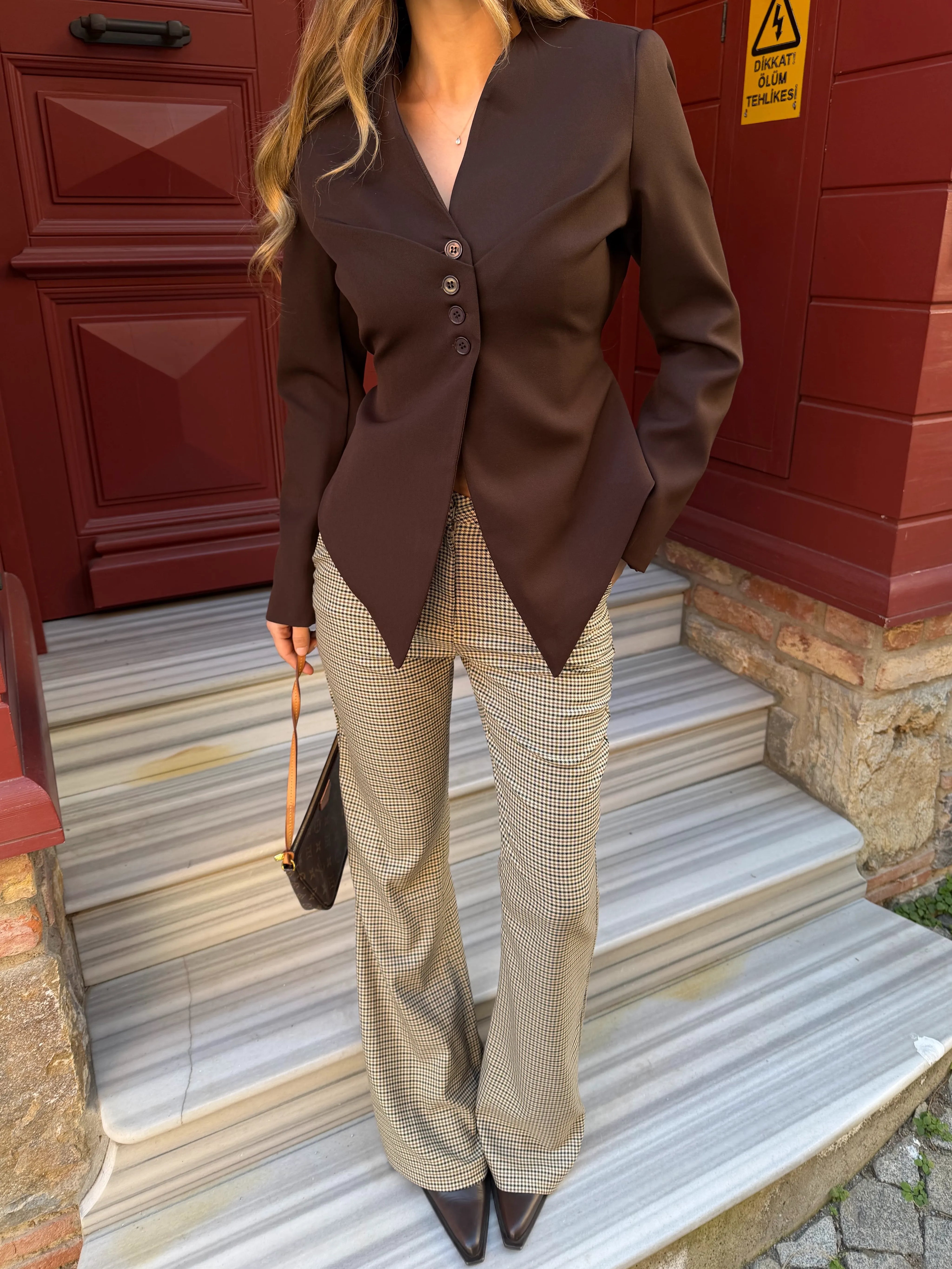 Klasik kazayağı deseninin güçlü karakterini modern bir kesimle buluşturan bu pantolon, stiline dengeli ve iddialı bir dokunuş katar. Vücuda oturan üst formu ve dizden sonra hafifçe açılan paça kesimi, silüeti daha uzun ve zarif gösterir. Günlük kombinlerden şehir şıklığına uzanan farklı stillerle kolayca uyum sağlayan bu tasarım, klasik desenin enerjisini modern bir duruşla sunar.