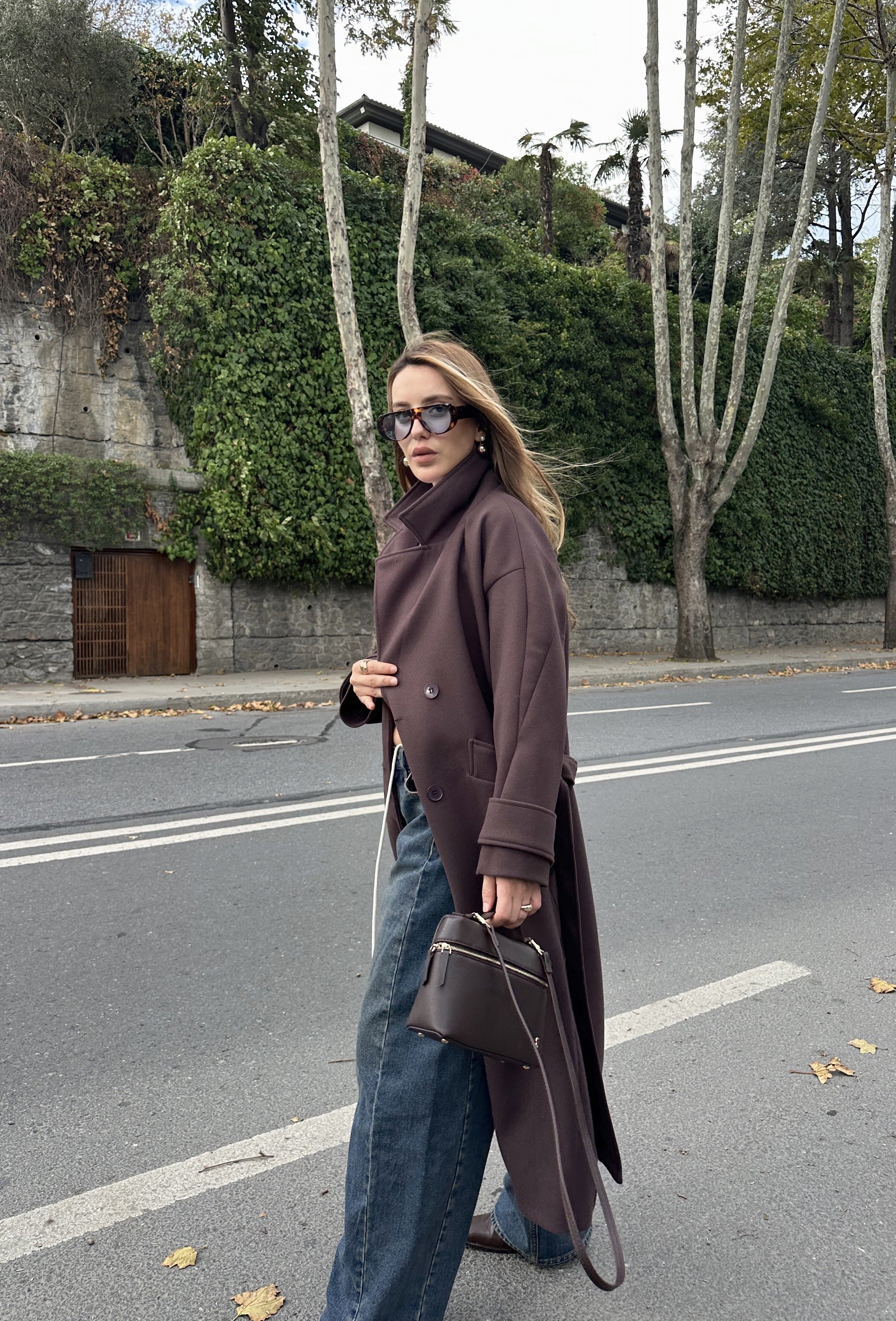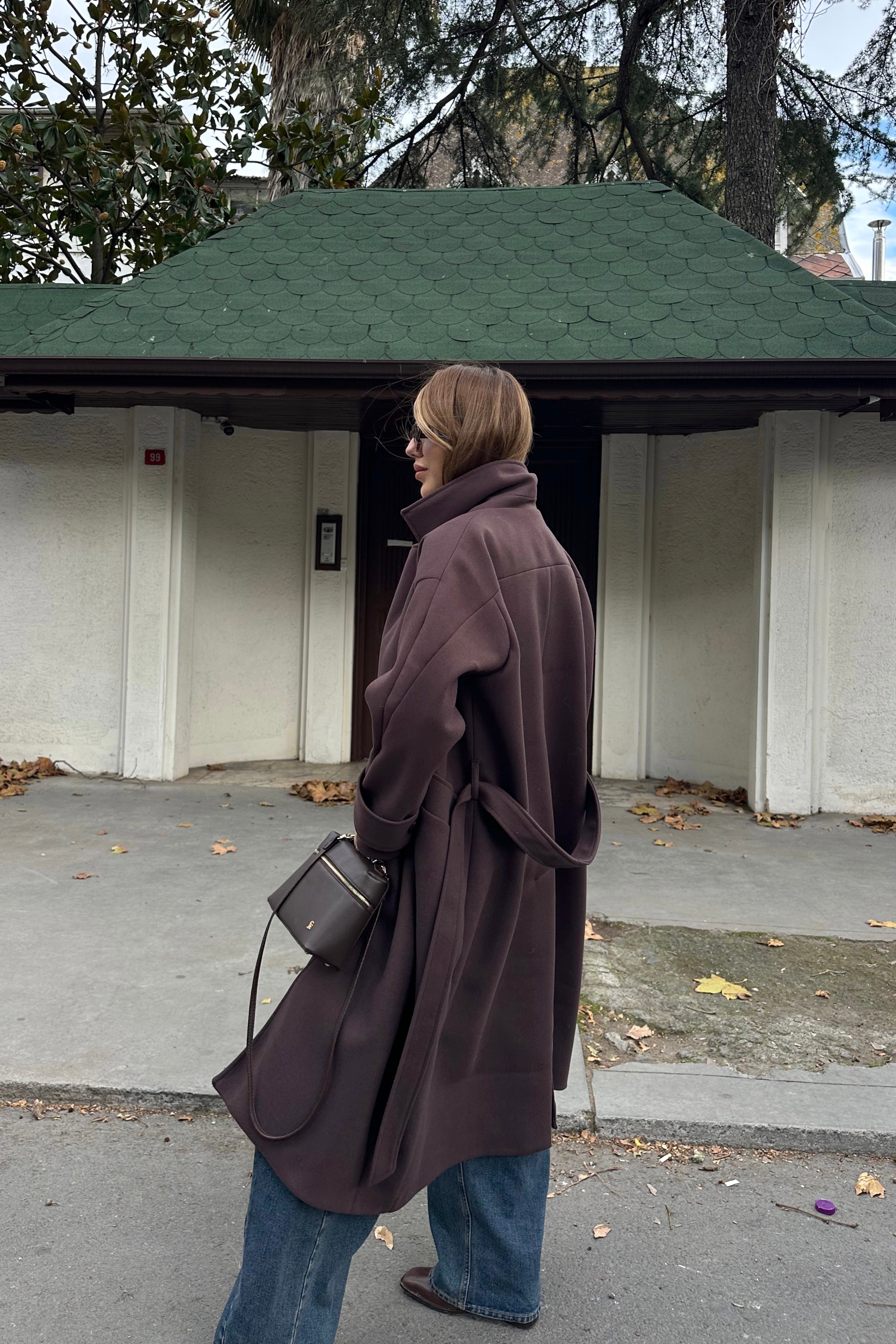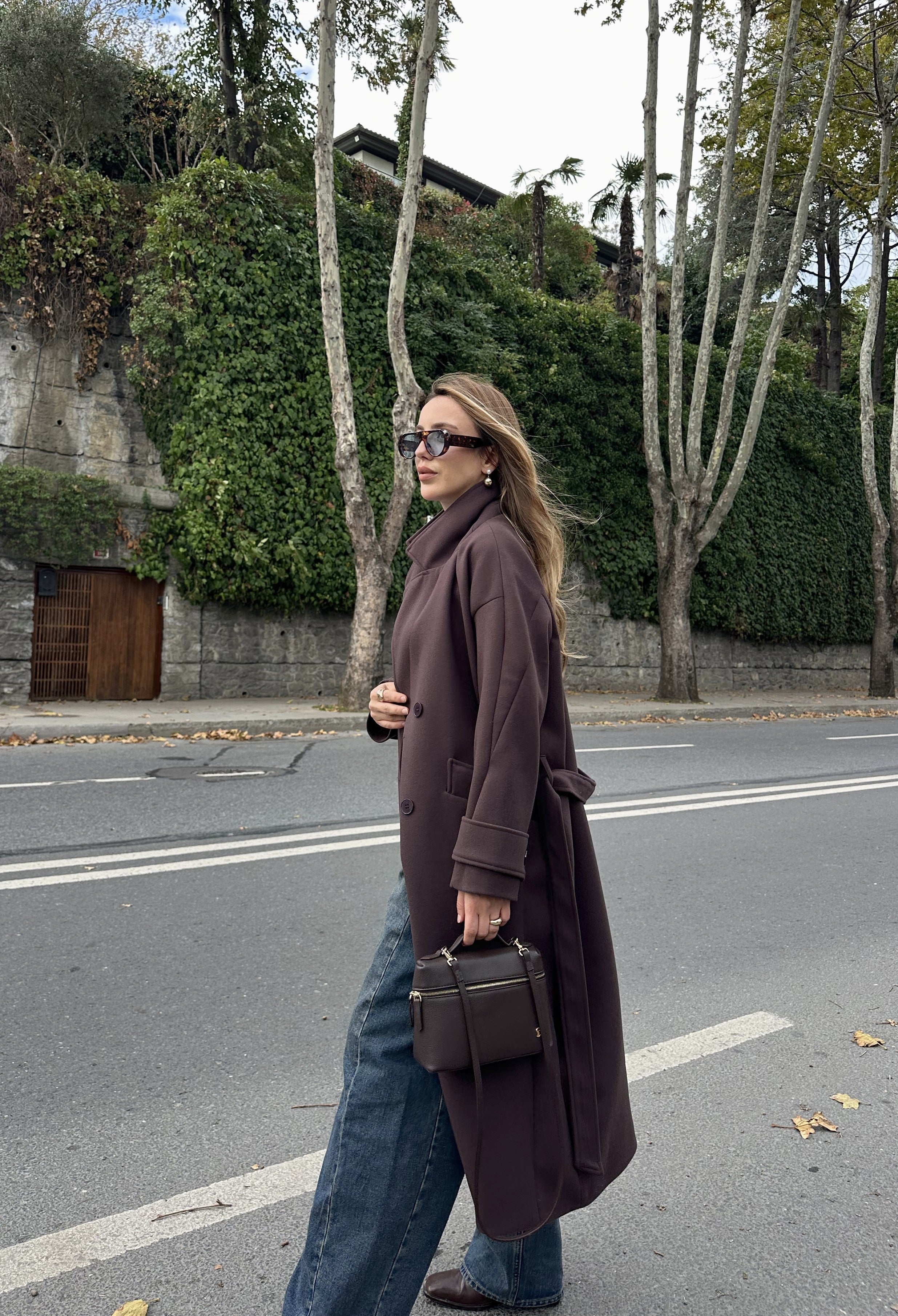 Kahverengi New Tokyo Uzun Kaşe Kaban