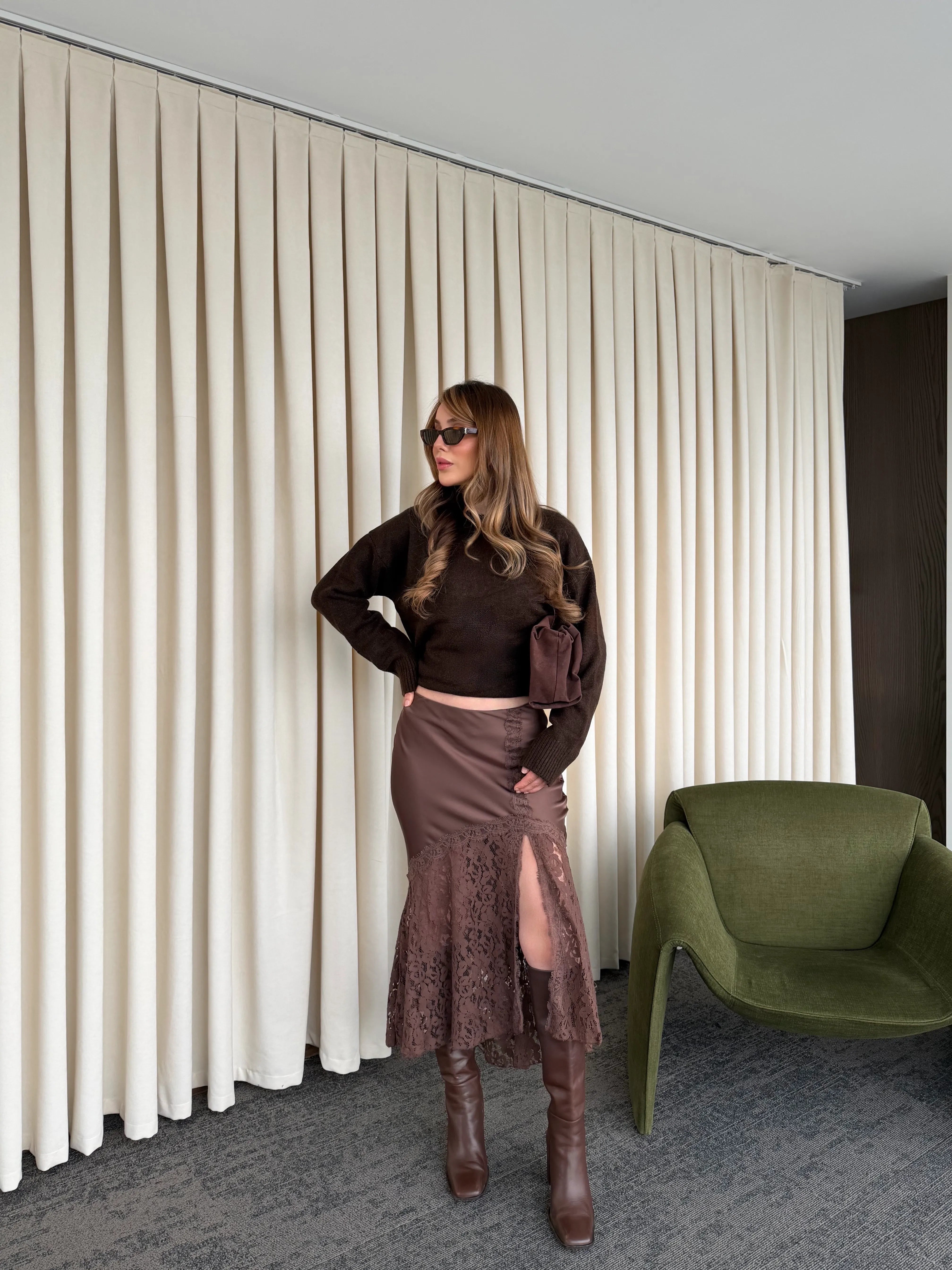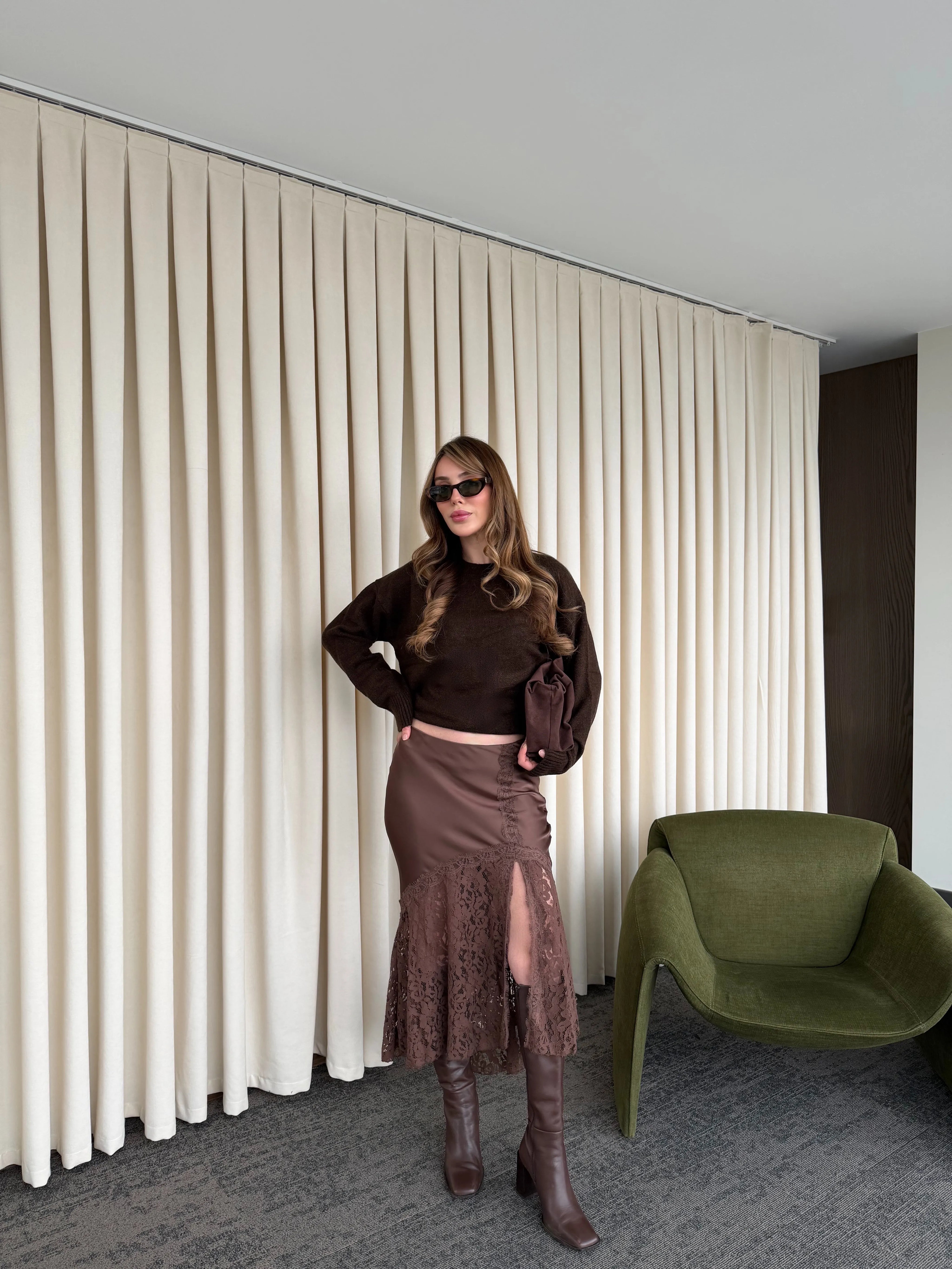 Antrasit Dantelli Kısa Triko Elbise - 251008