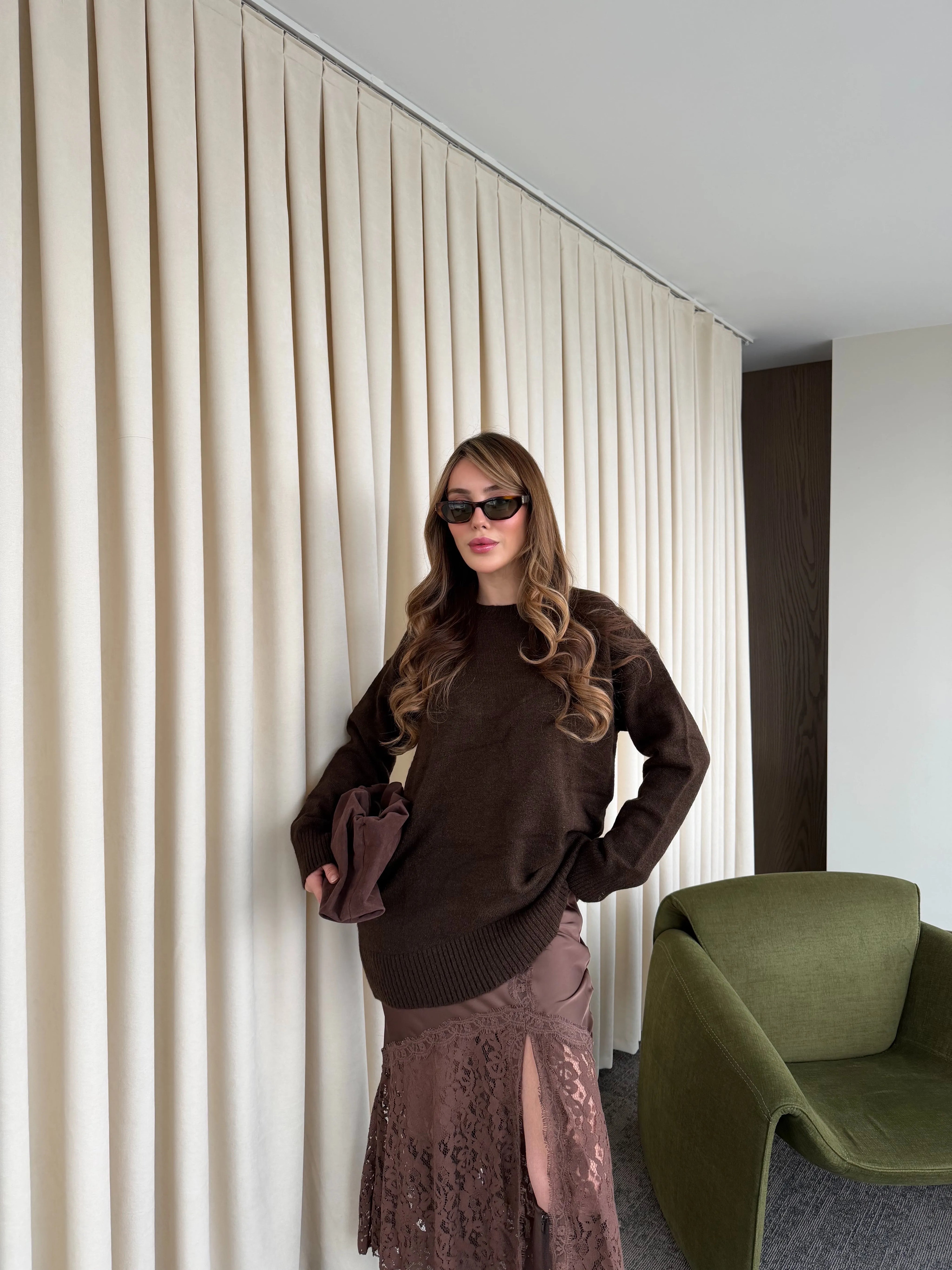 Kahverengi Yakası Fiyonk Detaylı Elbise- 2001