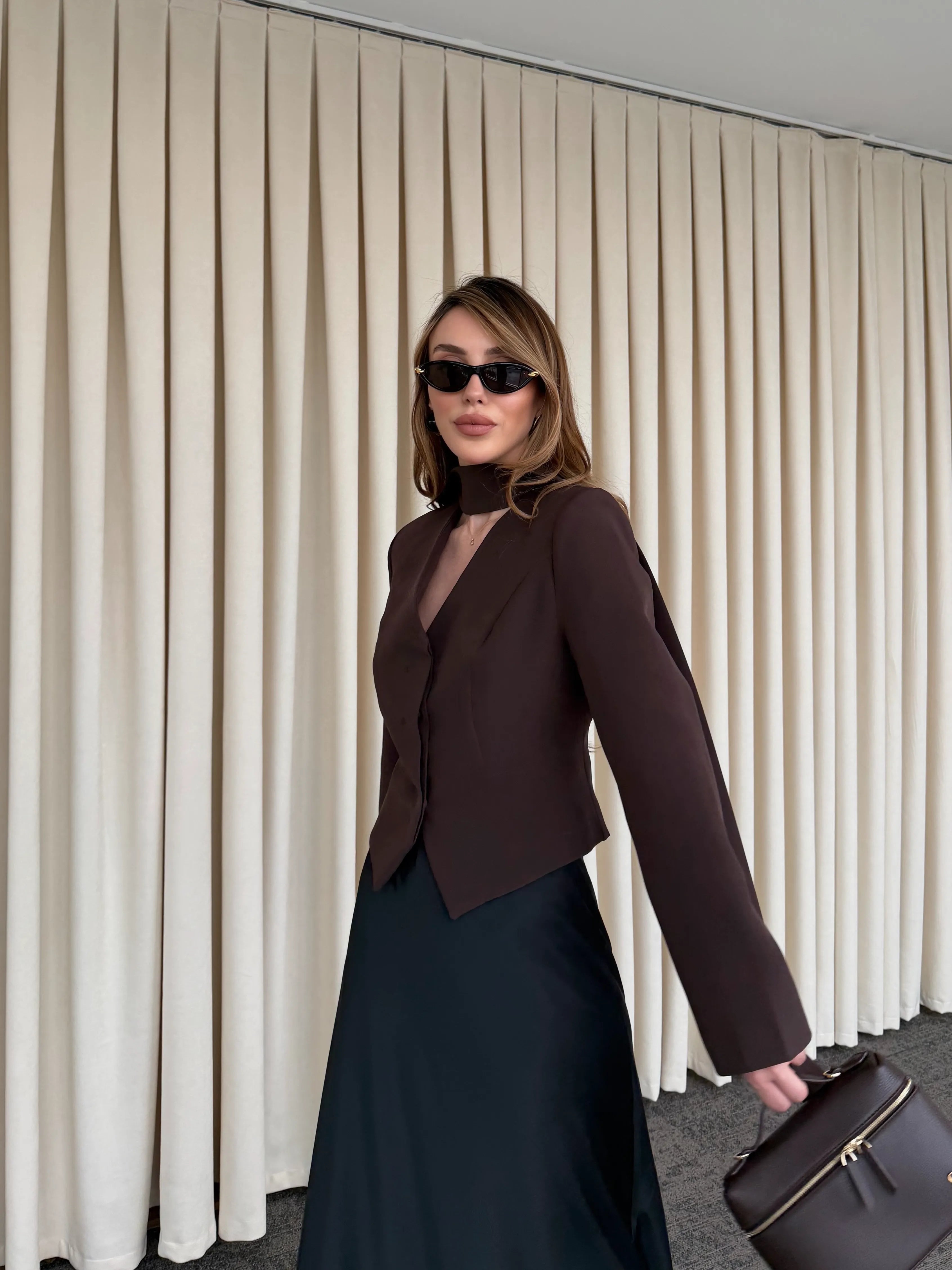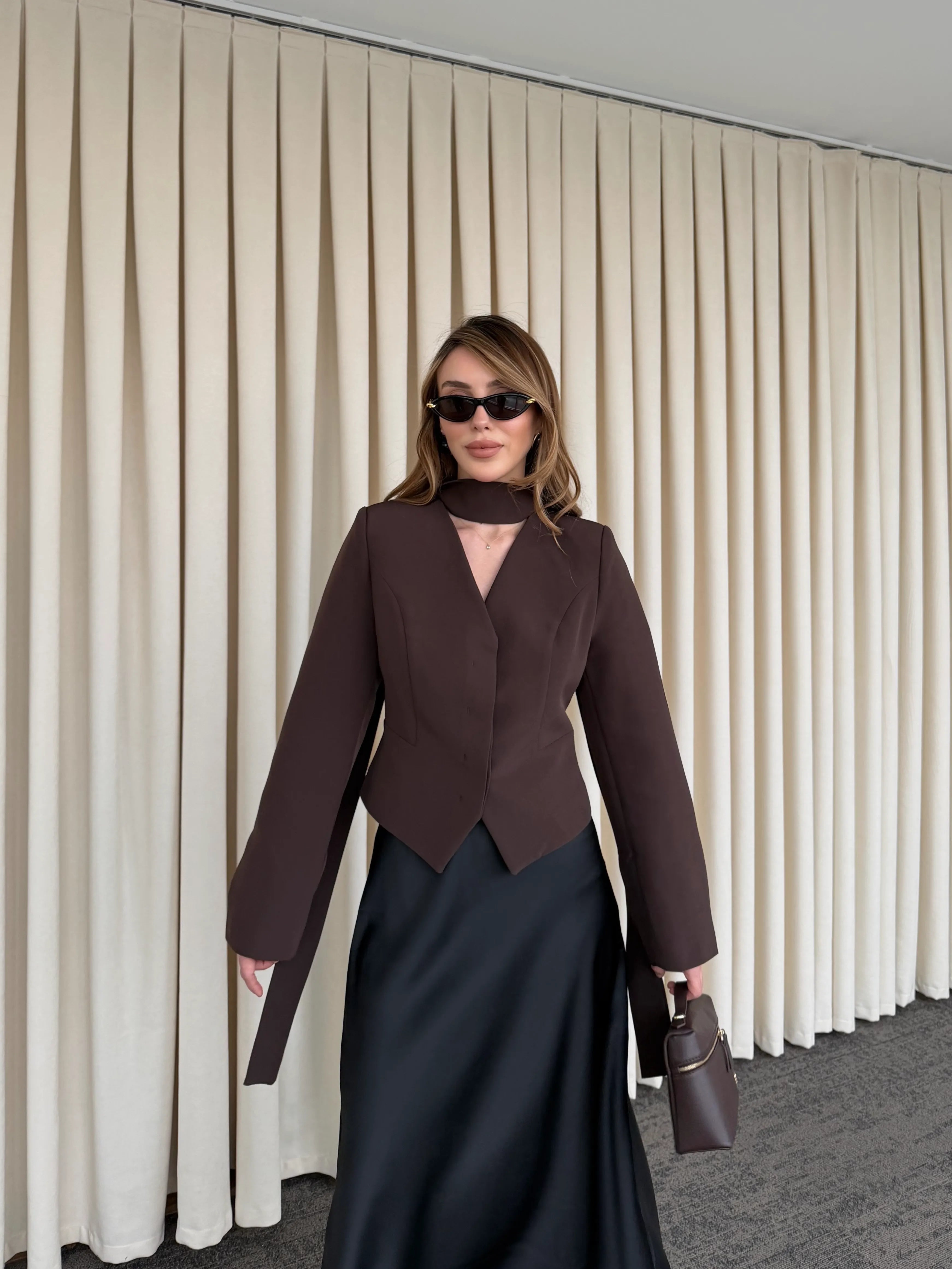 - Kahverengi Vatkalı Fularlı Ceket - 85175