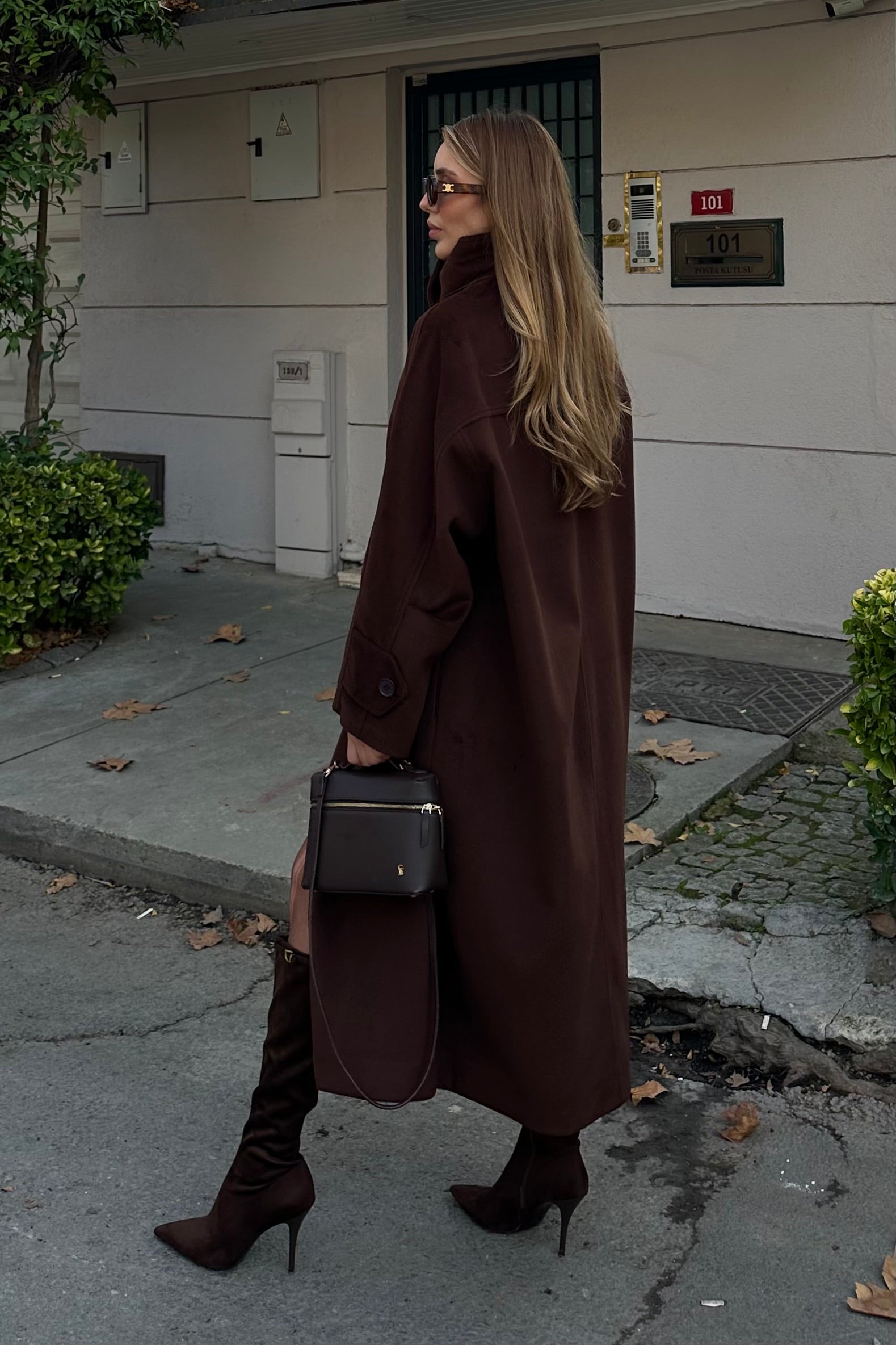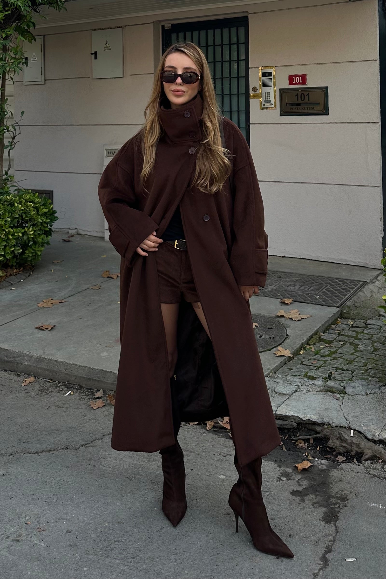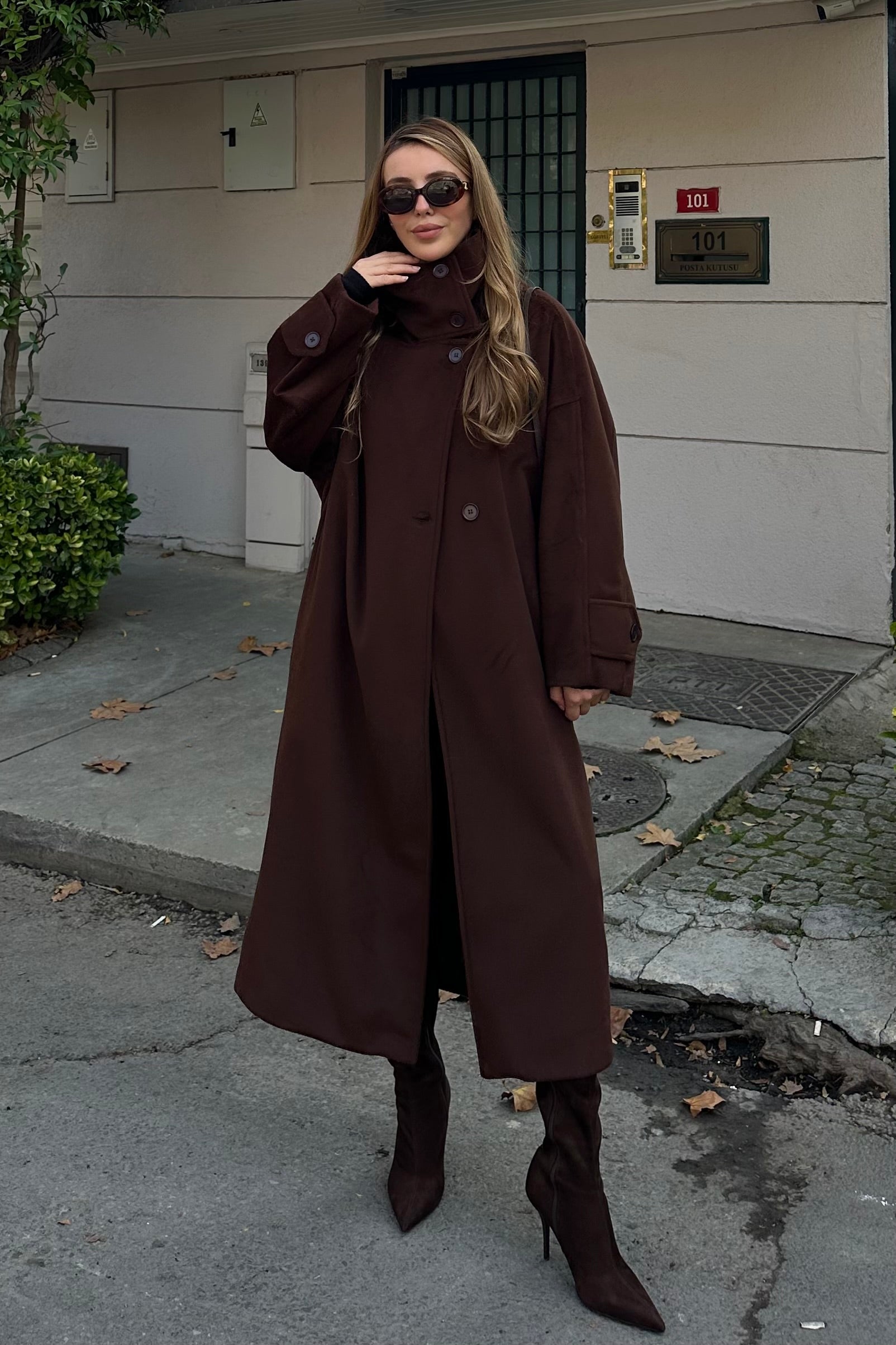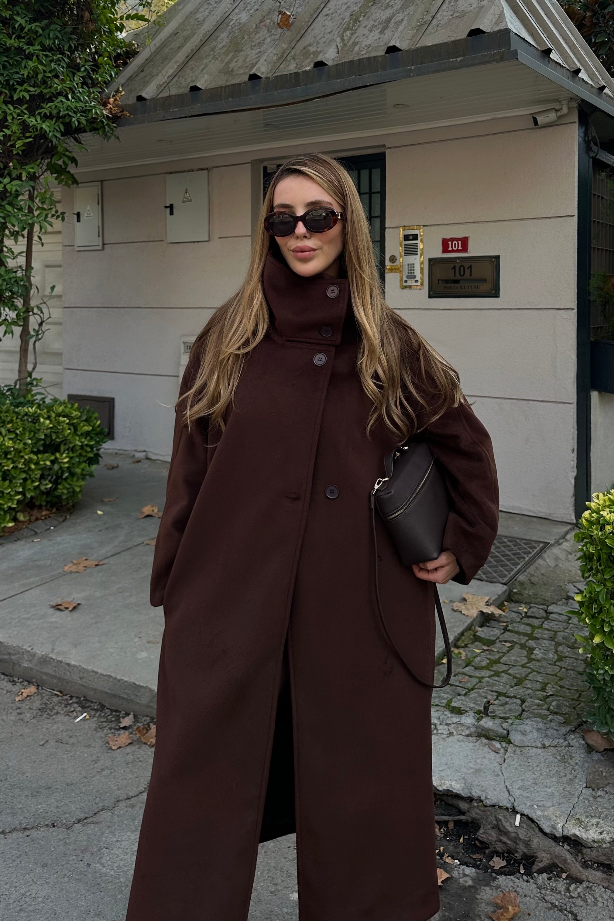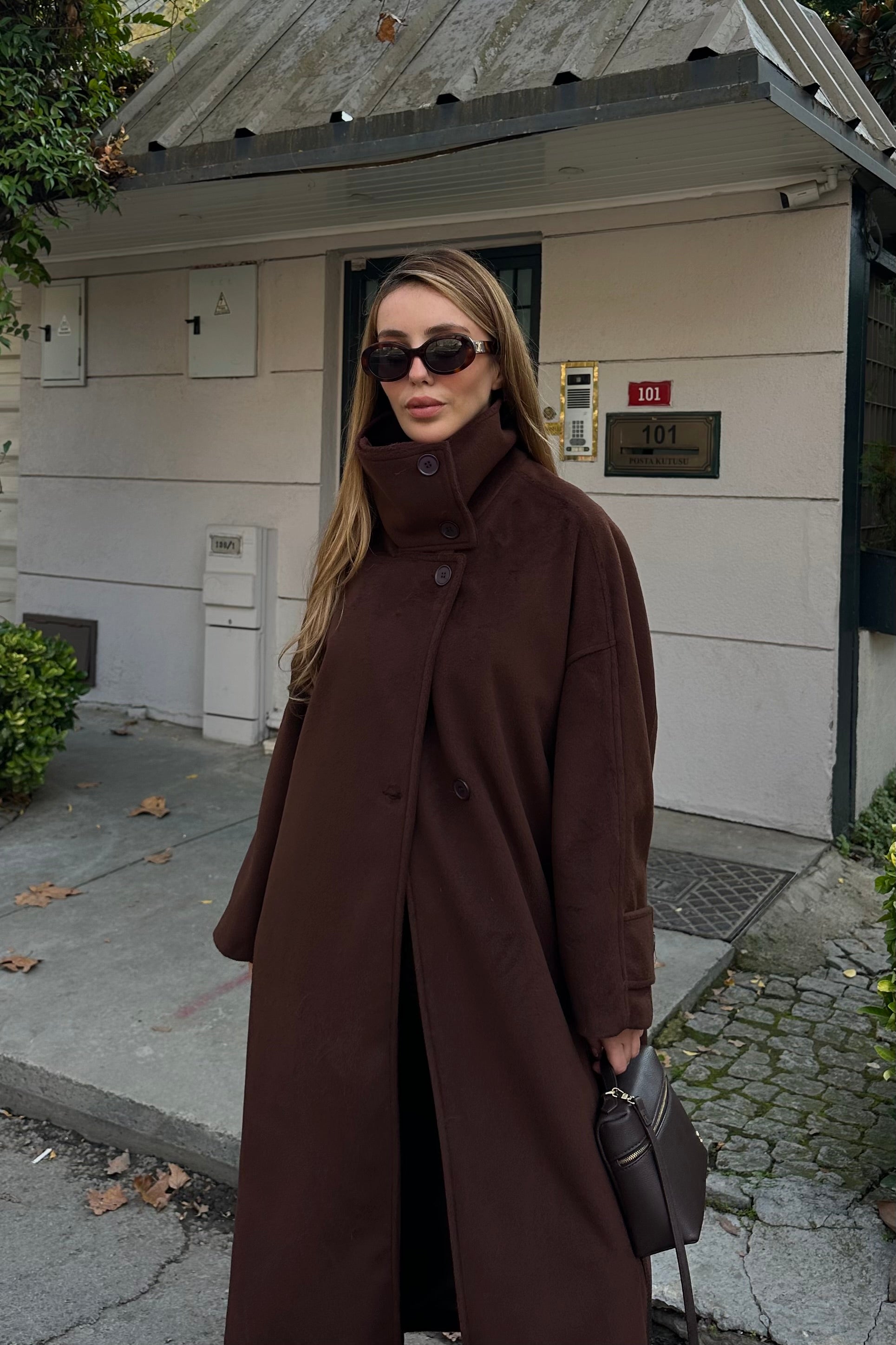 - Kahverengi Vittoria Düğmeli Yaka Kaban - 2511