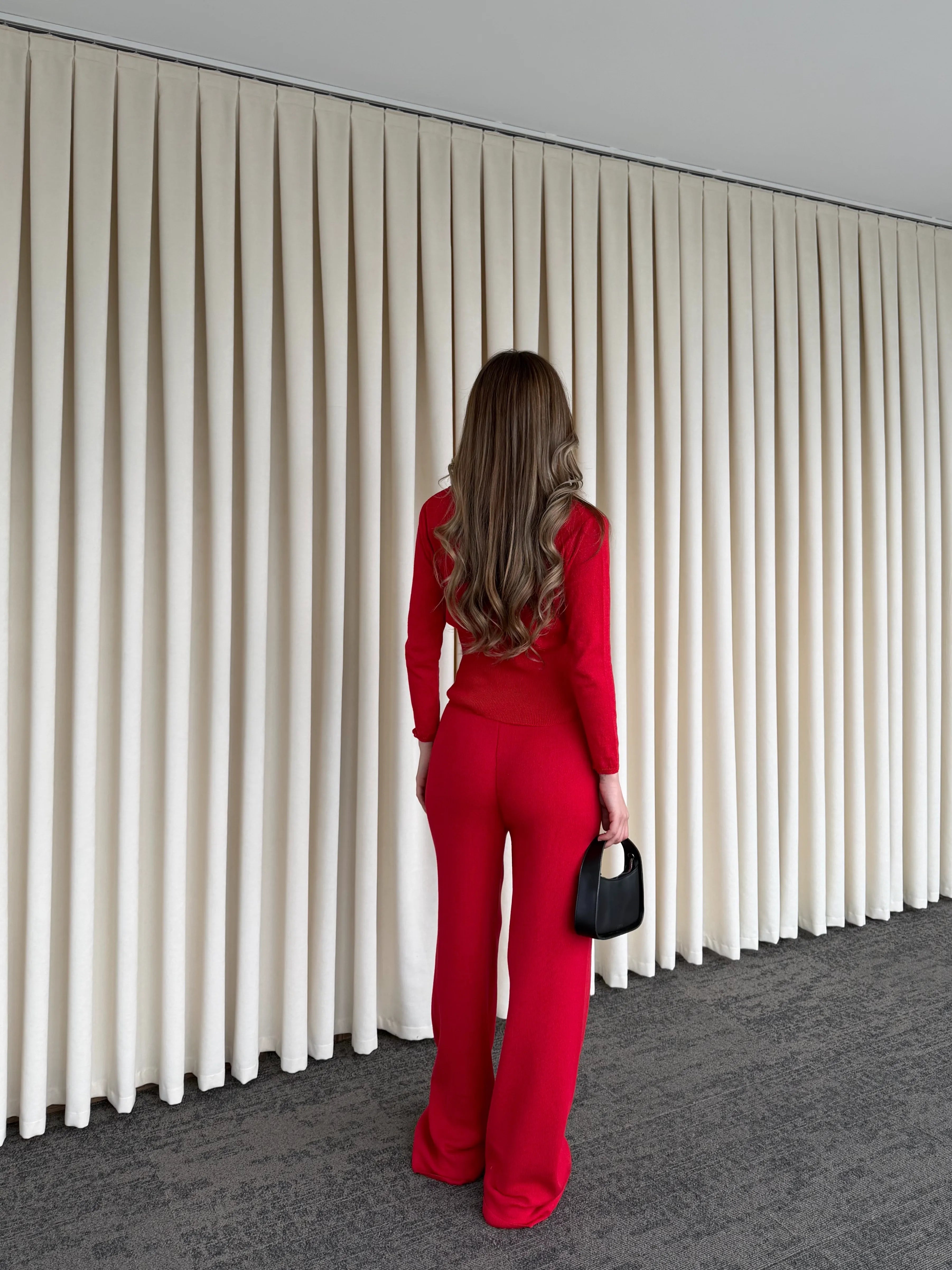 Beli bağcıklı pantolonu ise hareket özgürlüğü sağlayan geniş paça kesimiyle hem rahat hem de iddialı bir görünüm sunar. Birlikte kusursuz bir uyum yakalayan bu iki parça, ister günlük kombinlerde ister şehir stilinde zahmetsiz bir bütünlük oluşturur.