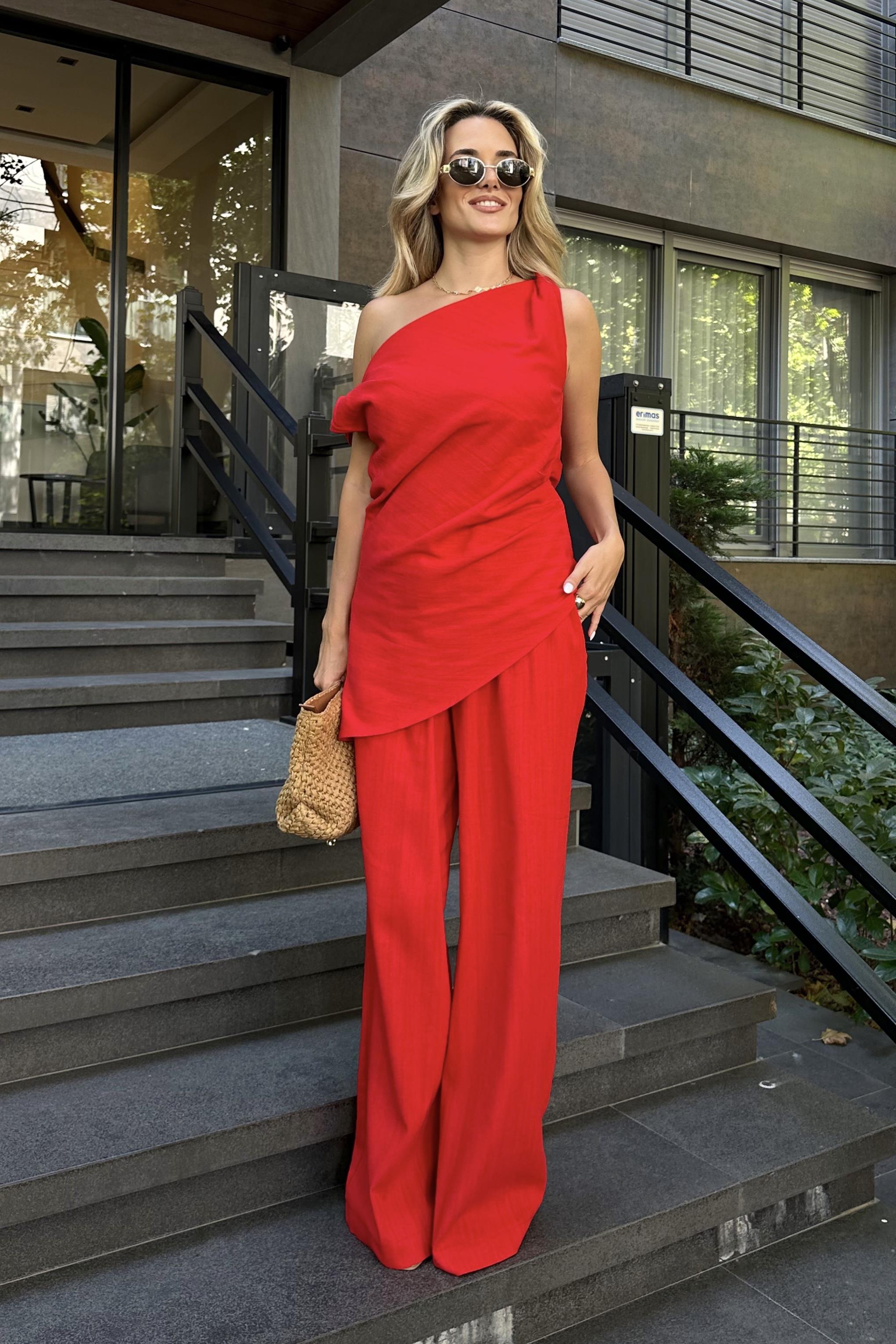 Kırmızı Estela Bluz Pantolon Takım