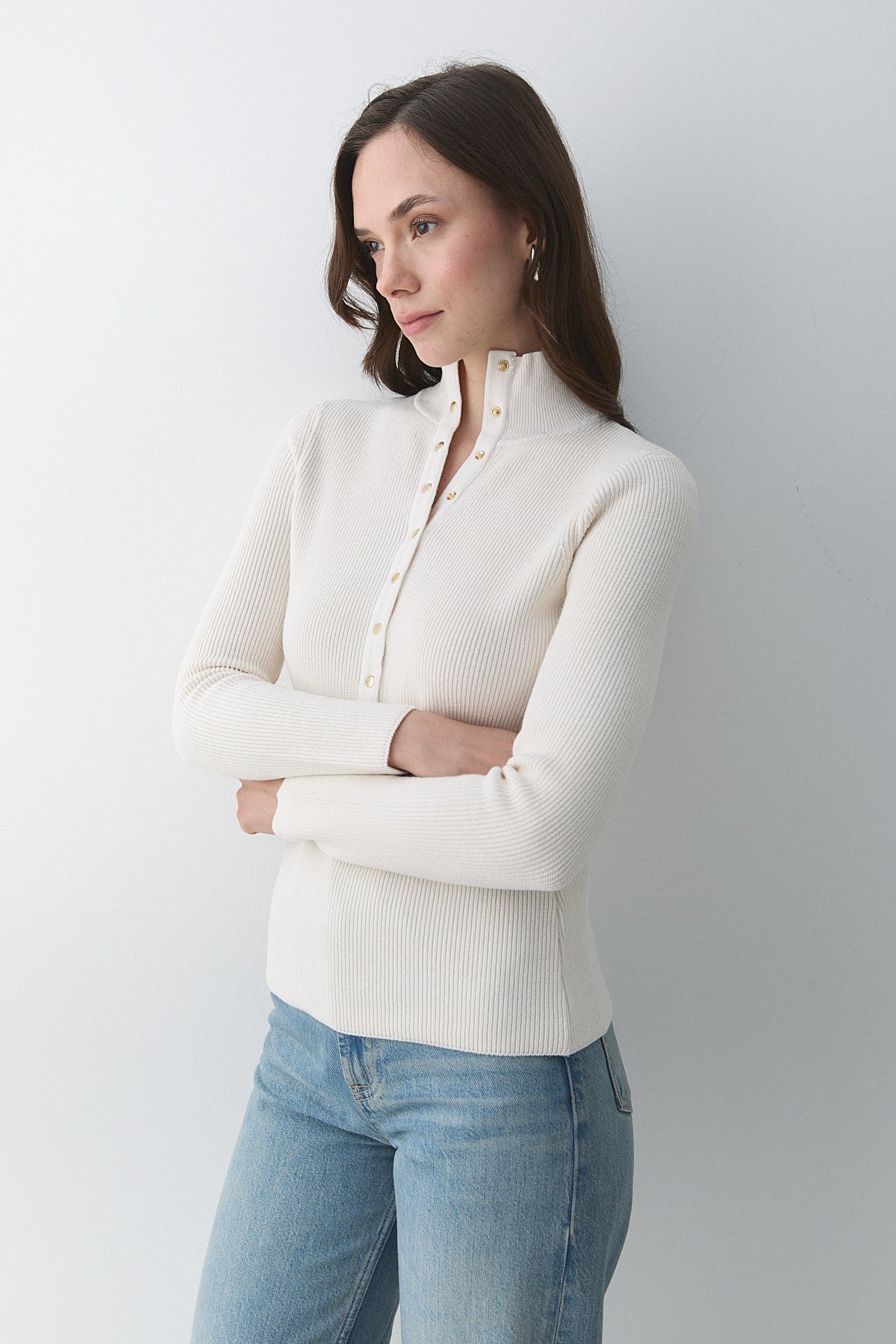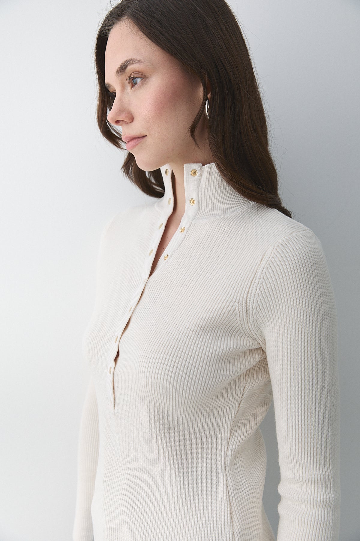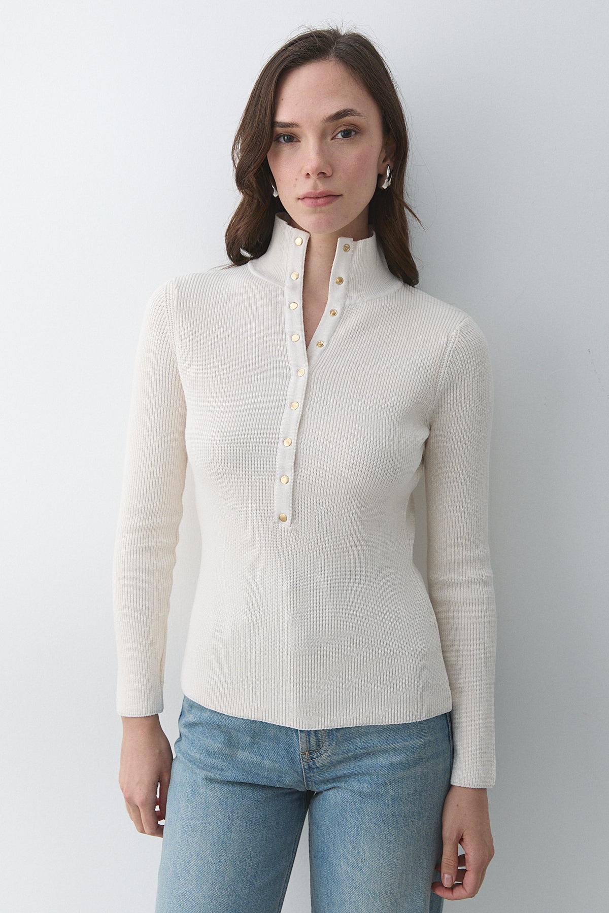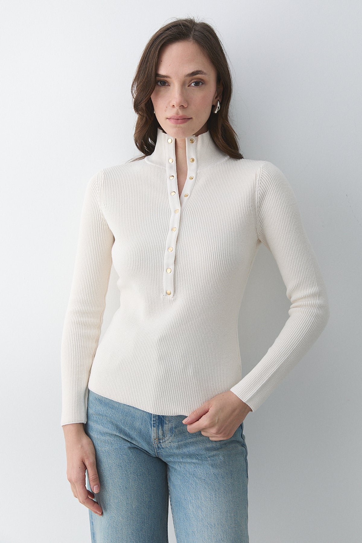 - Krem Çıtçıtlı Boğazlı Kazak - 251037