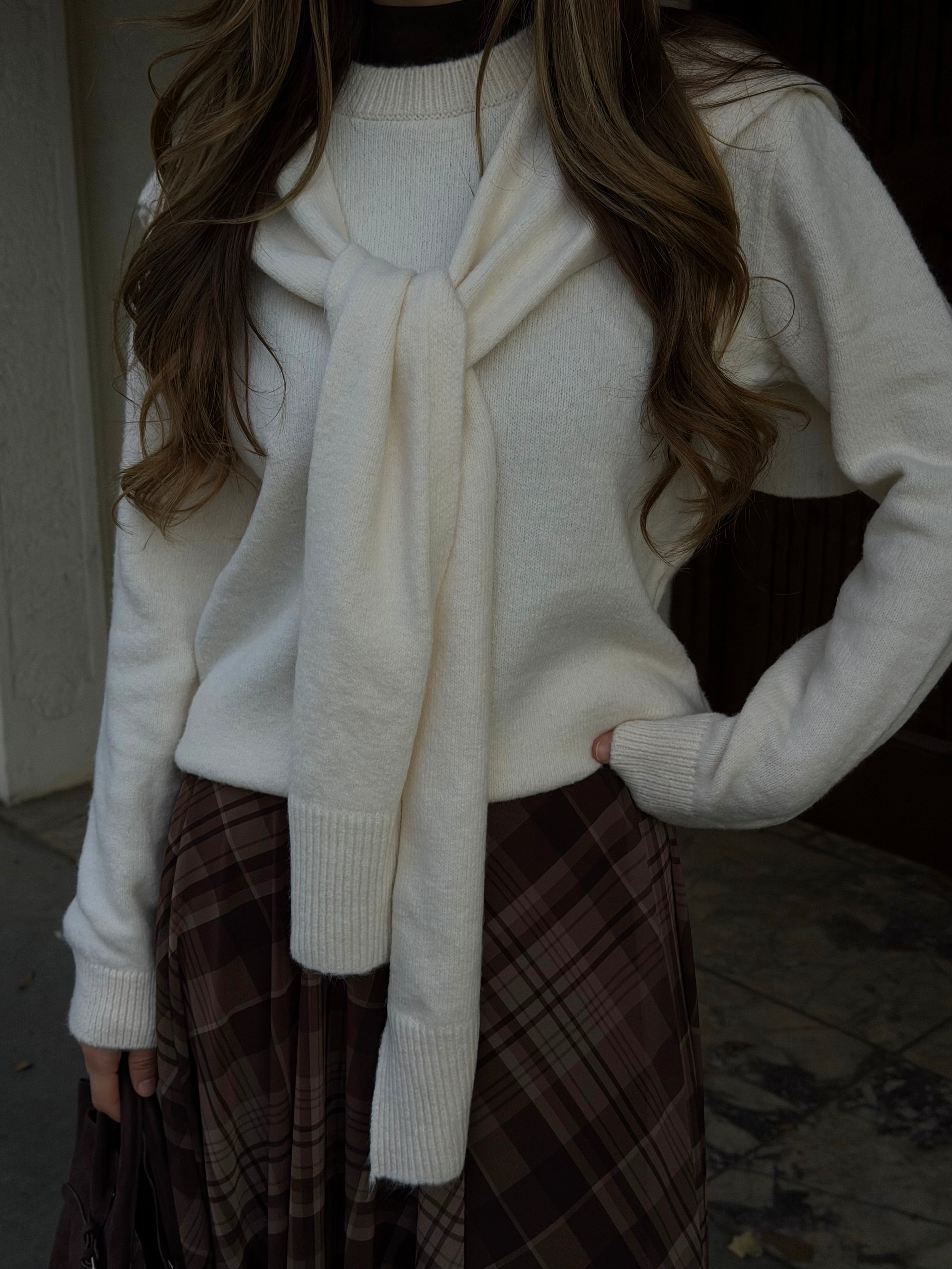 Kahverengi Yakası Fiyonk Detaylı Elbise- 2001