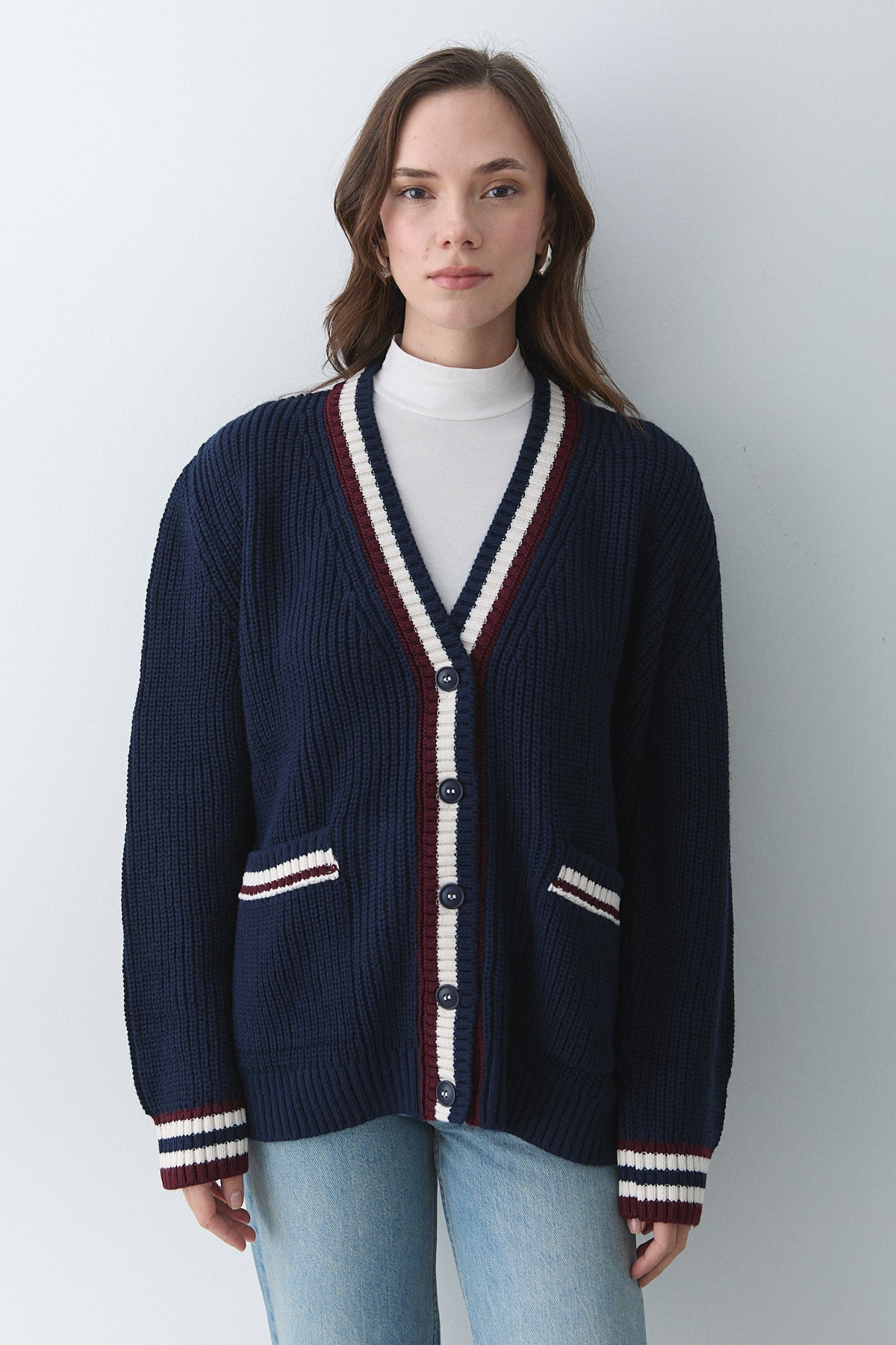 Lacivert - Bordo Renkli Cepli Hırka - 241143