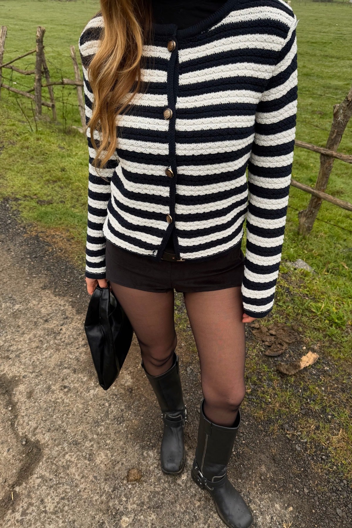 Lacivert - Ekru Çizgili Örme Hırka - 4390