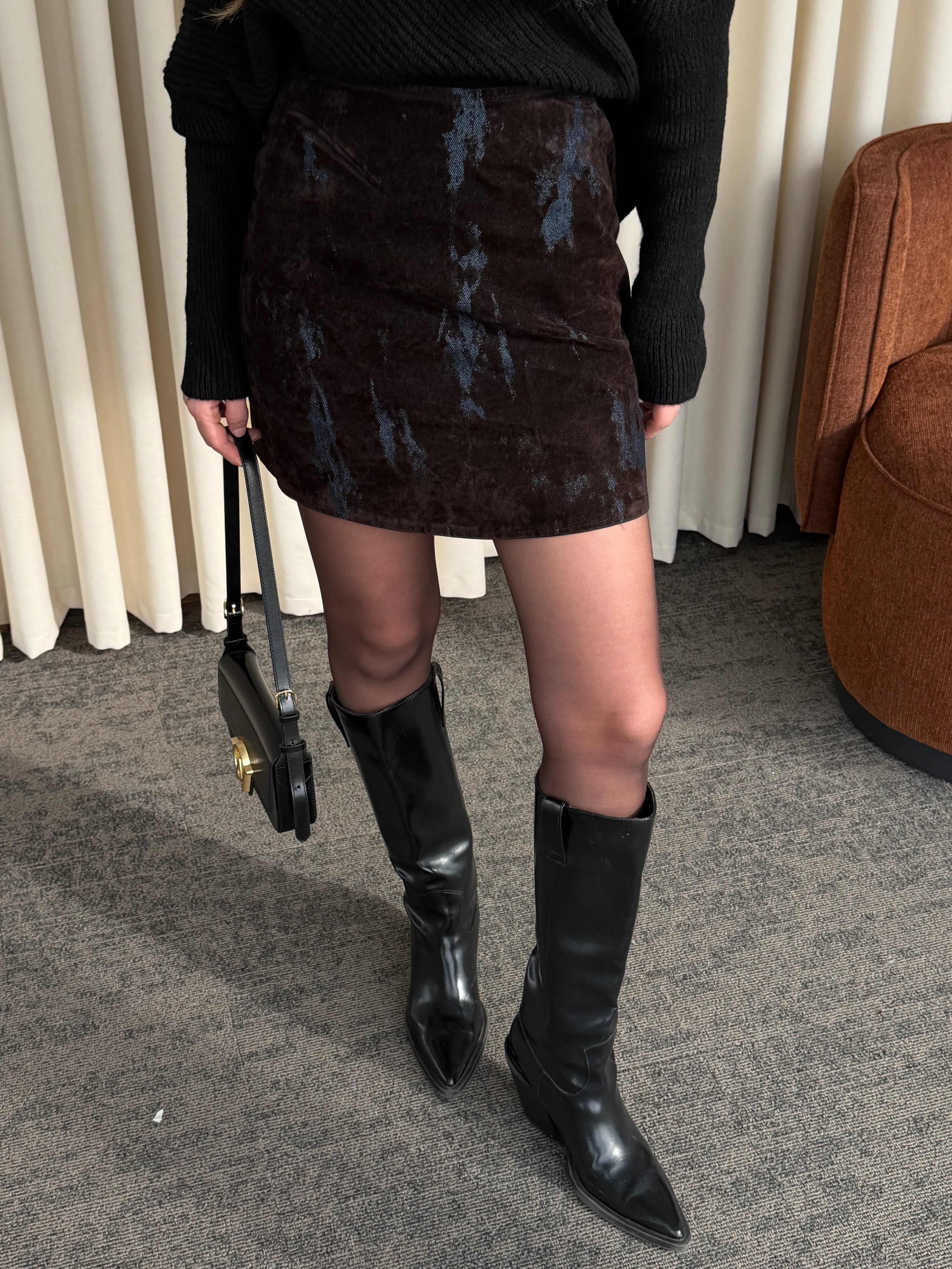 Lacivert - Kahverengi Flok Baskılı Etek - 261002
