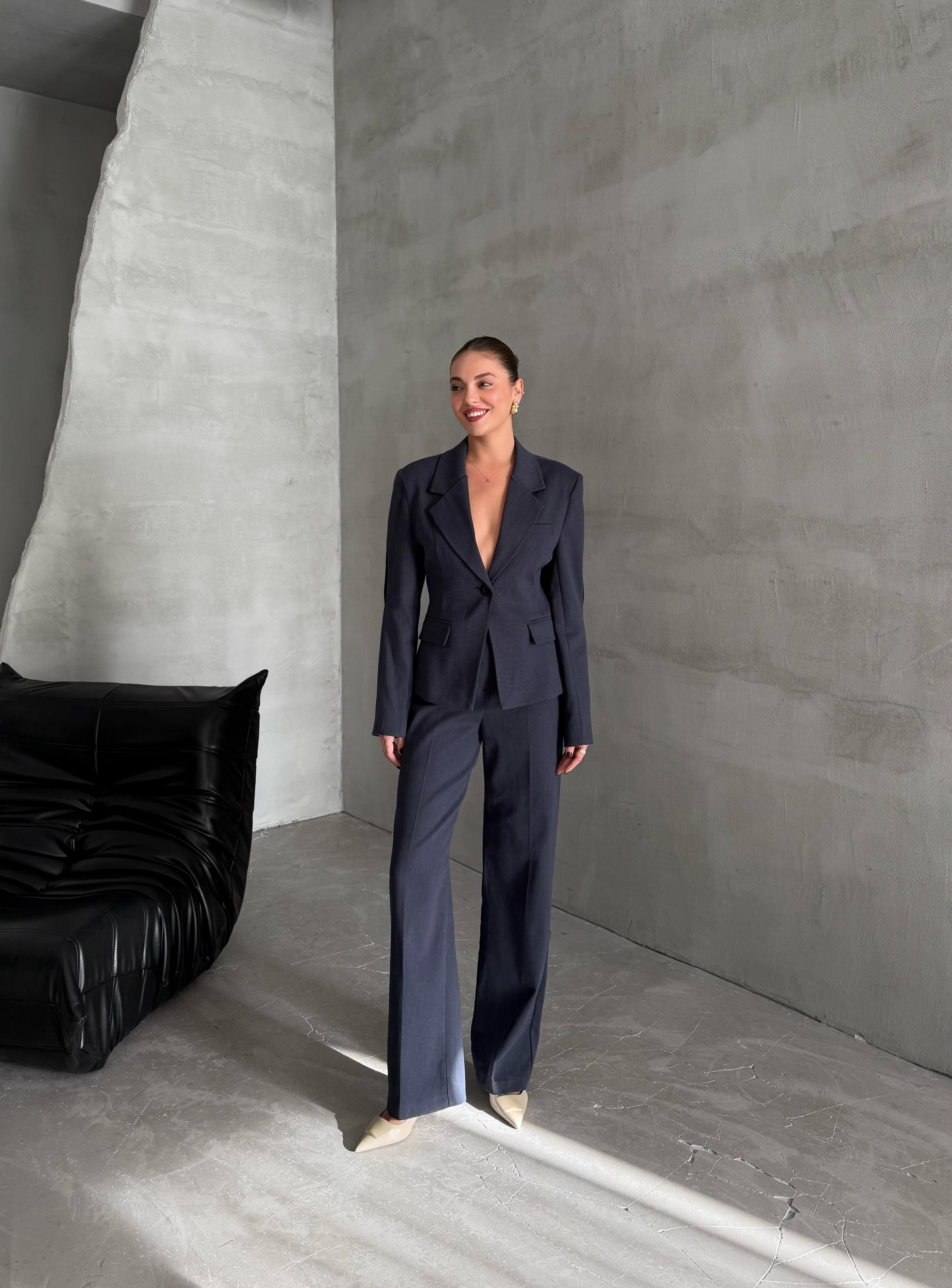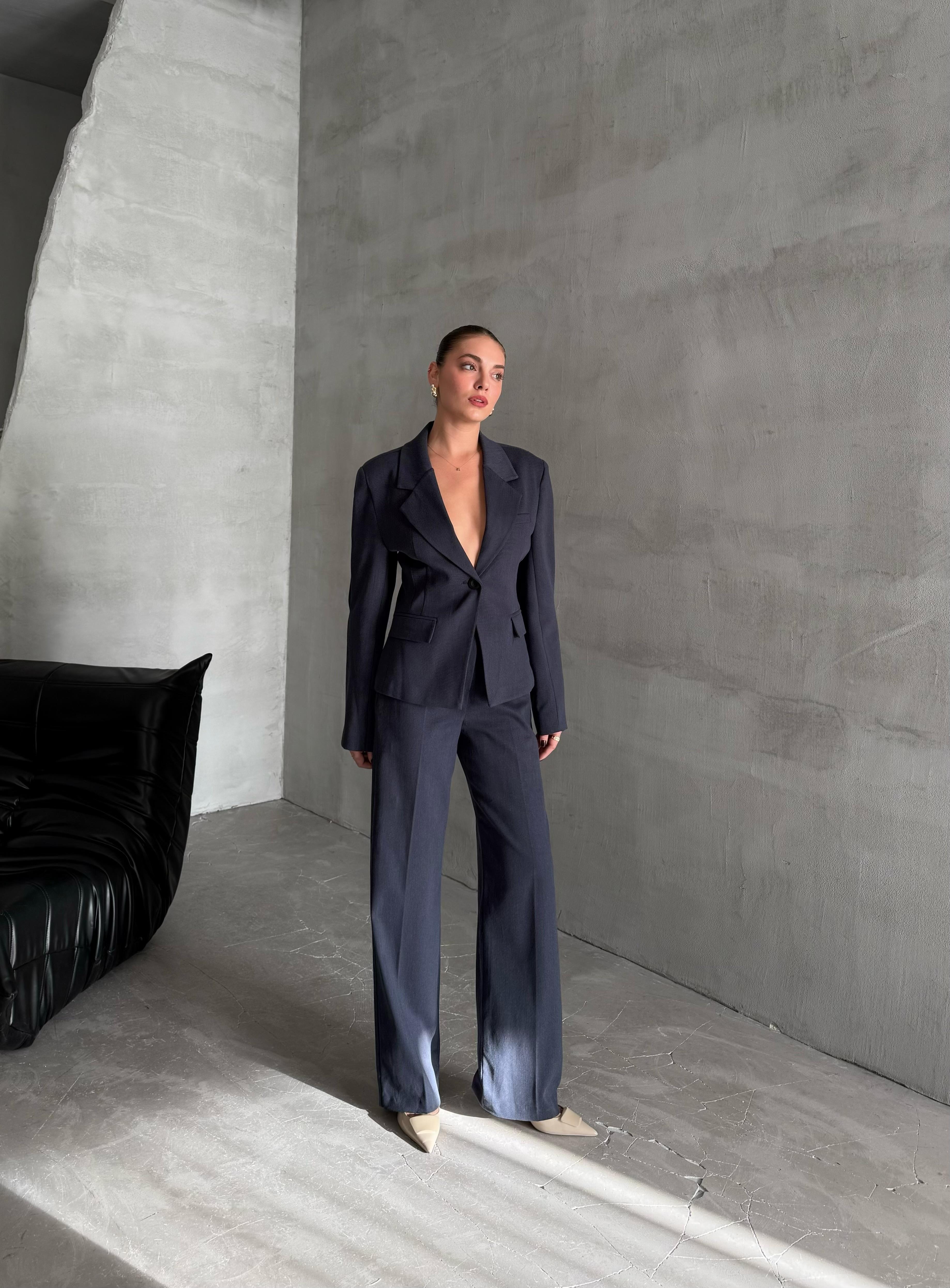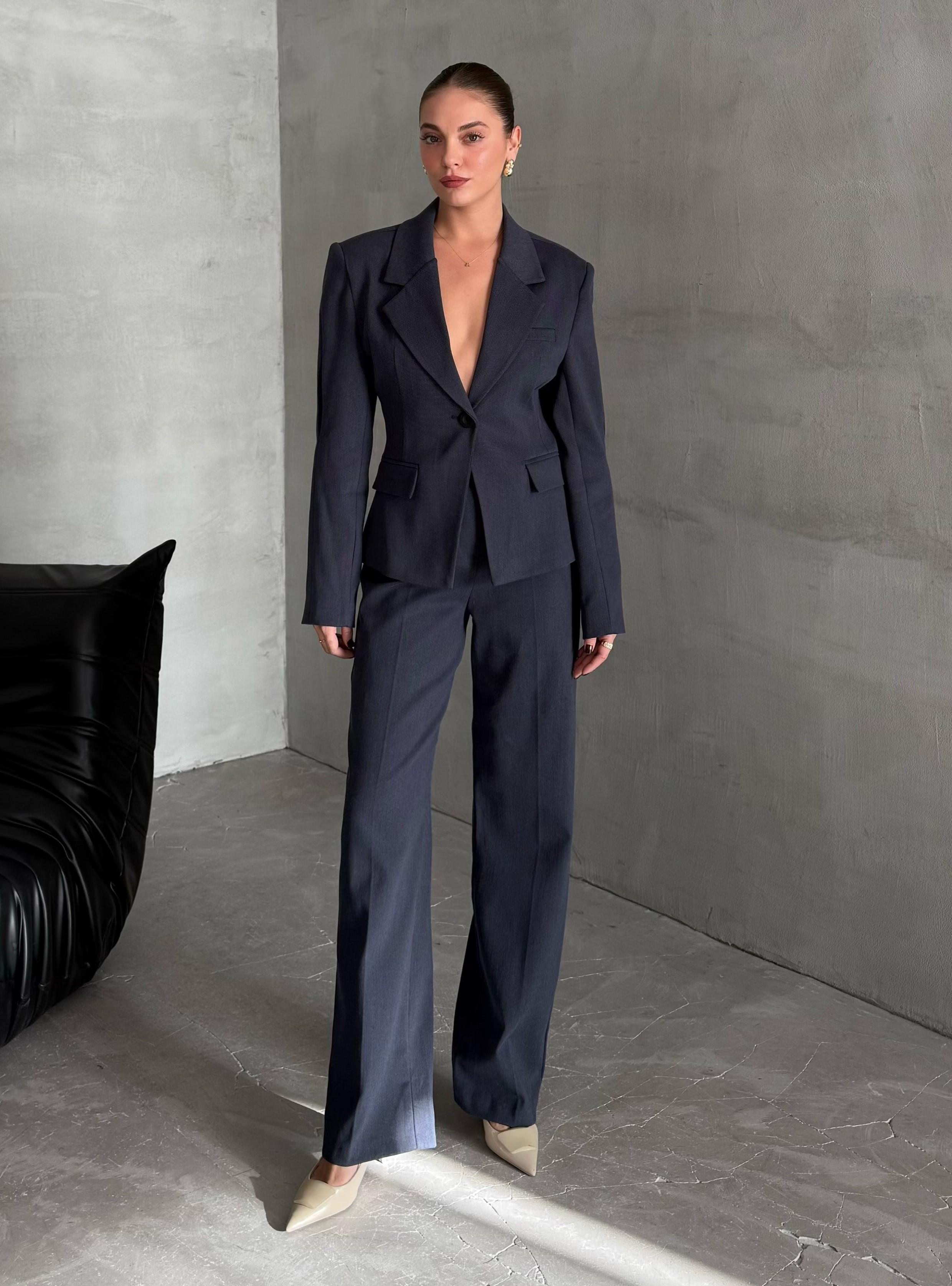 Ürün Ceket Boyu: 56cm'dir. Pantolon Boyu: 110cm'dir. Ürün İçeriği: %39 Tencel %26 Poleyster %2 Elastan %33 Pamuk'tur. Mankenimiz Çekimlerde S(36) Beden tercih etmiştir.