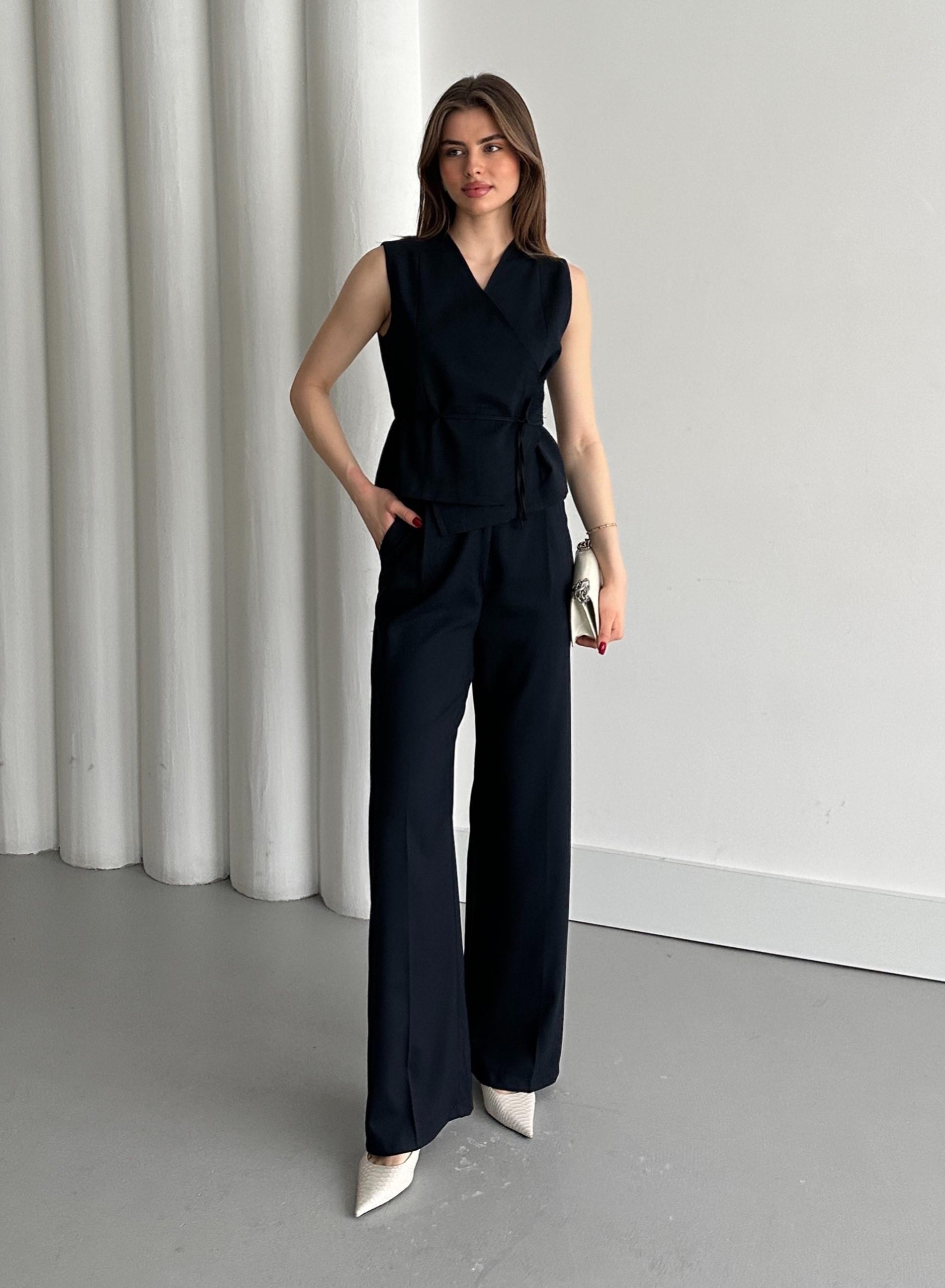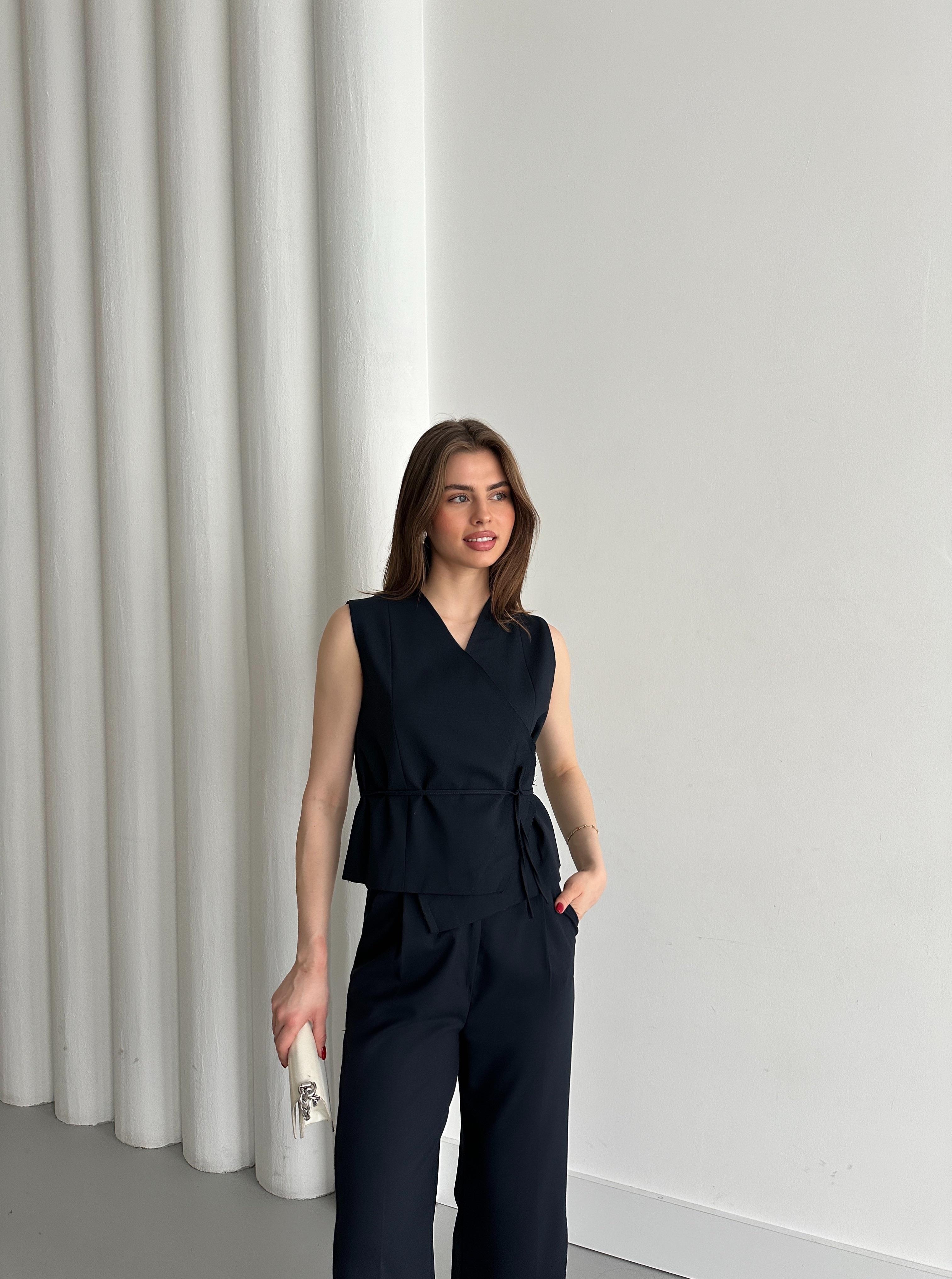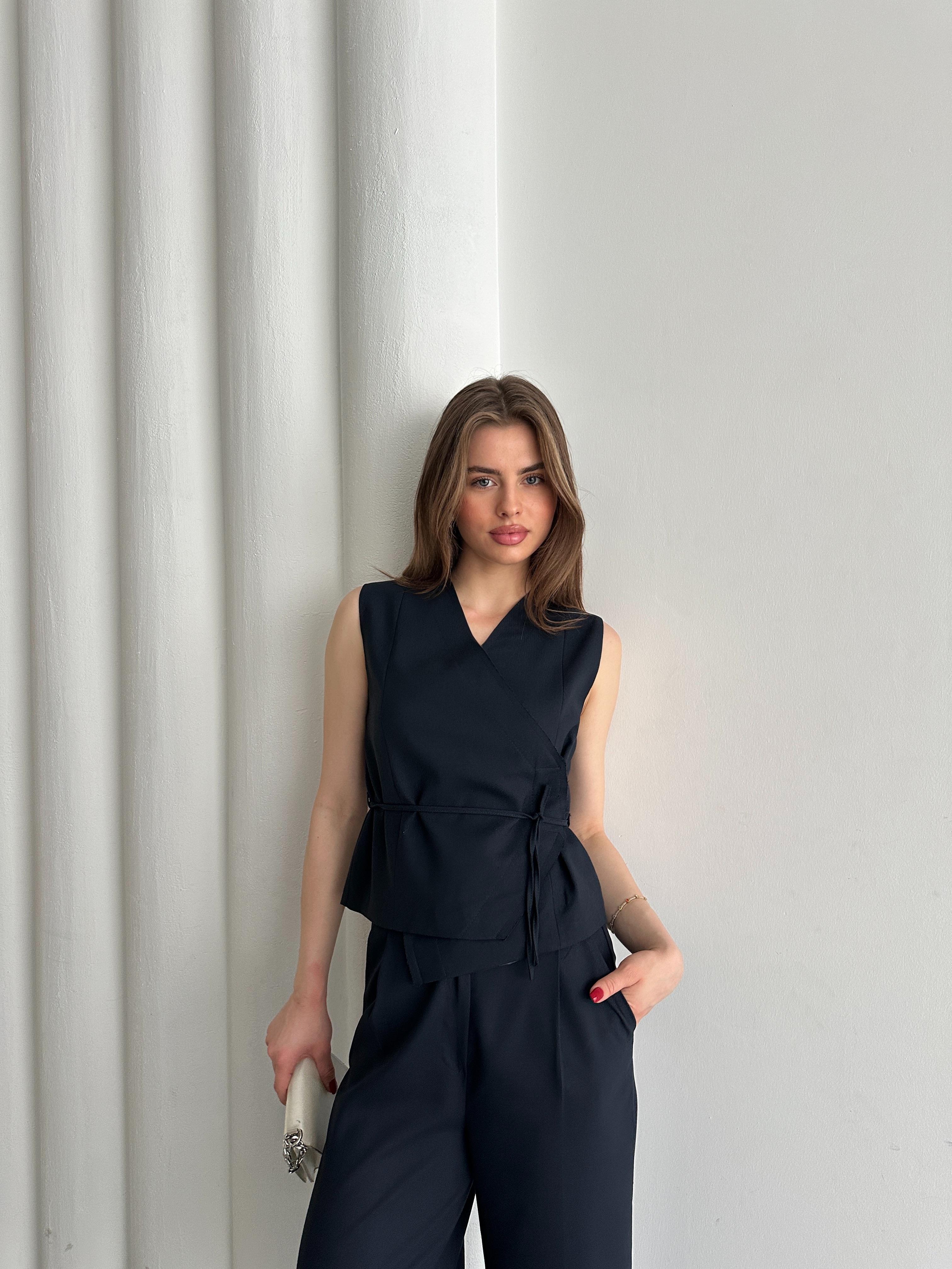 Lacivert Kruvaze Yaka Yelek Pantolon Takım