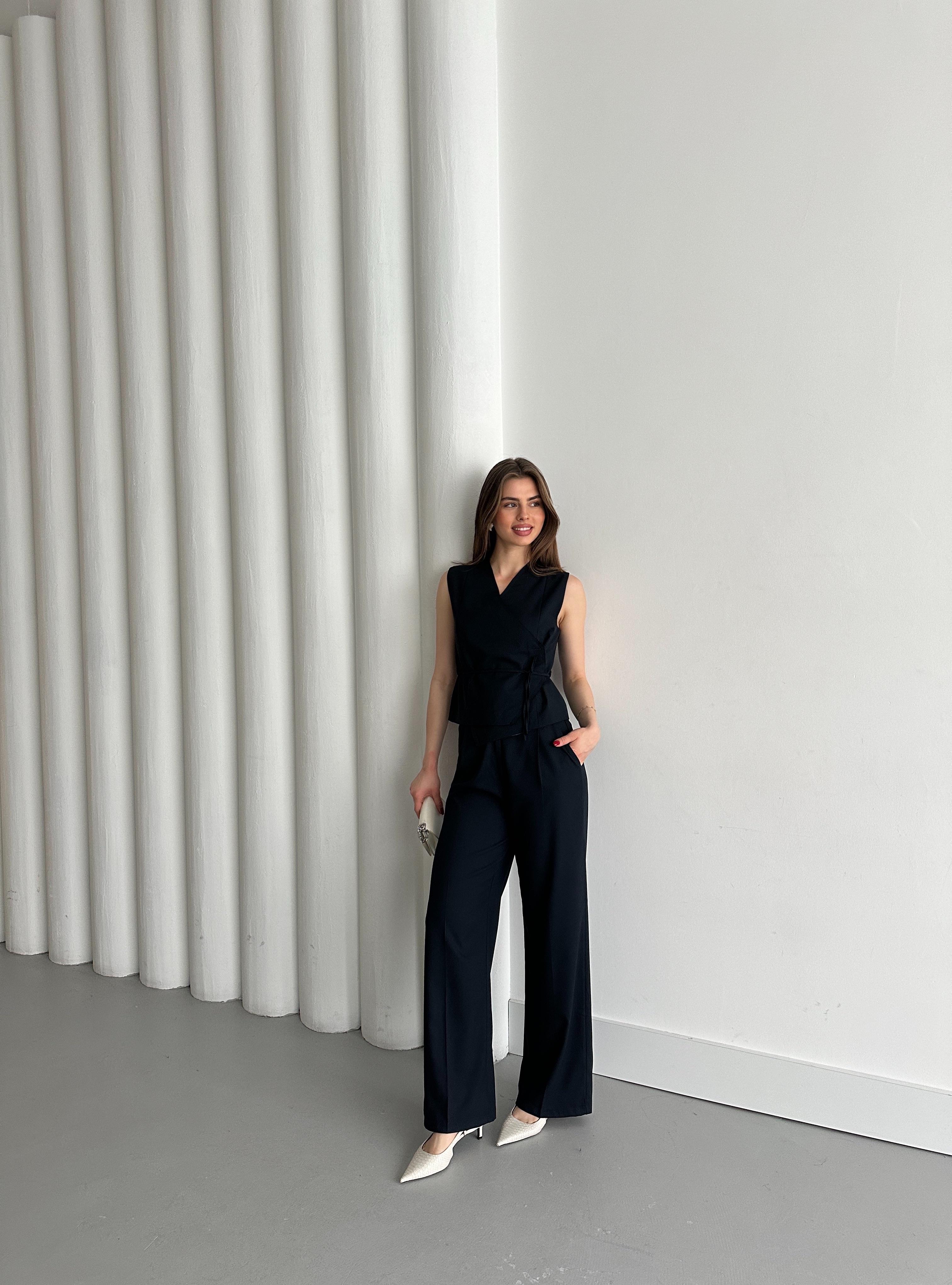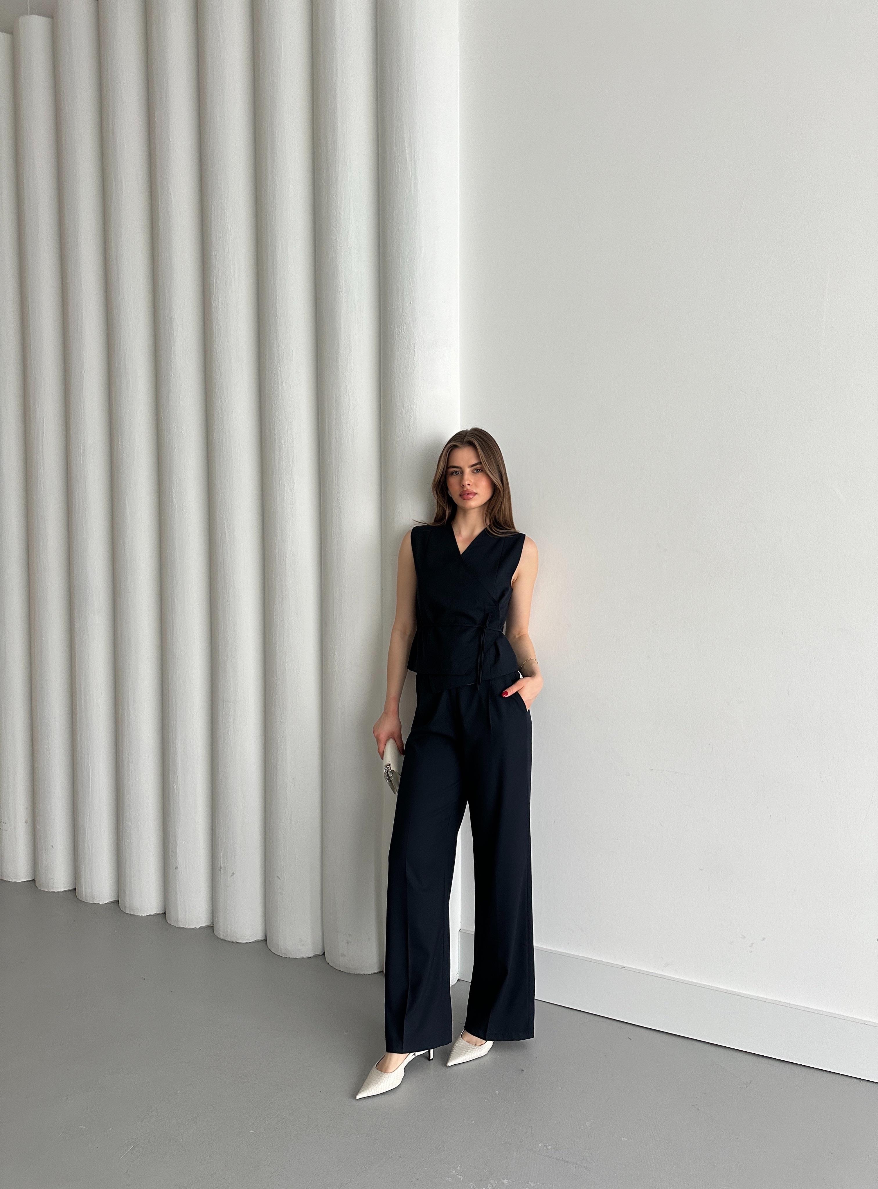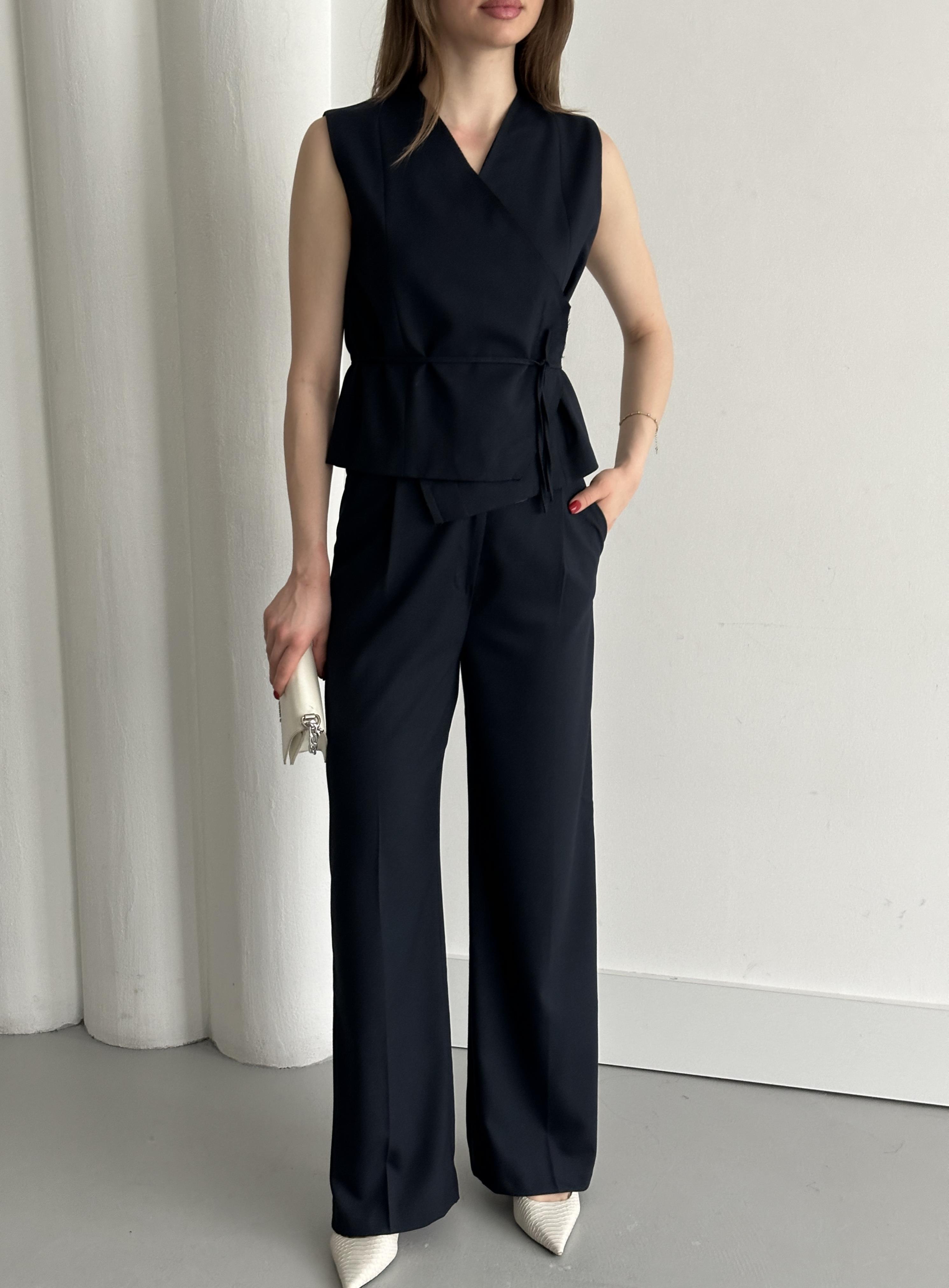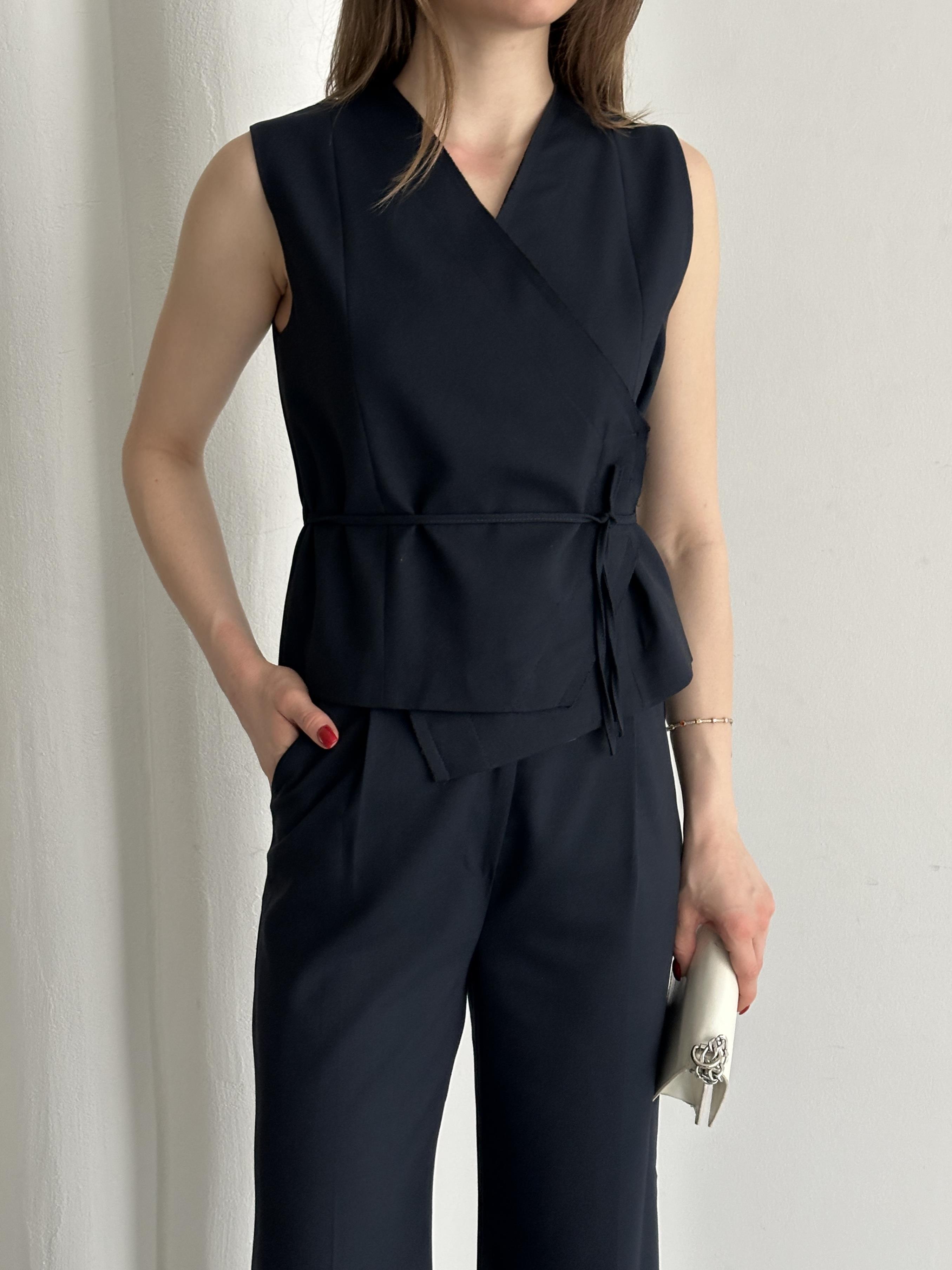 Lacivert Kruvaze Yaka Yelek Pantolon Takım