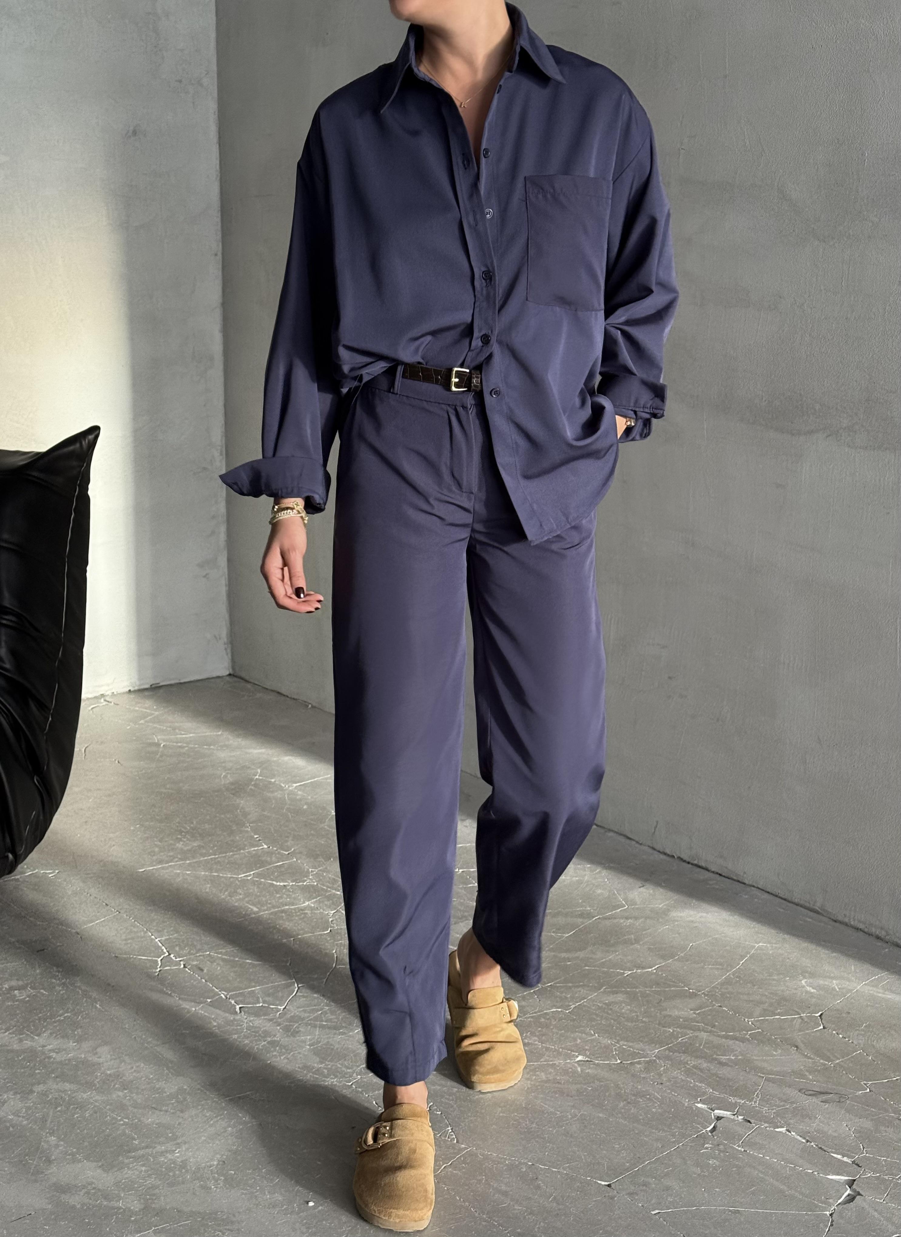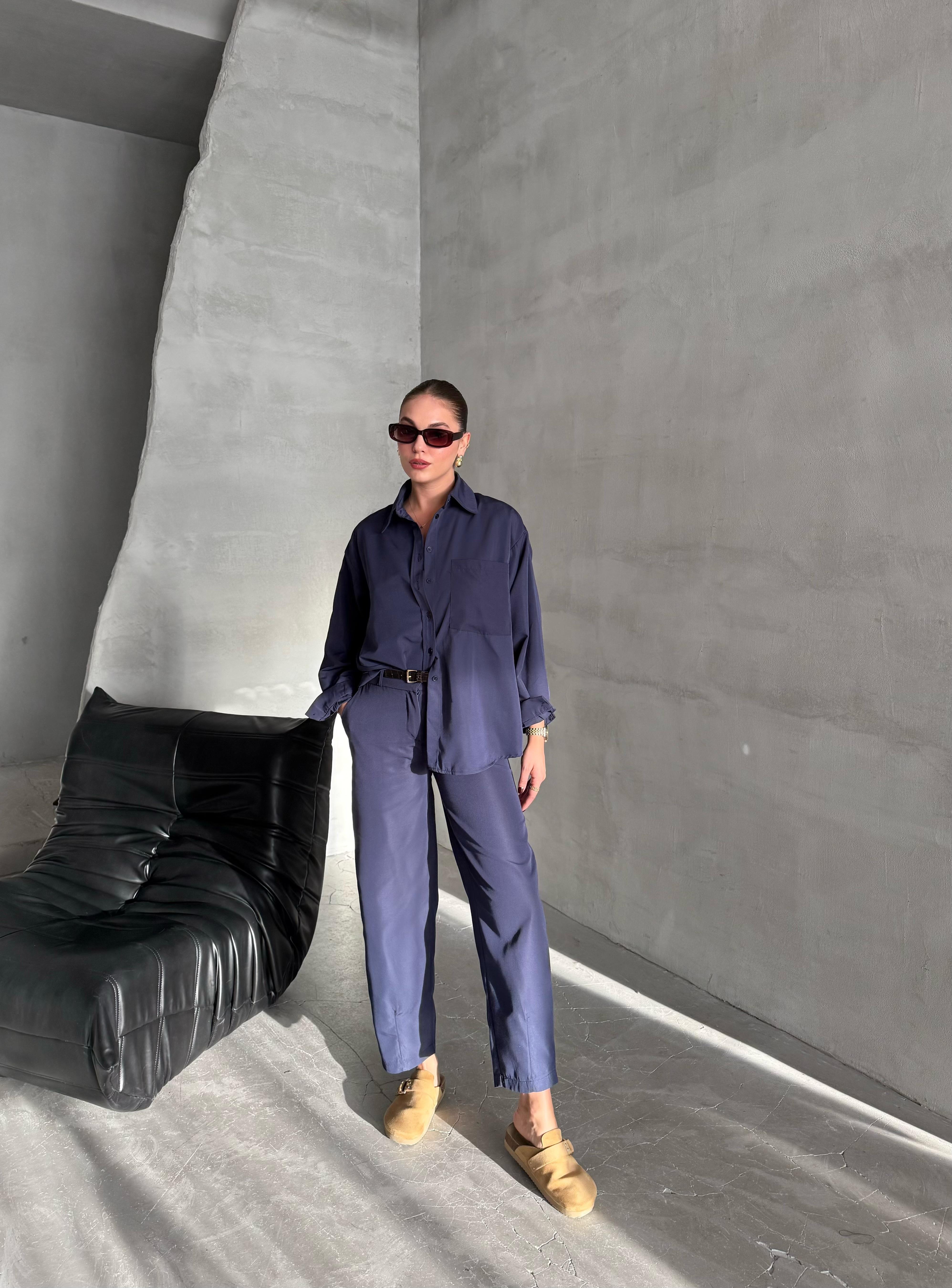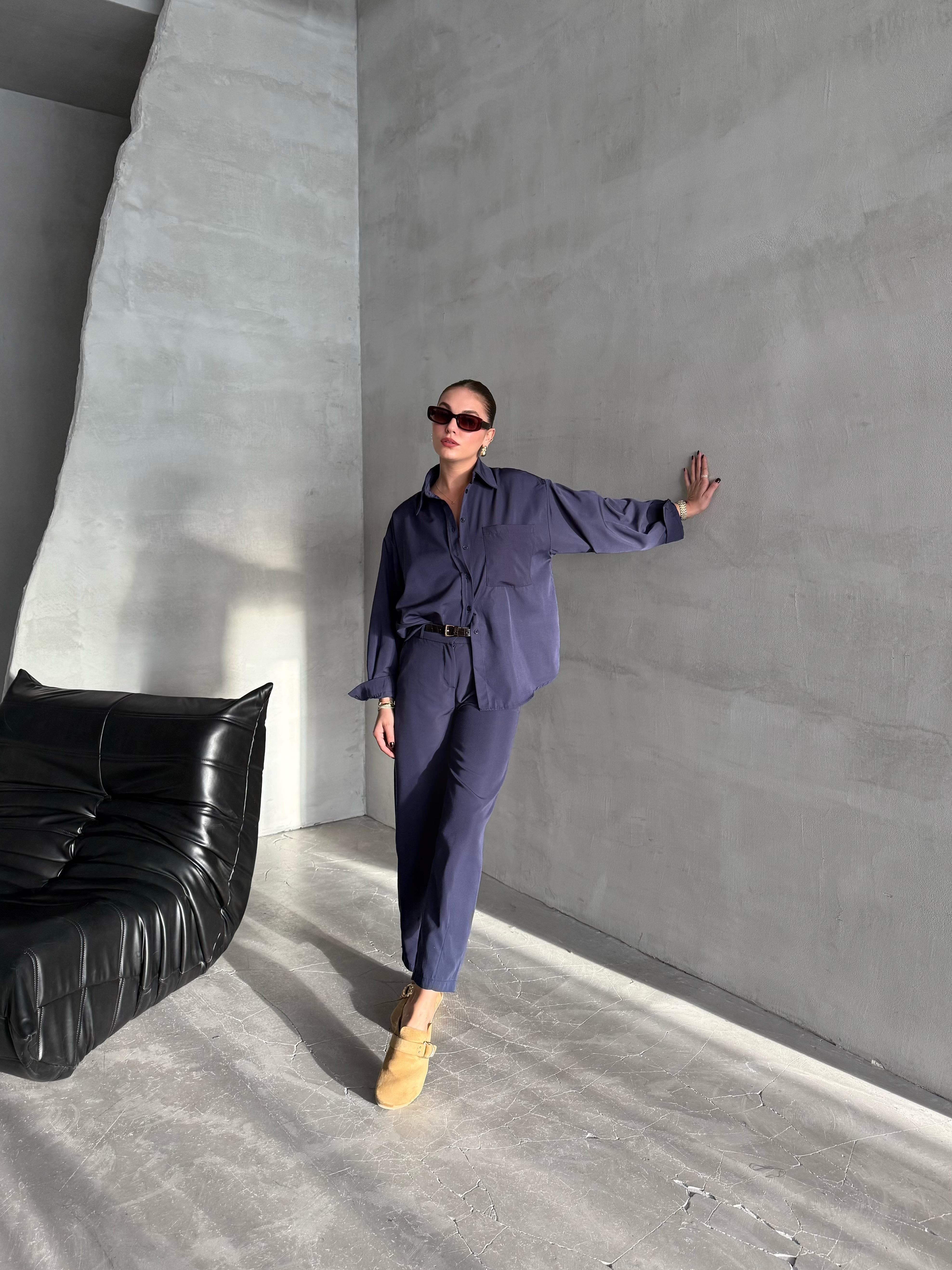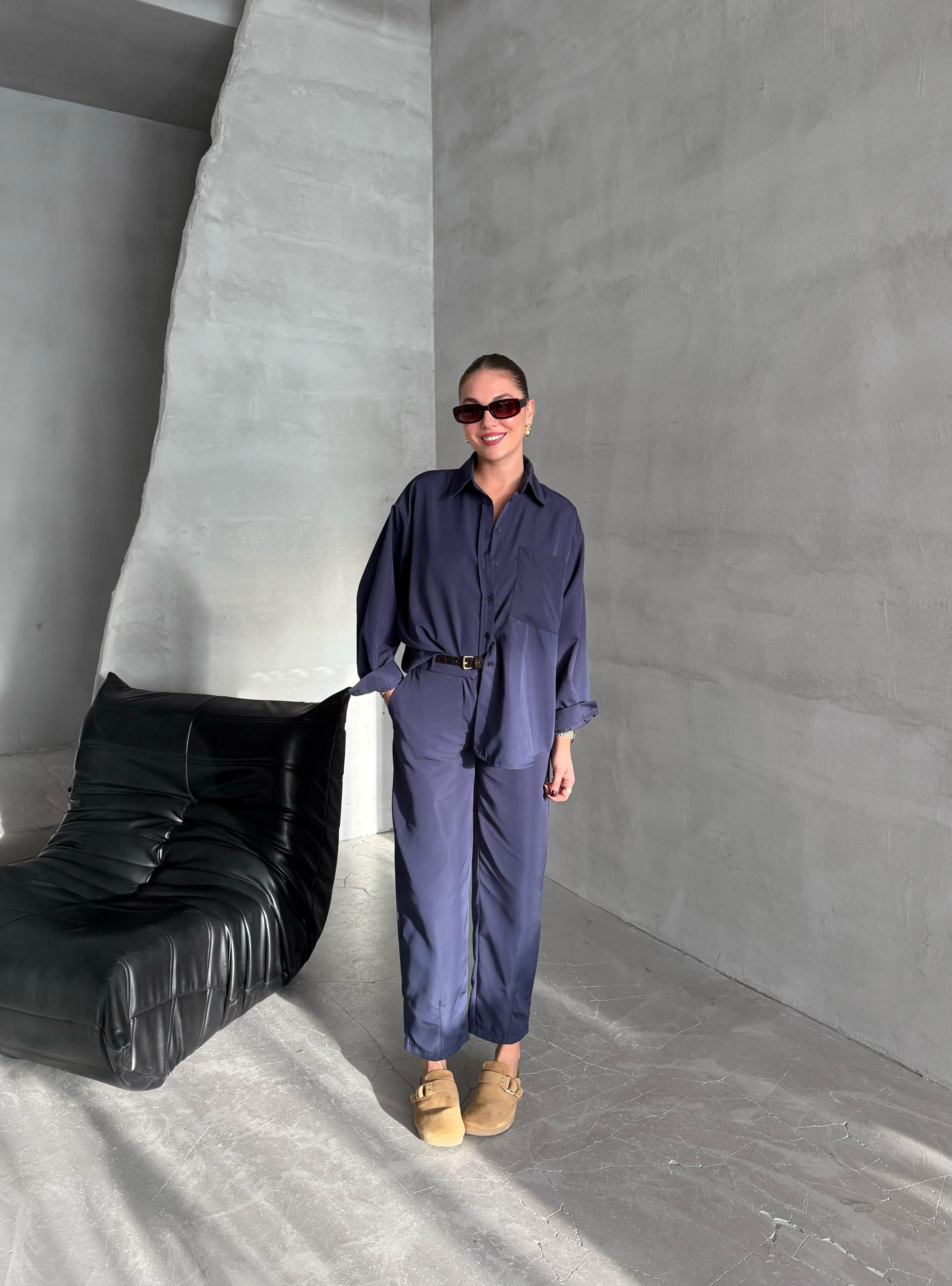 - Lacivert Merlin Kemerli Gömlek Pantolon Takım