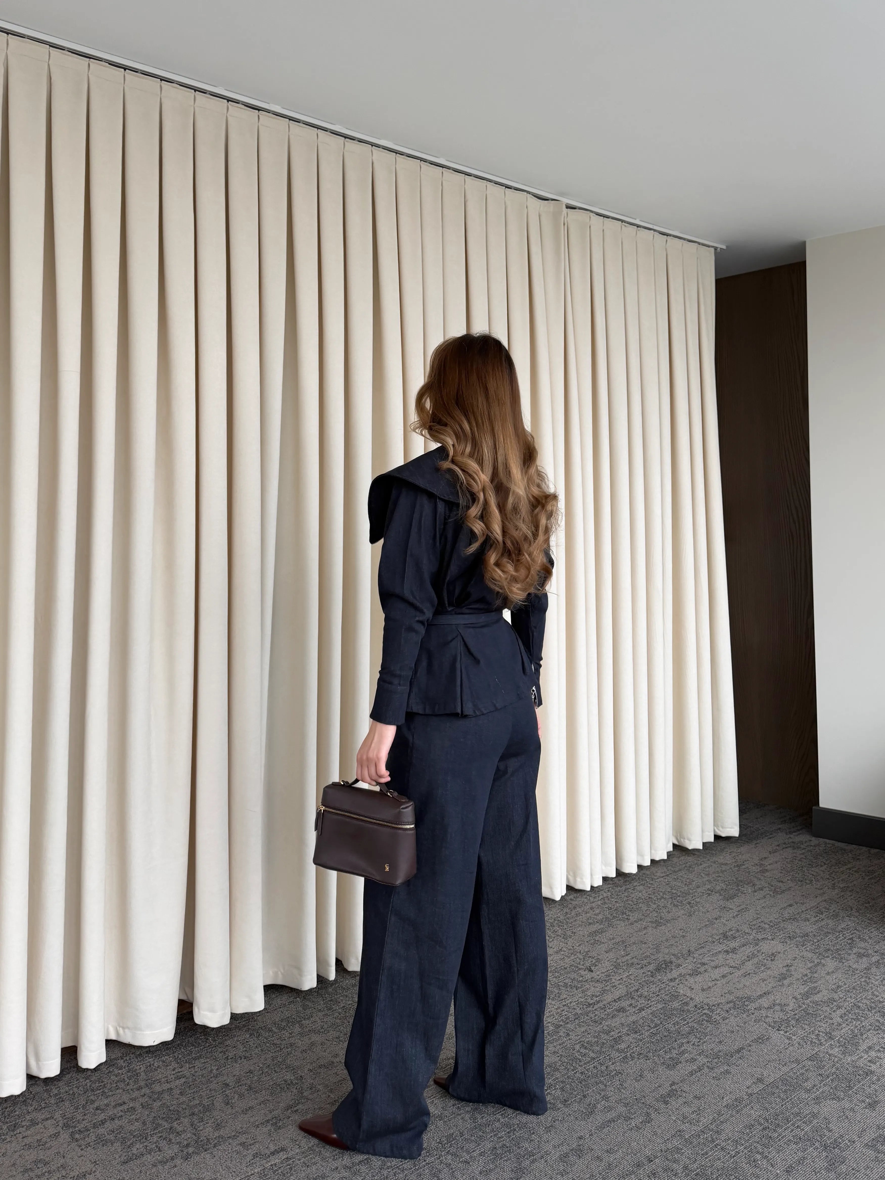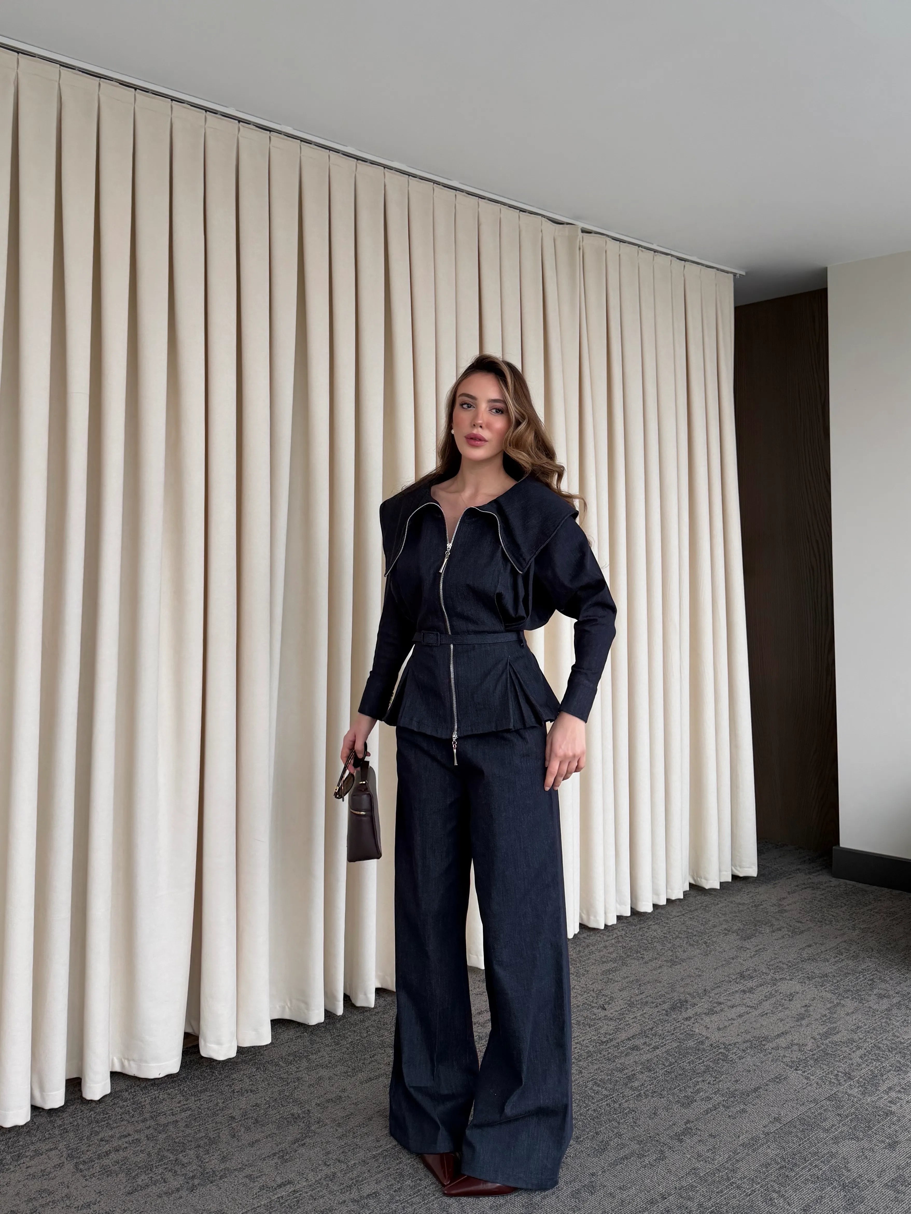 Lacivert Yakası Fiyonk Detaylı Gömlek - 507