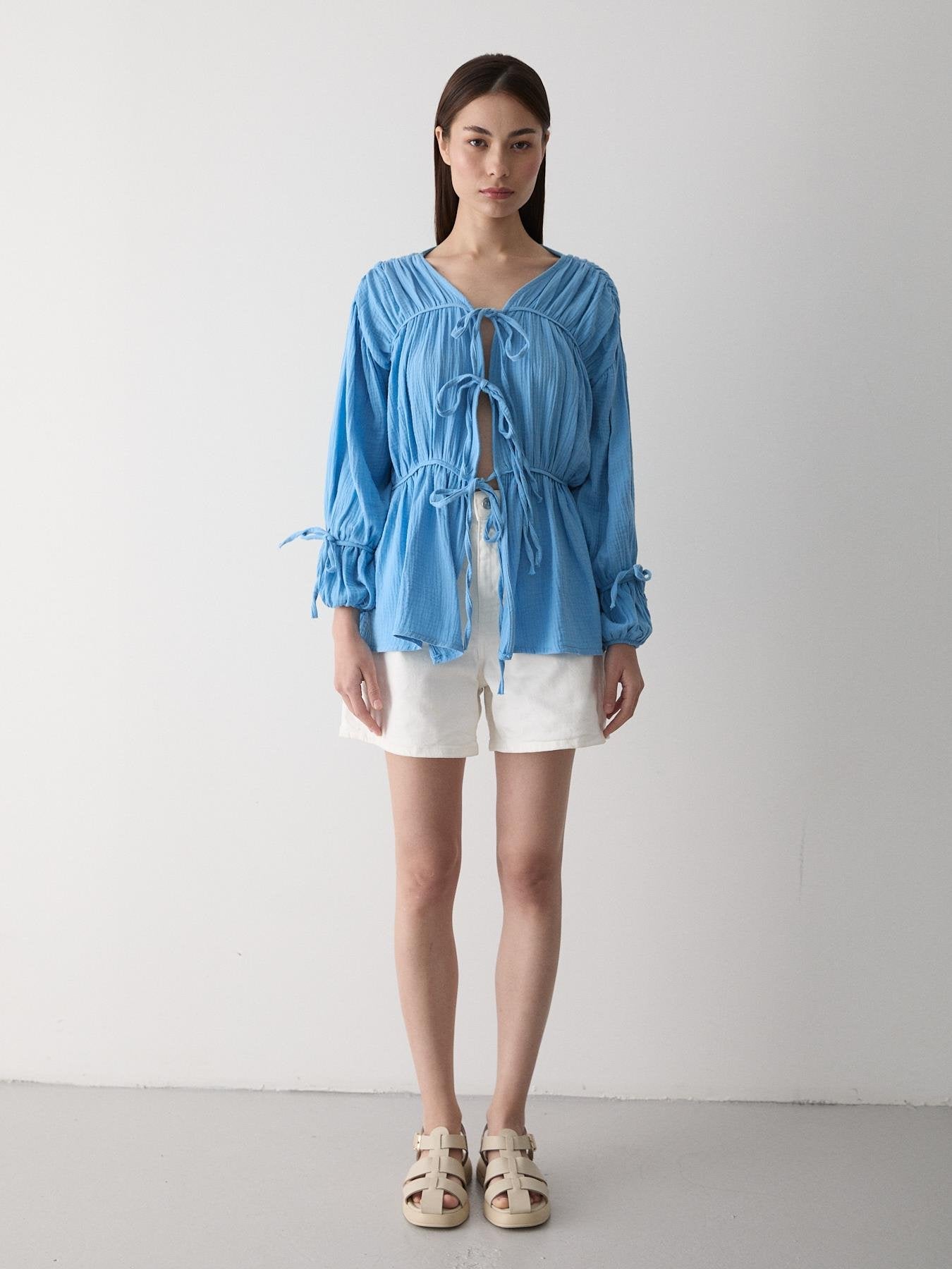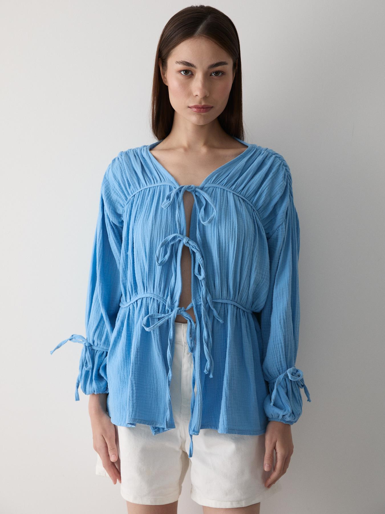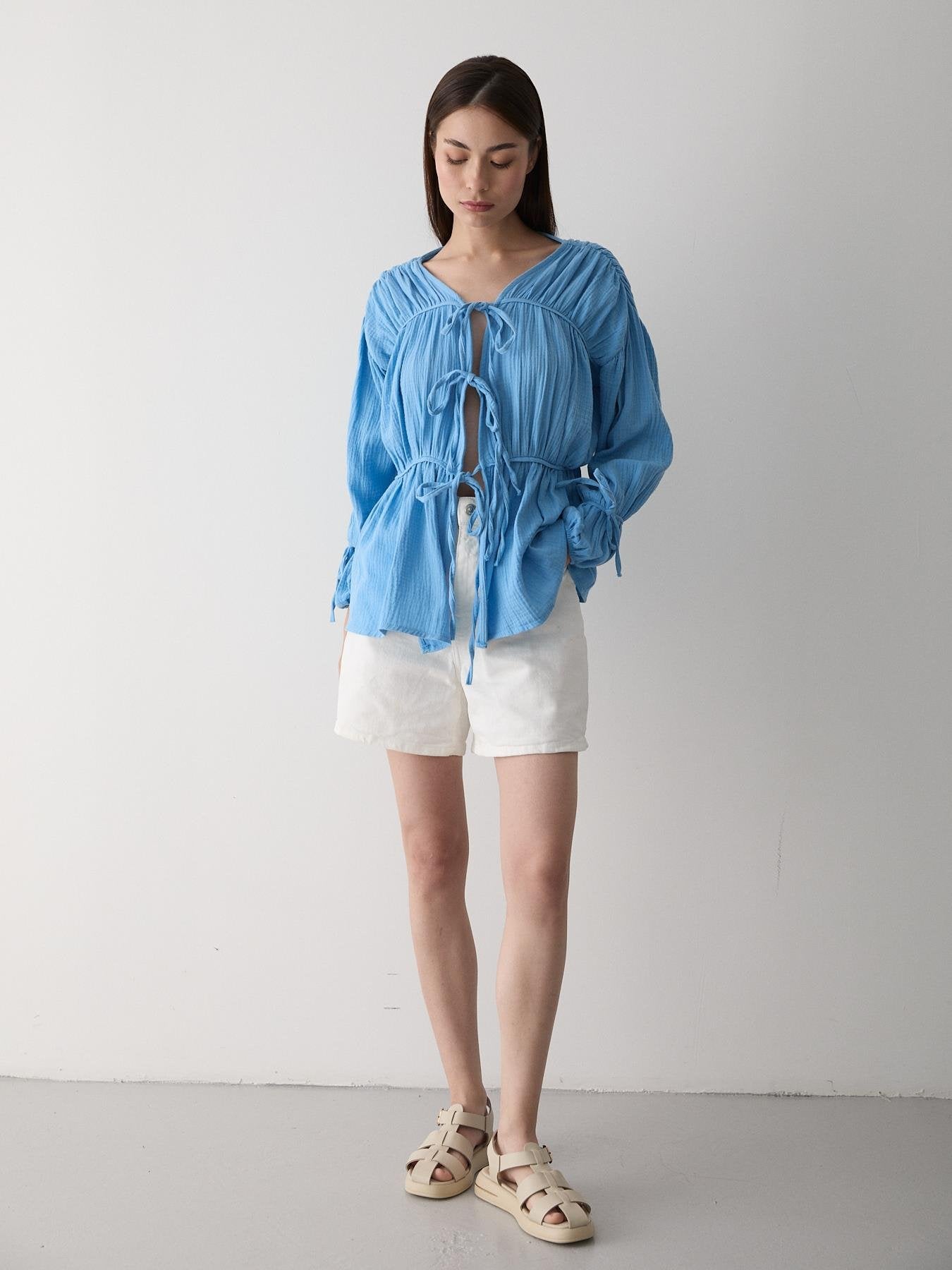- Mavi %100 Pamuk Kolu Lastikli Müslin Gömlek