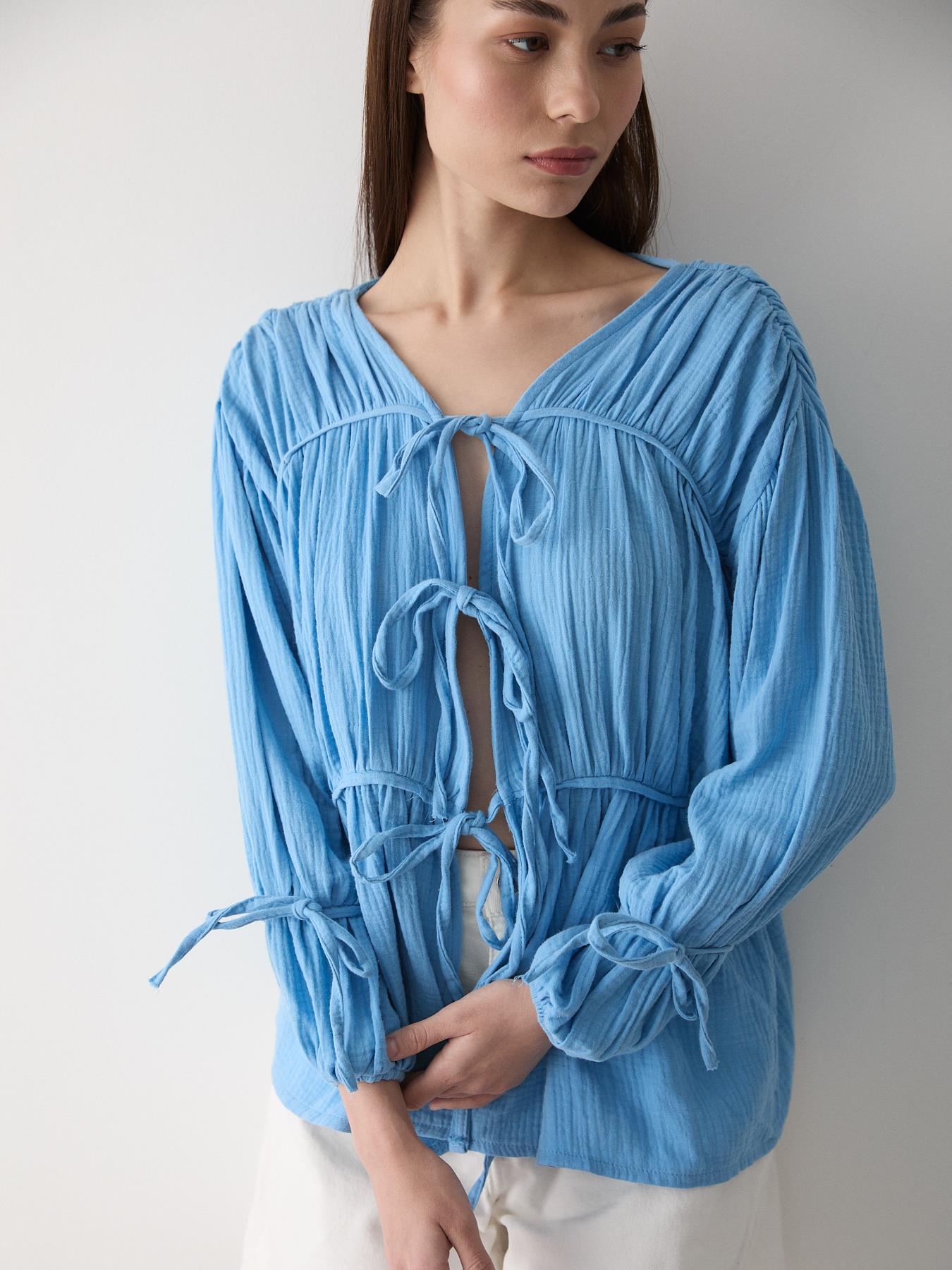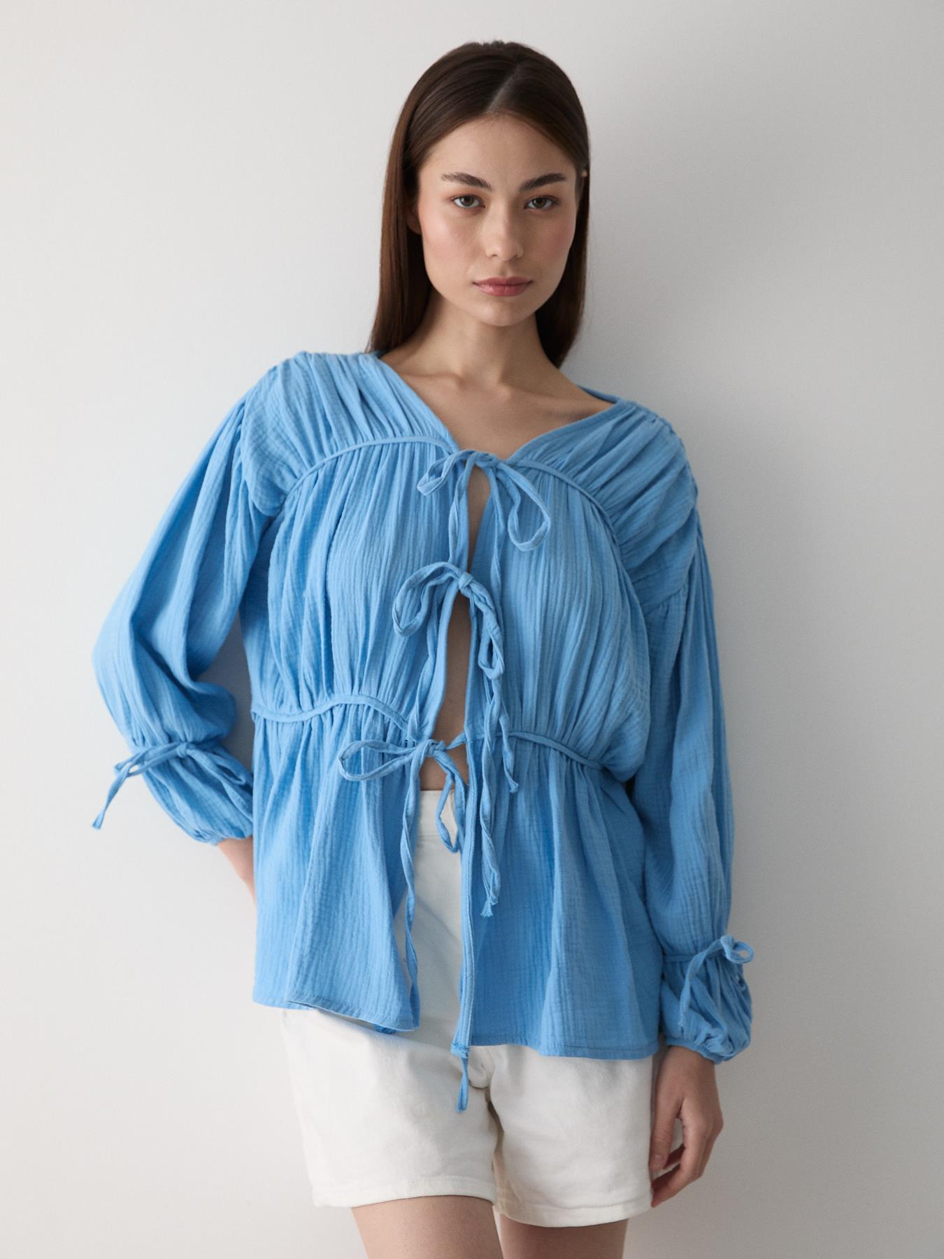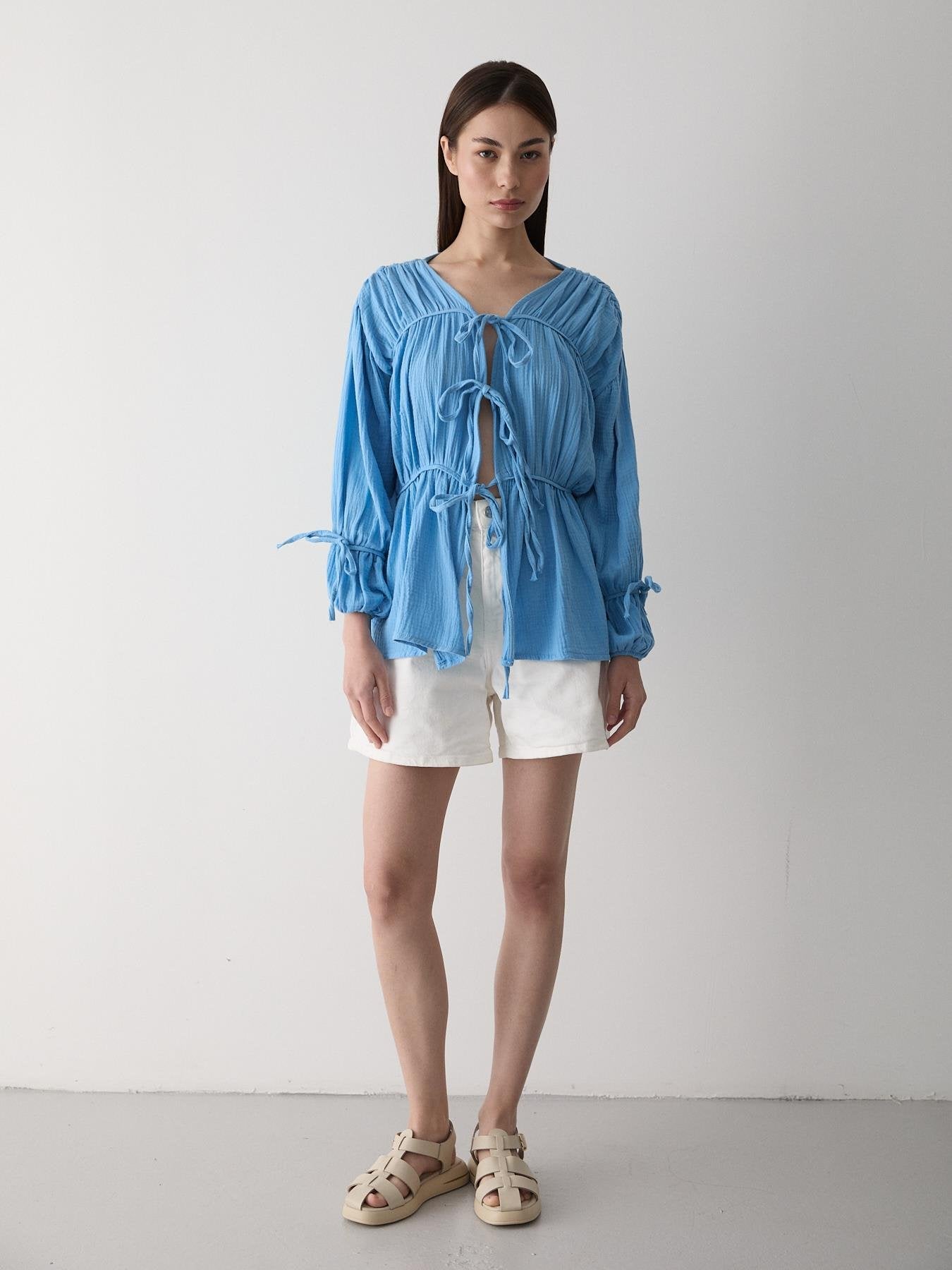 - Mavi %100 Pamuk Kolu Lastikli Müslin Gömlek