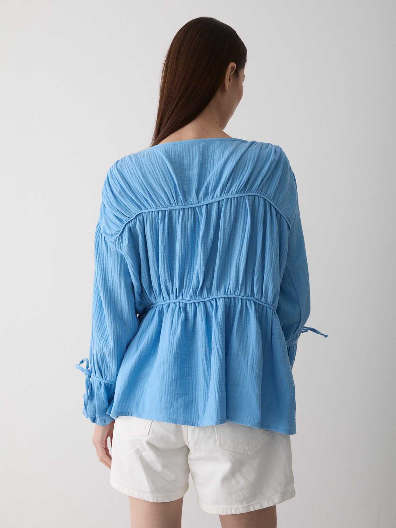 Mavi %100 Pamuk Kolu Lastikli Müslin Gömlek