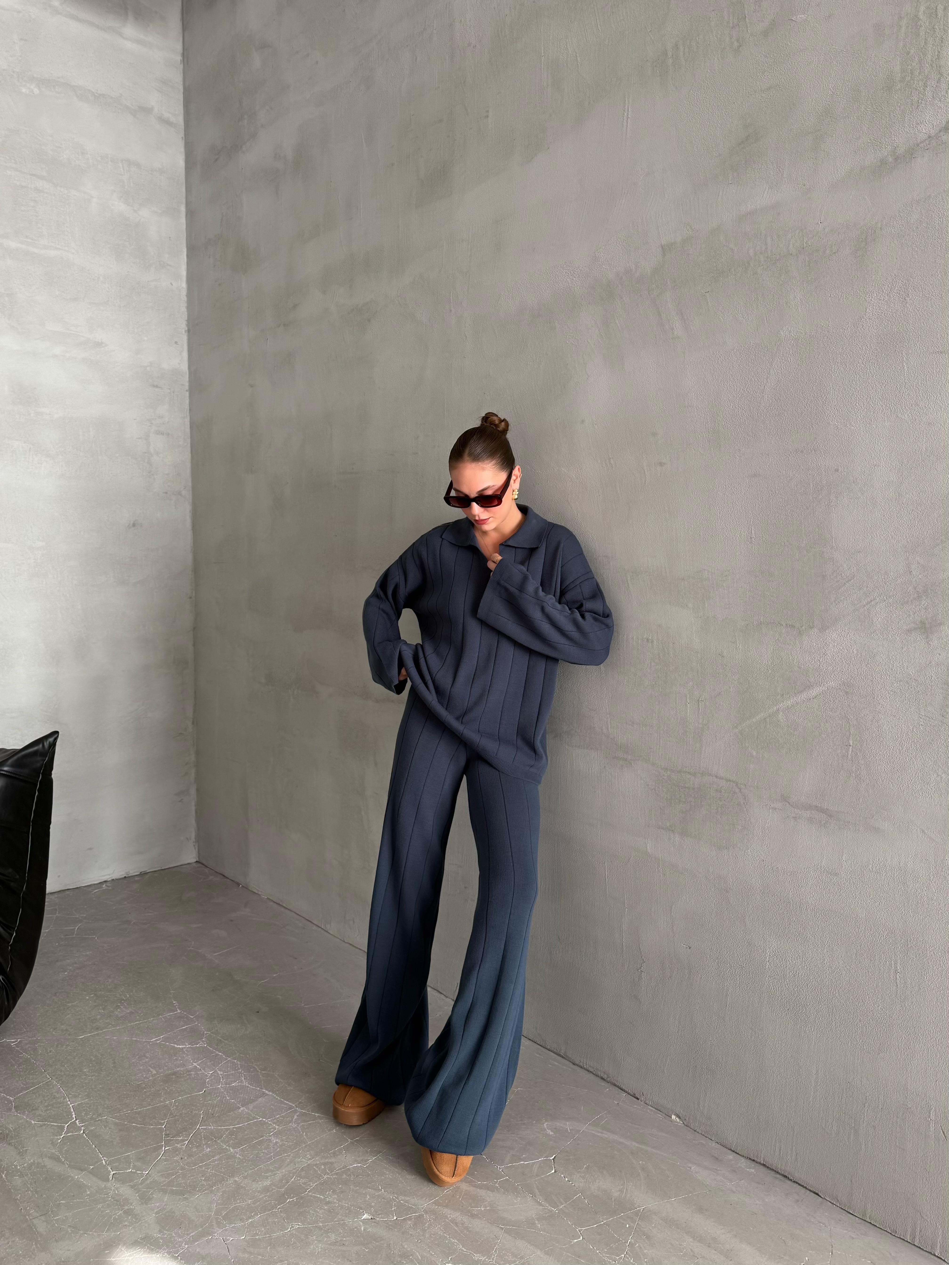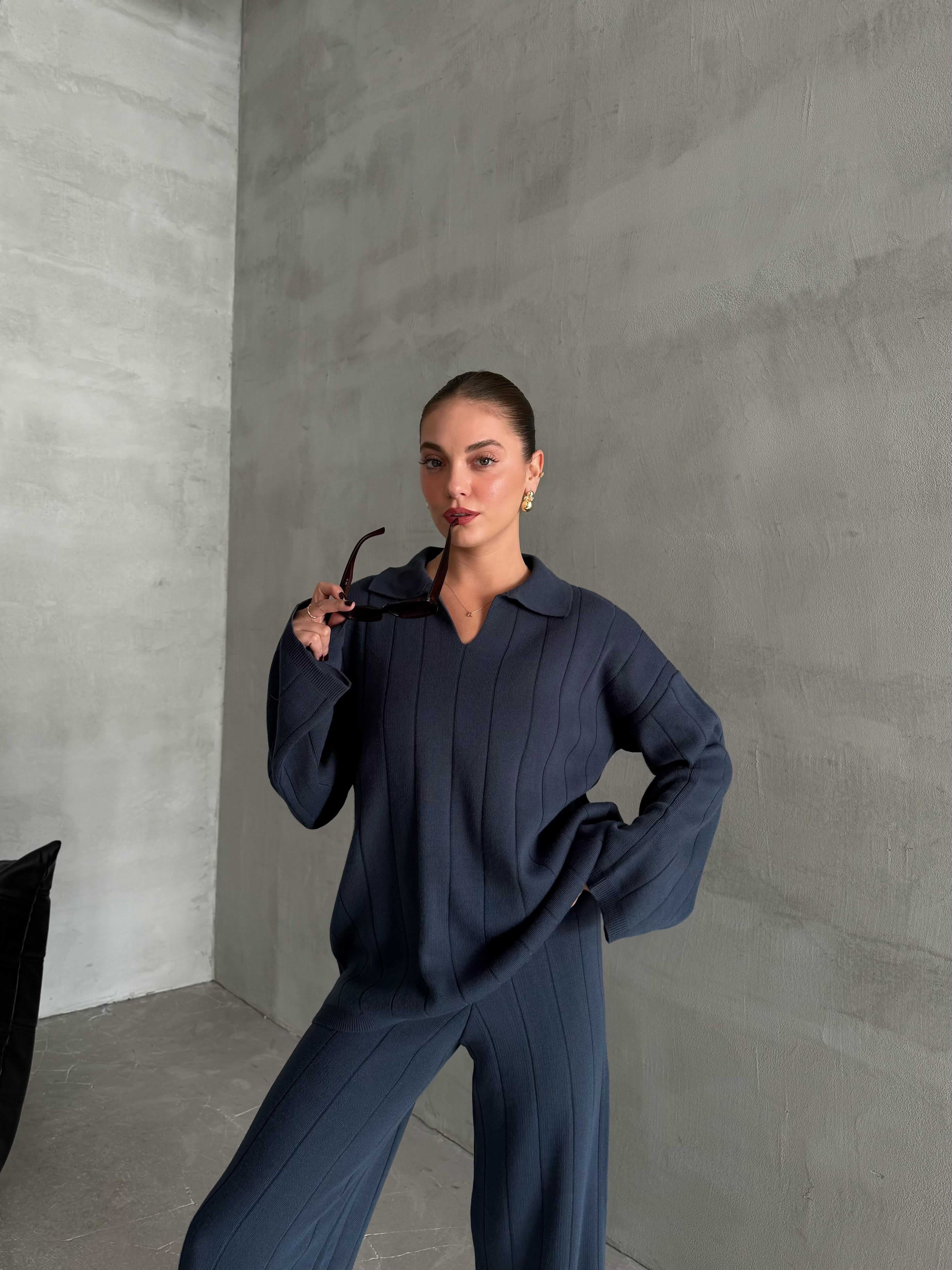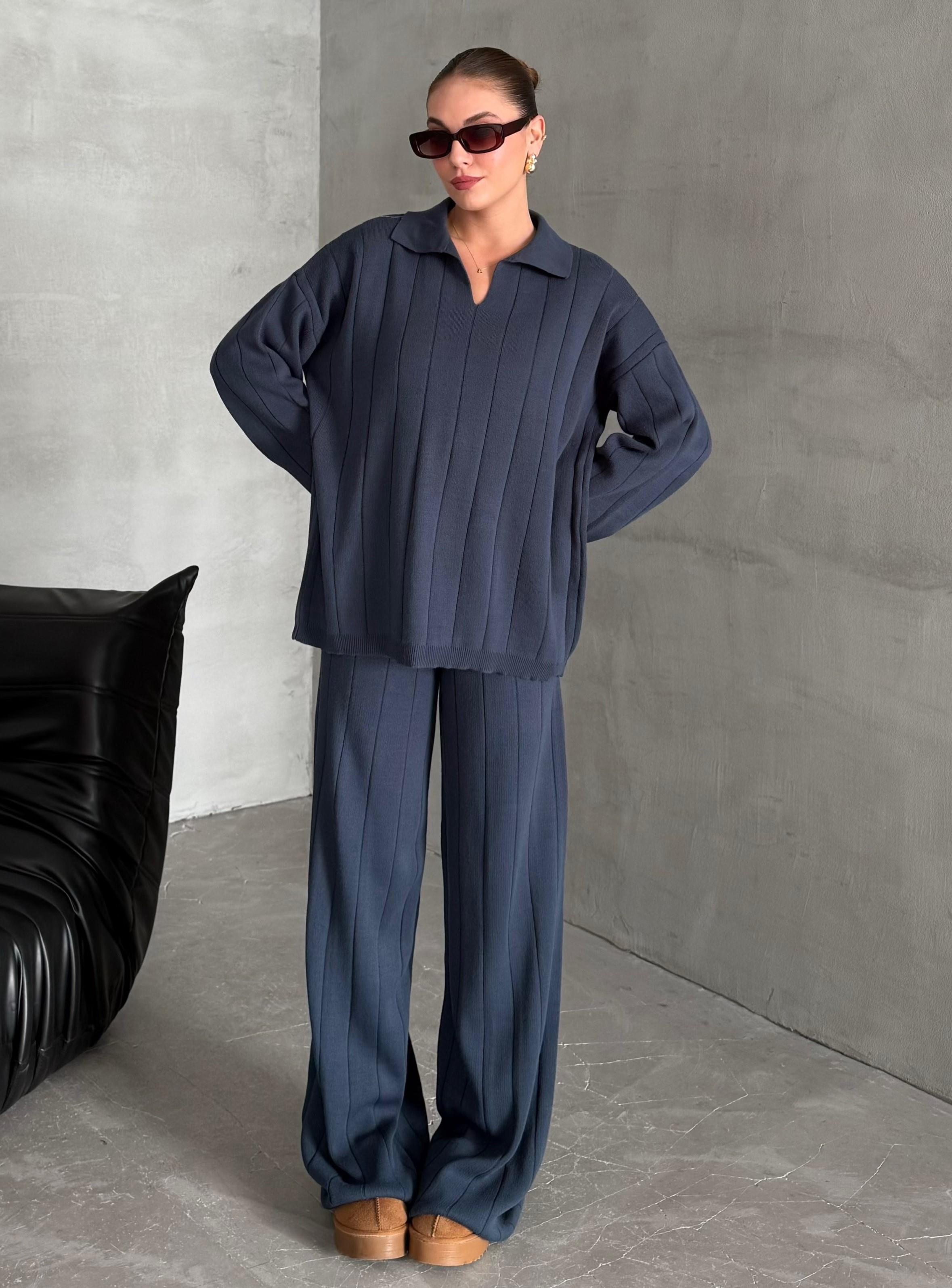 - Mavi Freya Polo Yaka Fitilli Triko Takım