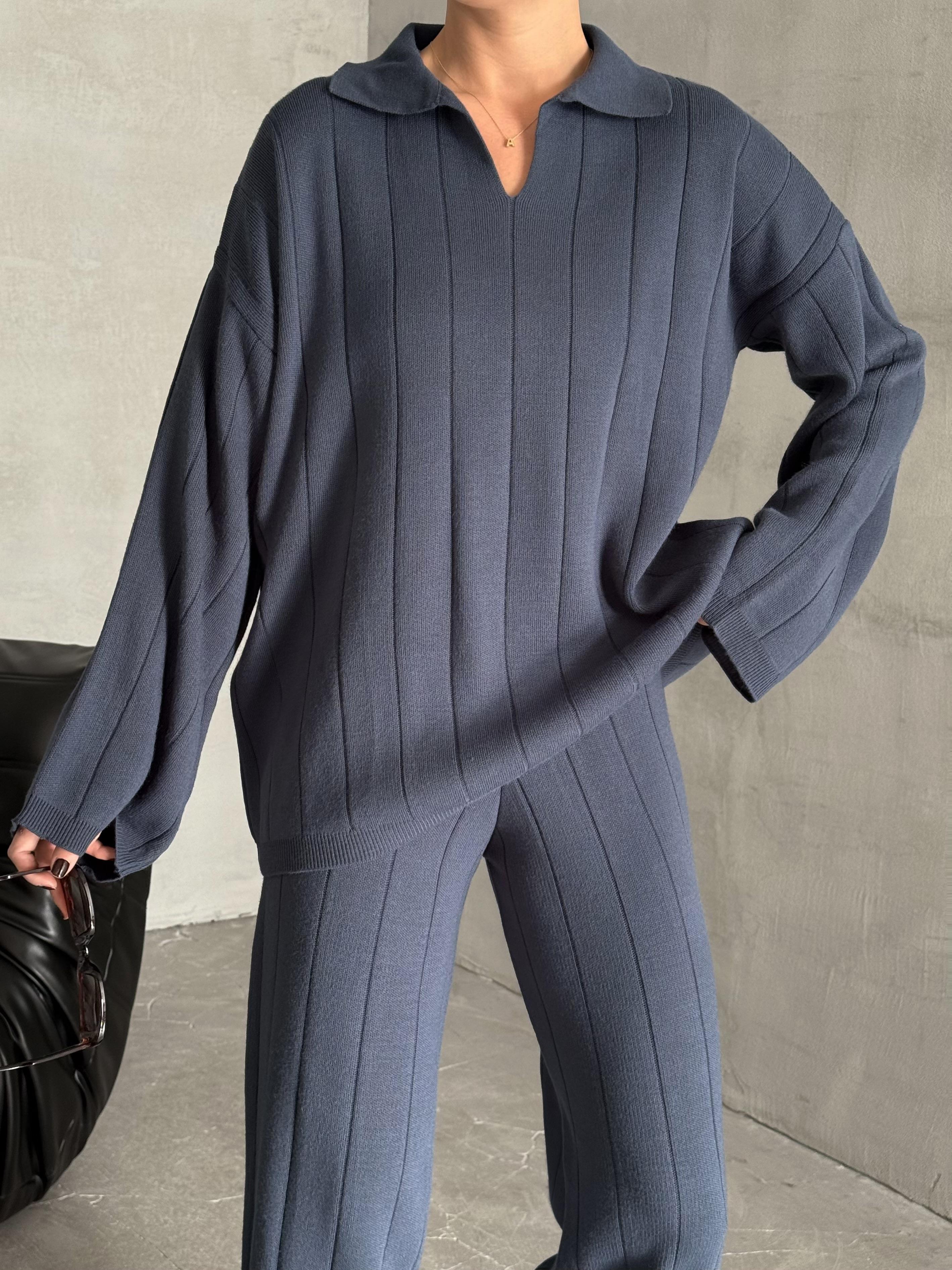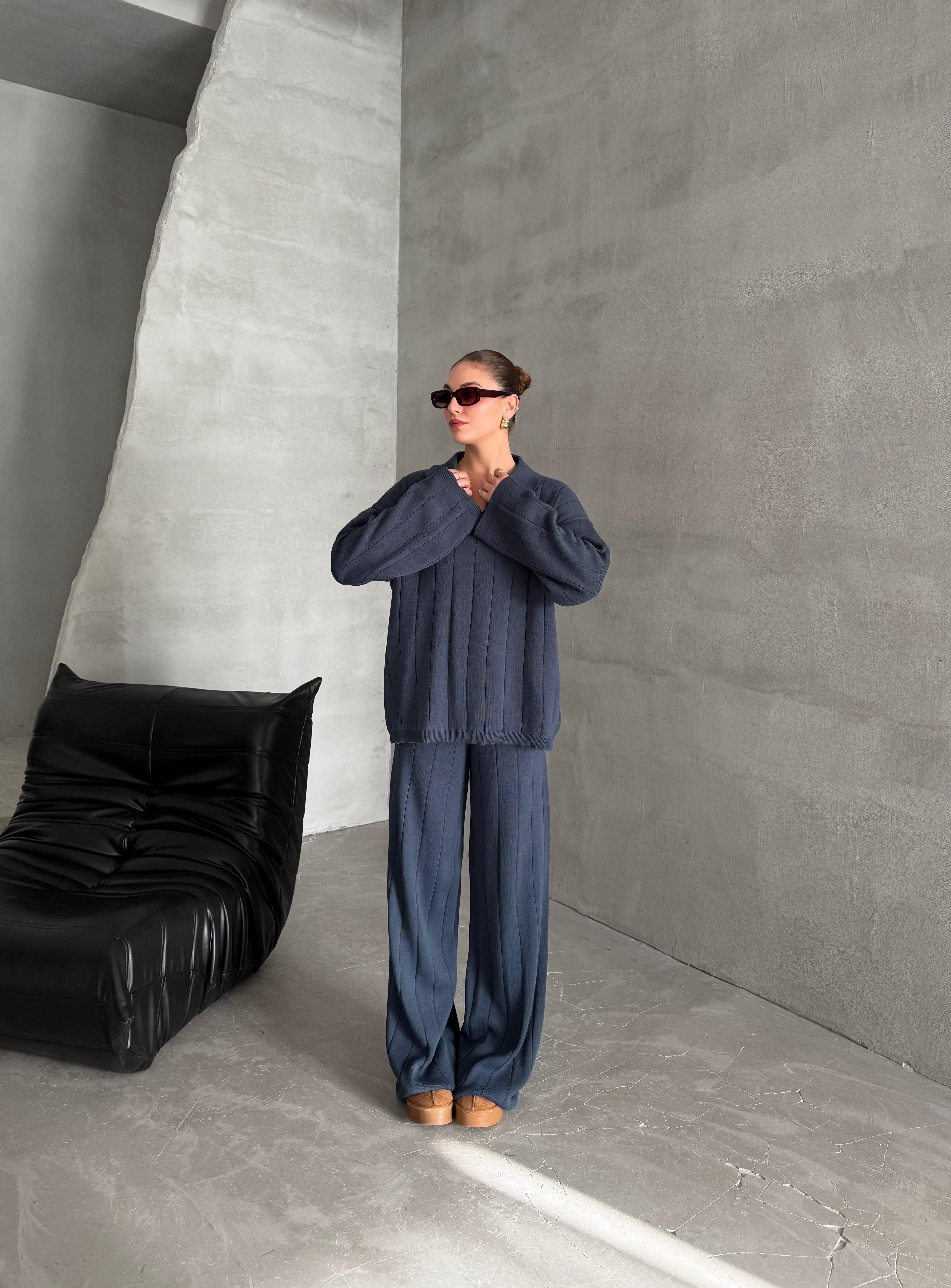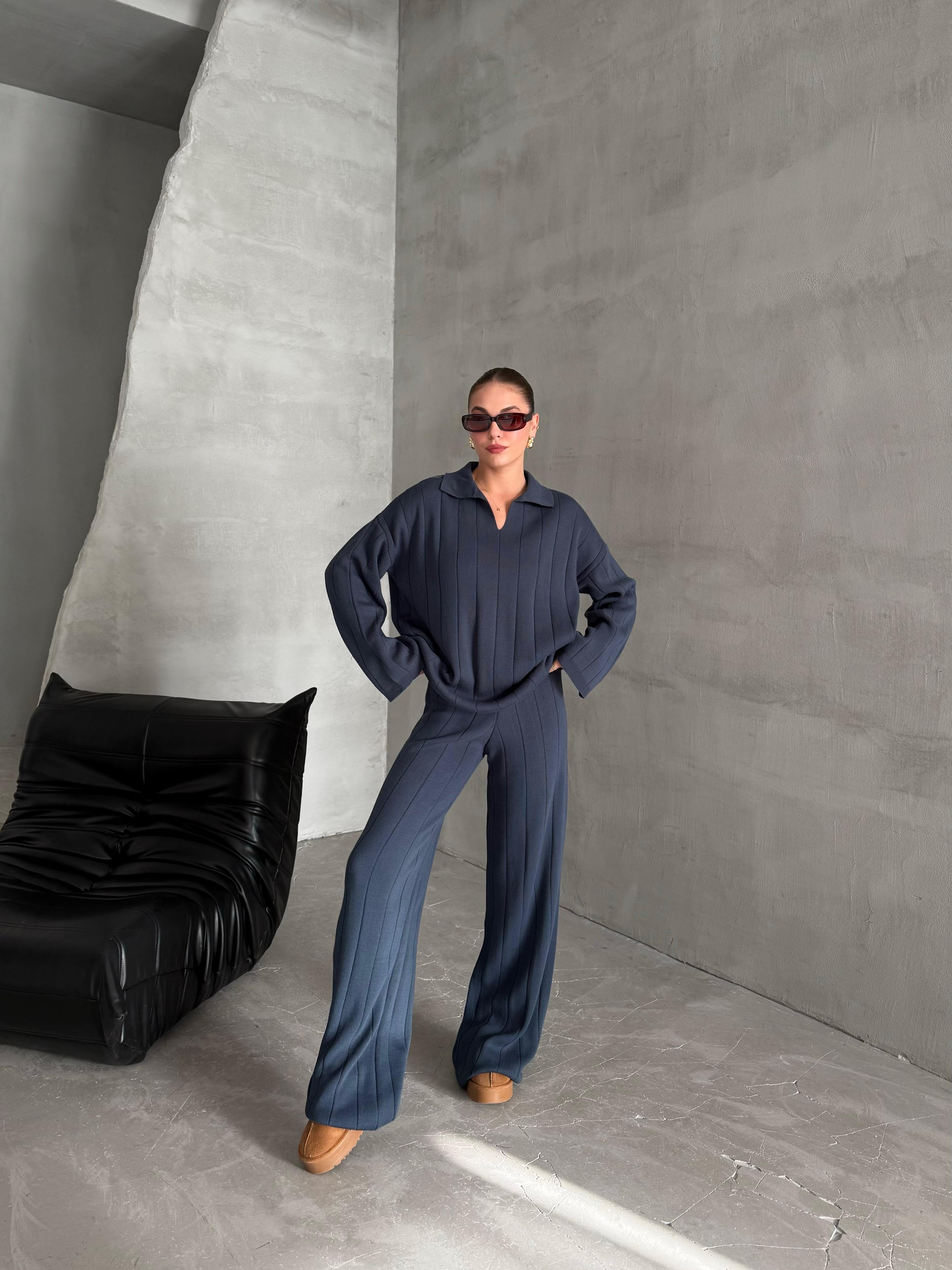 - Mavi Freya Polo Yaka Fitilli Triko Takım