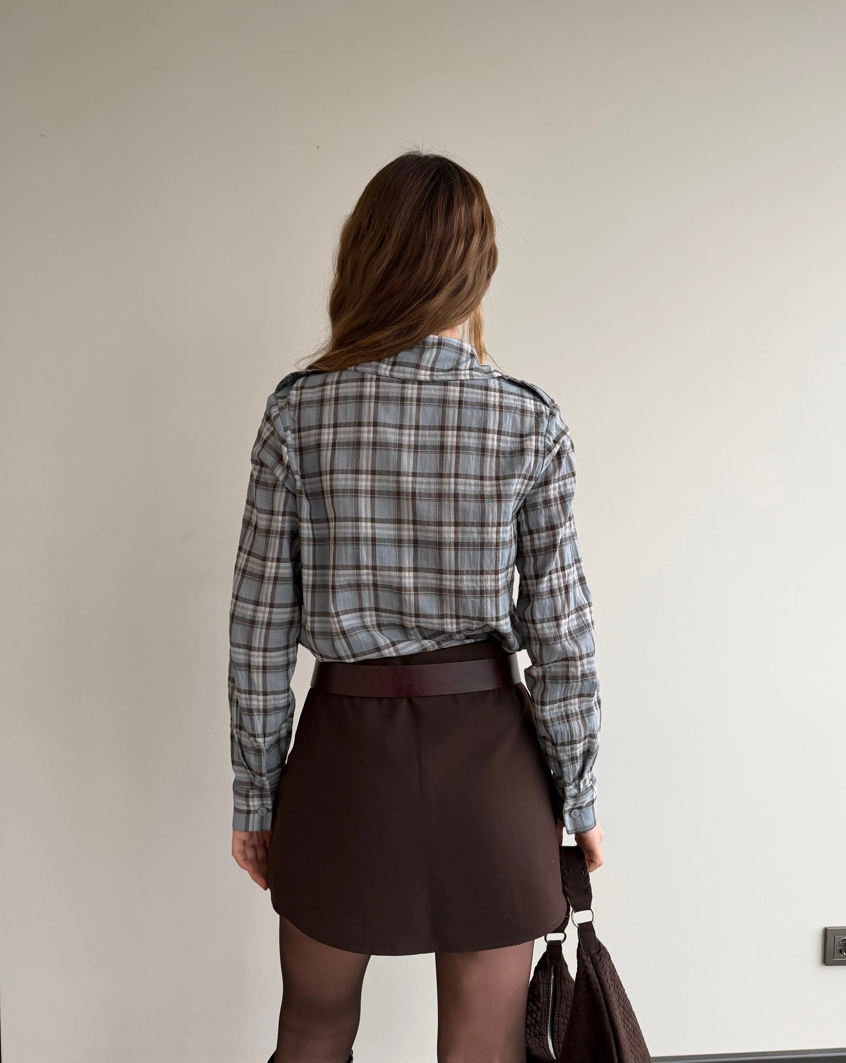 - Mavi Kahverengi Cep Kapaklı Gömlek - 508