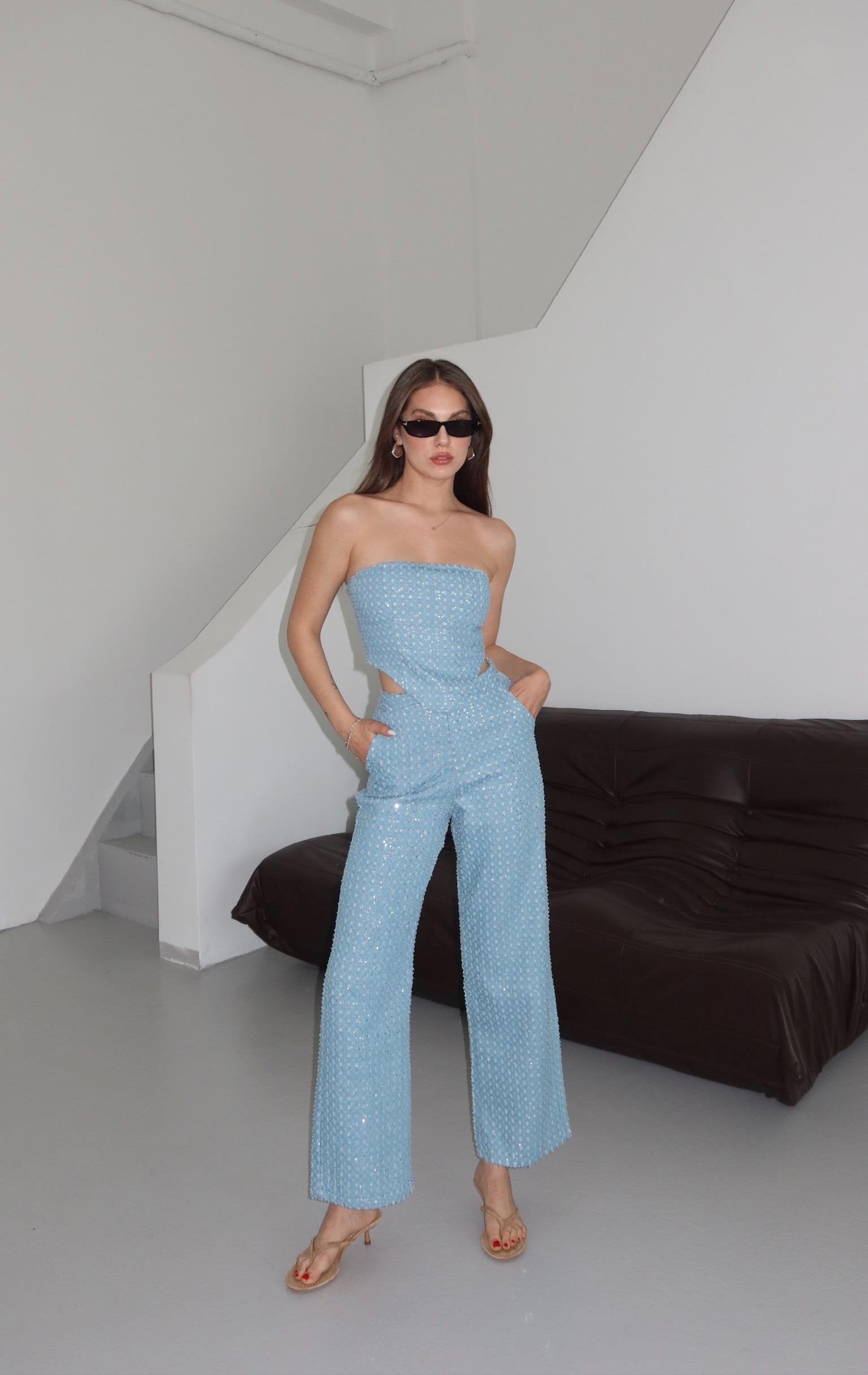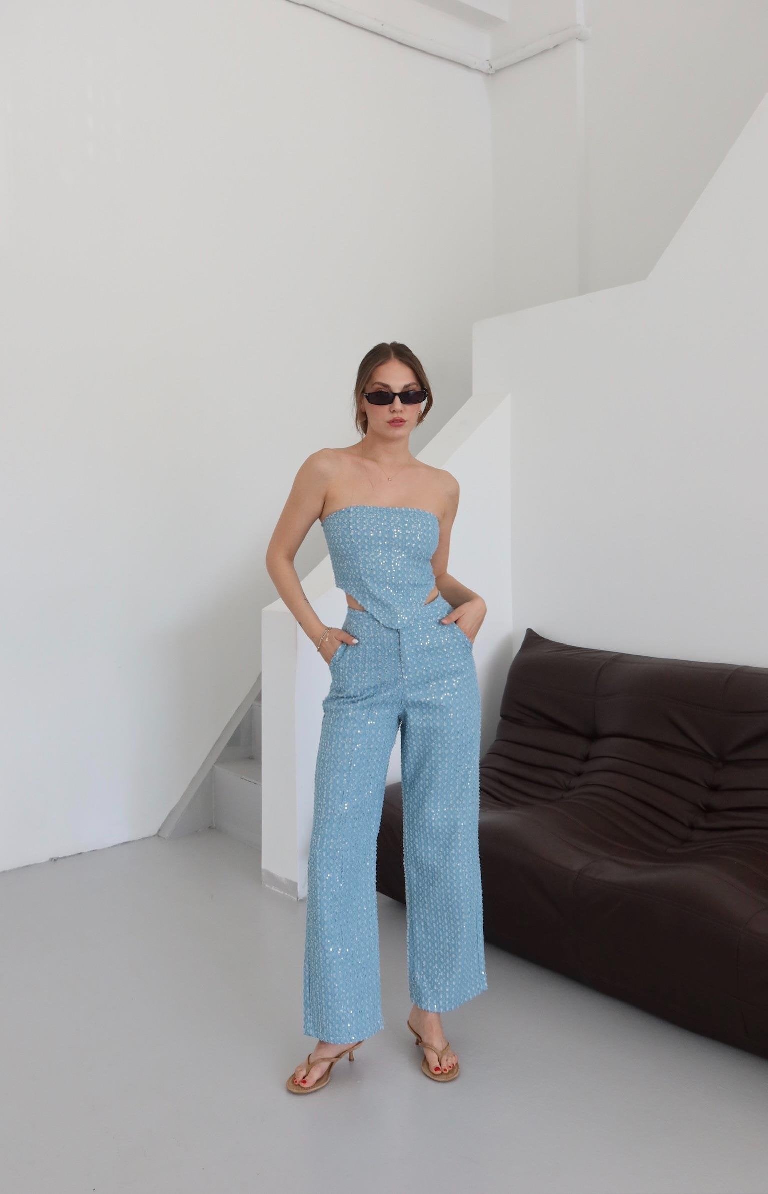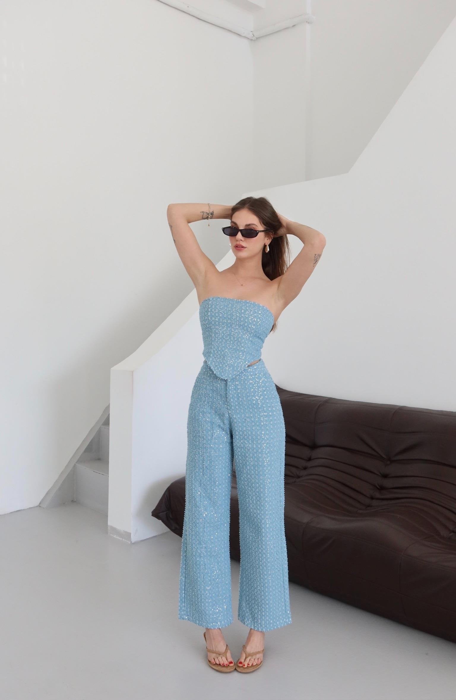 - Mavi Pullu Kot Pantolon