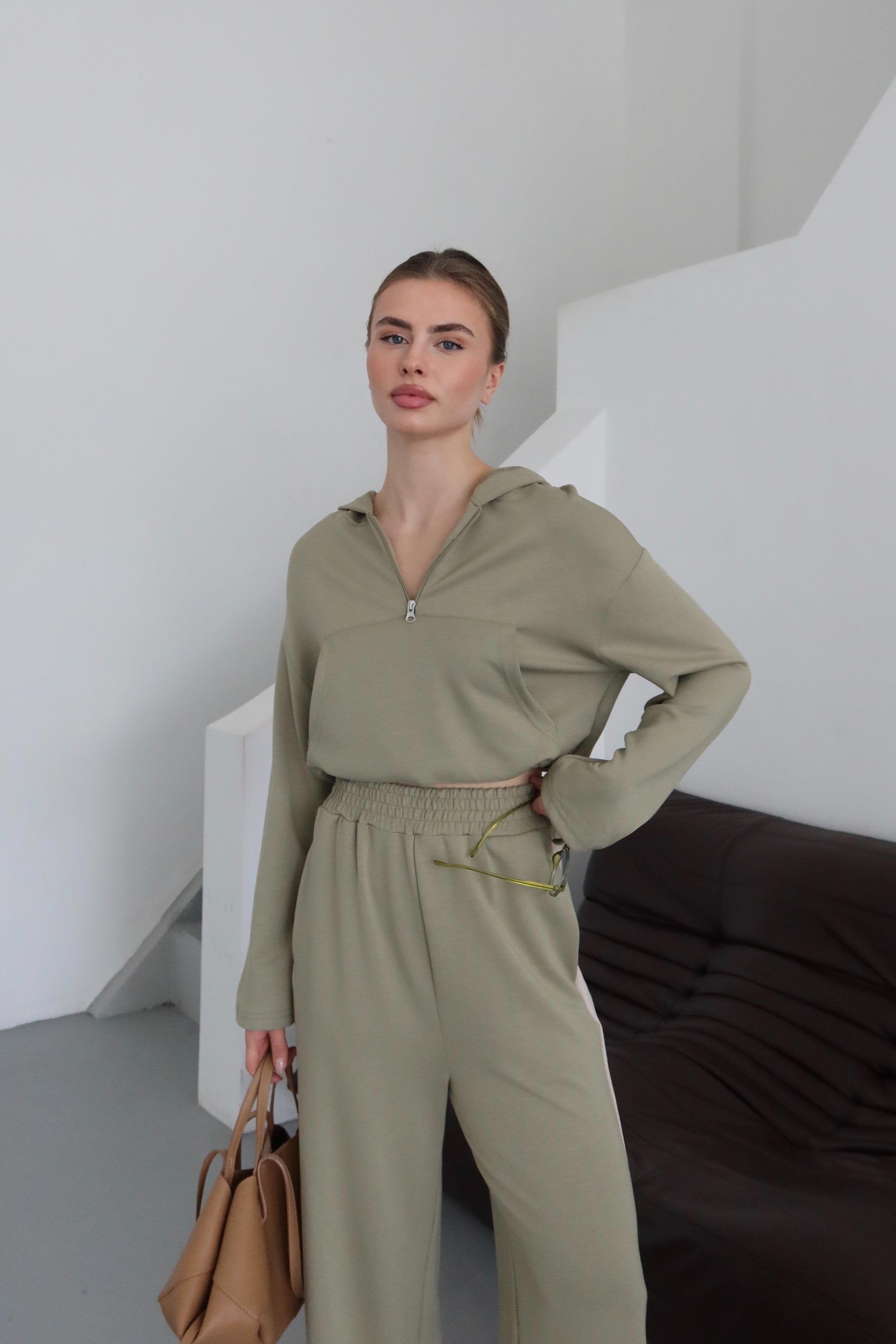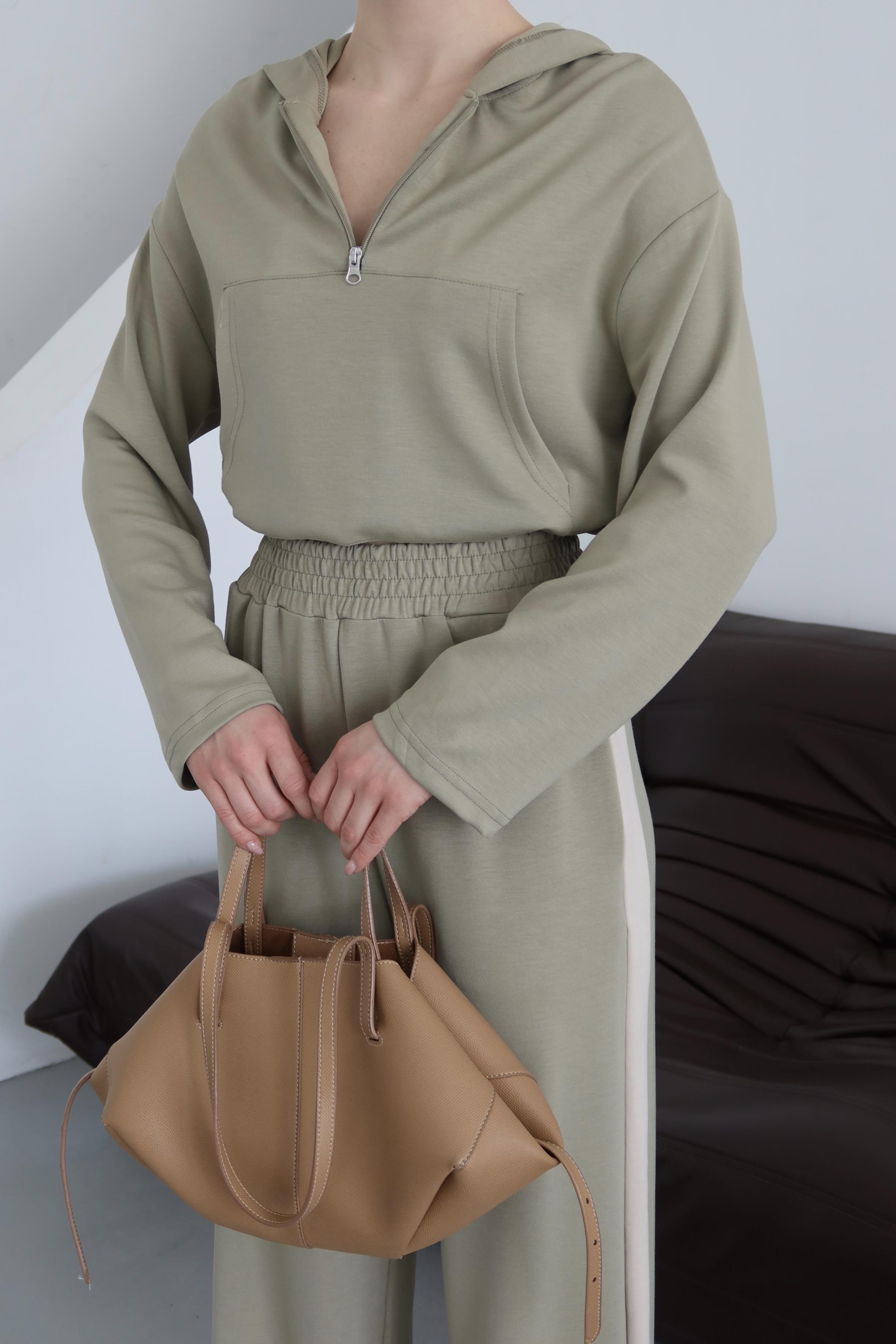 - Mint Kapüşonlu Garnili Takım