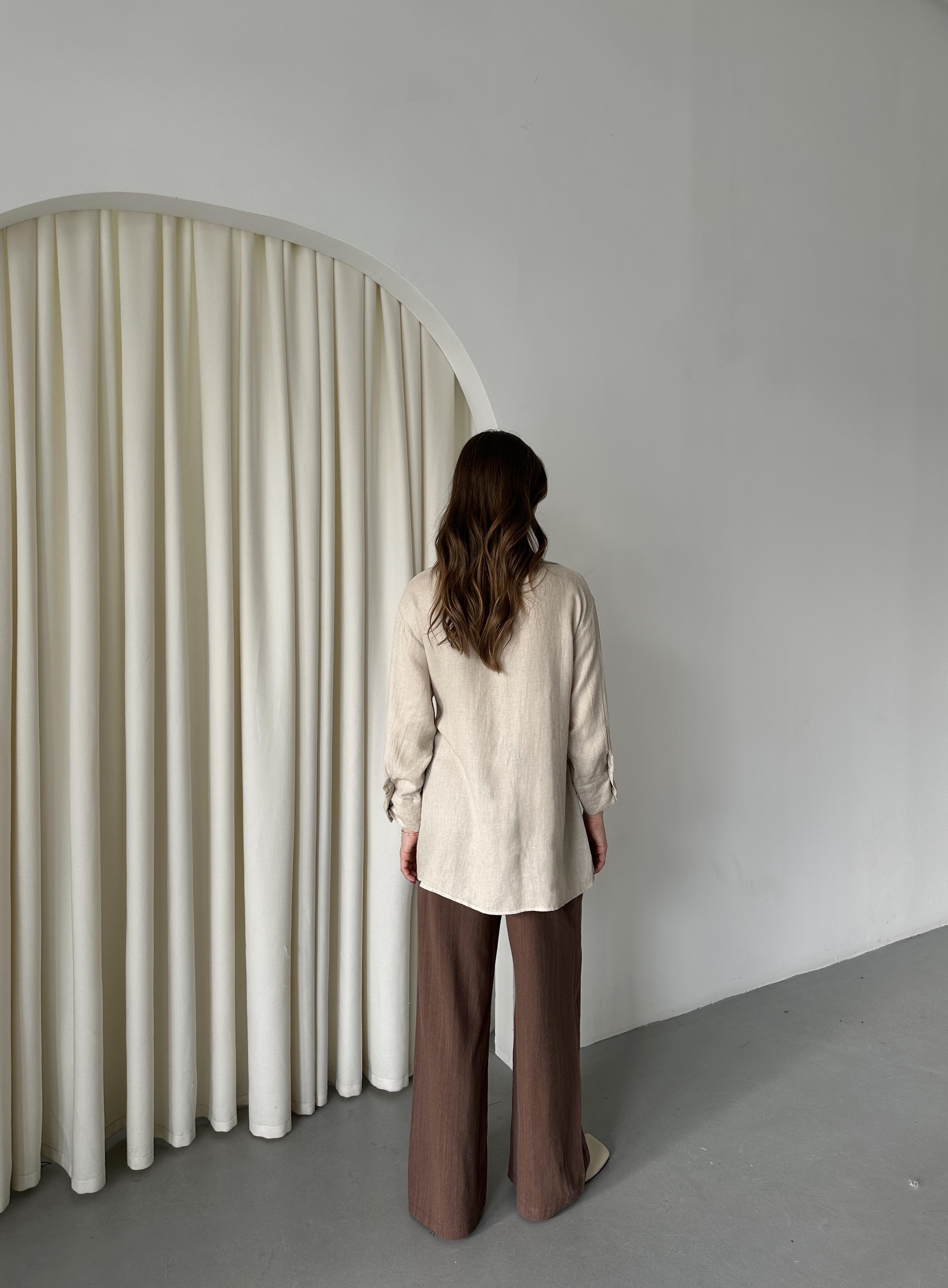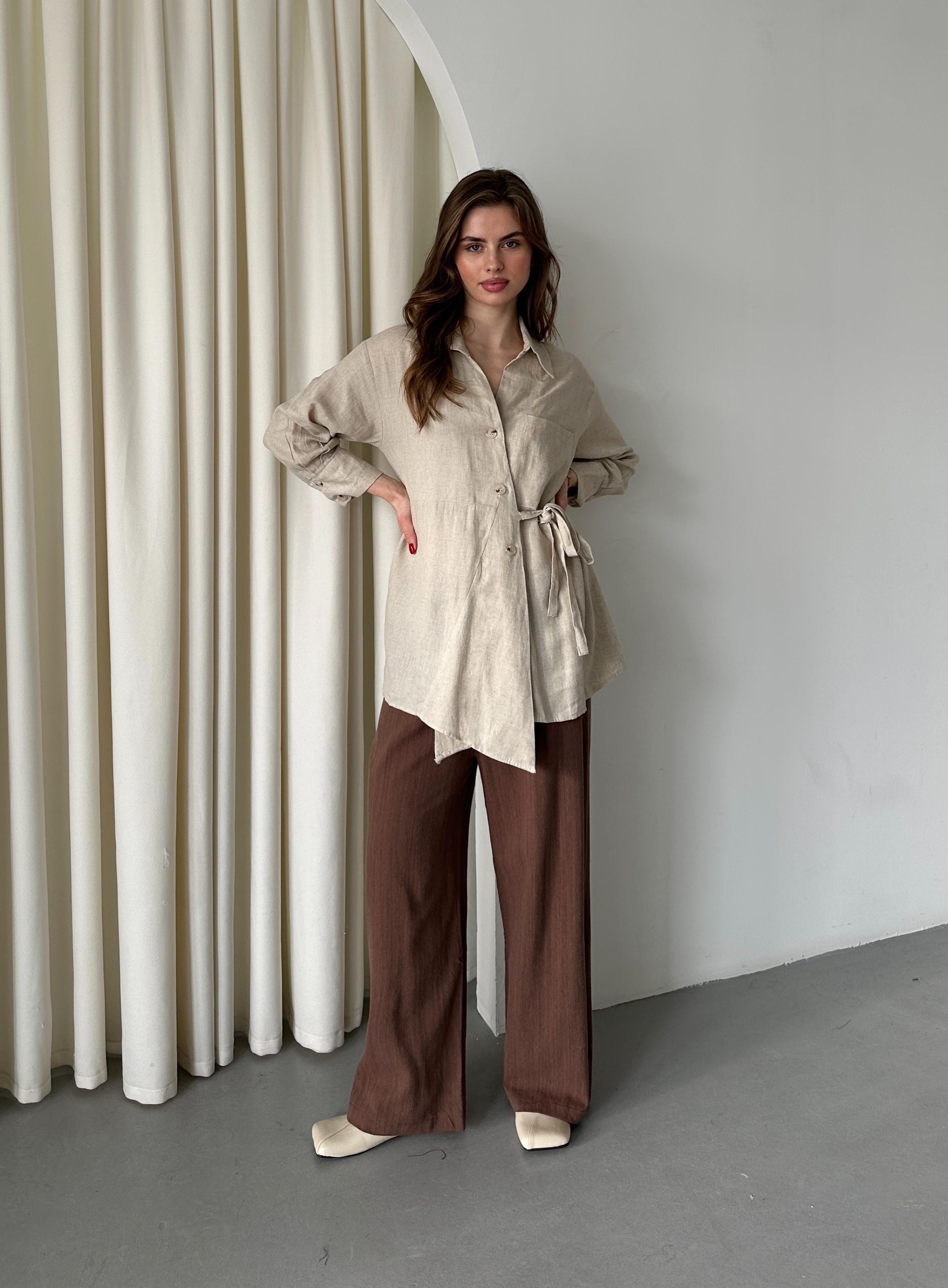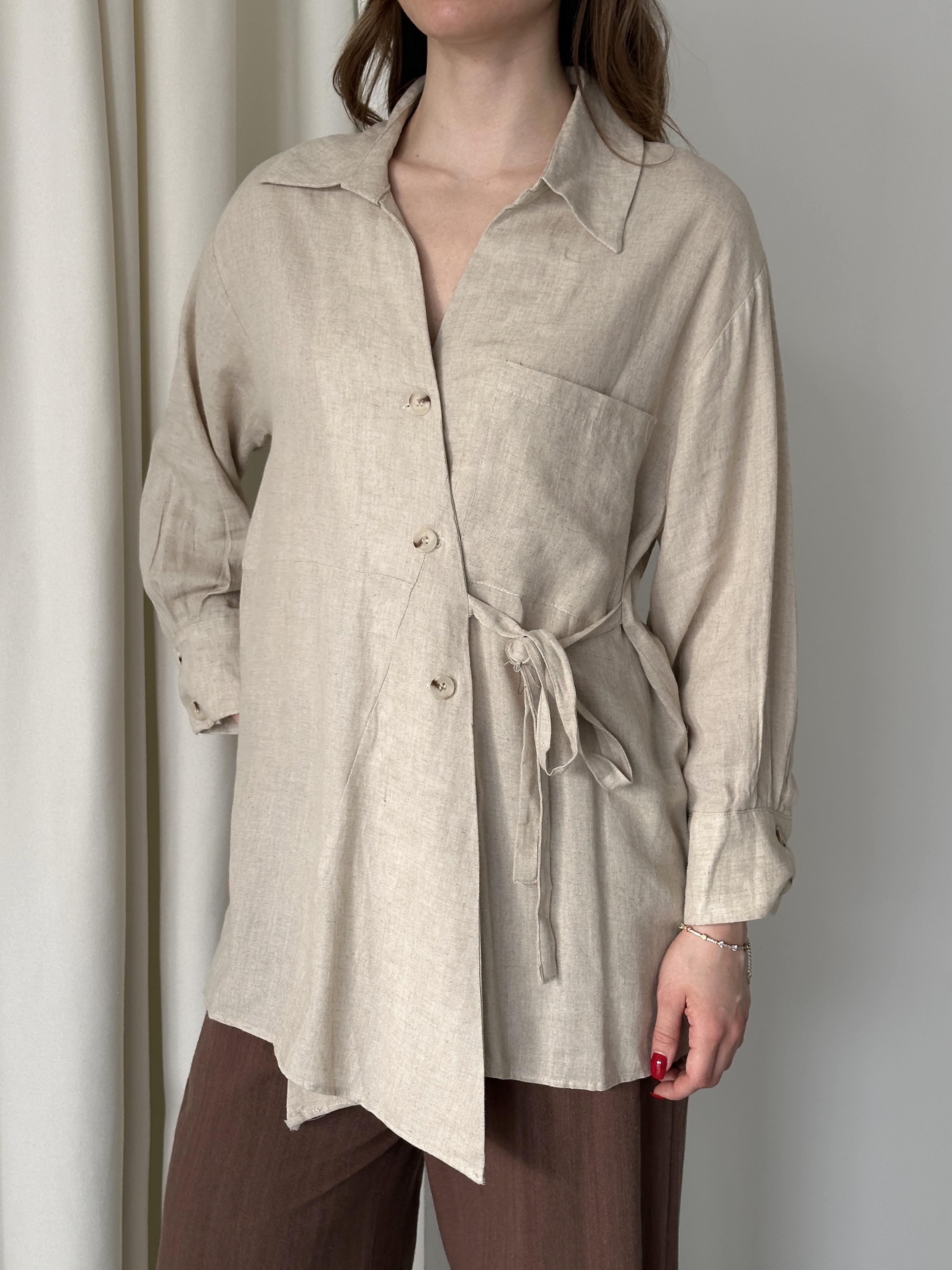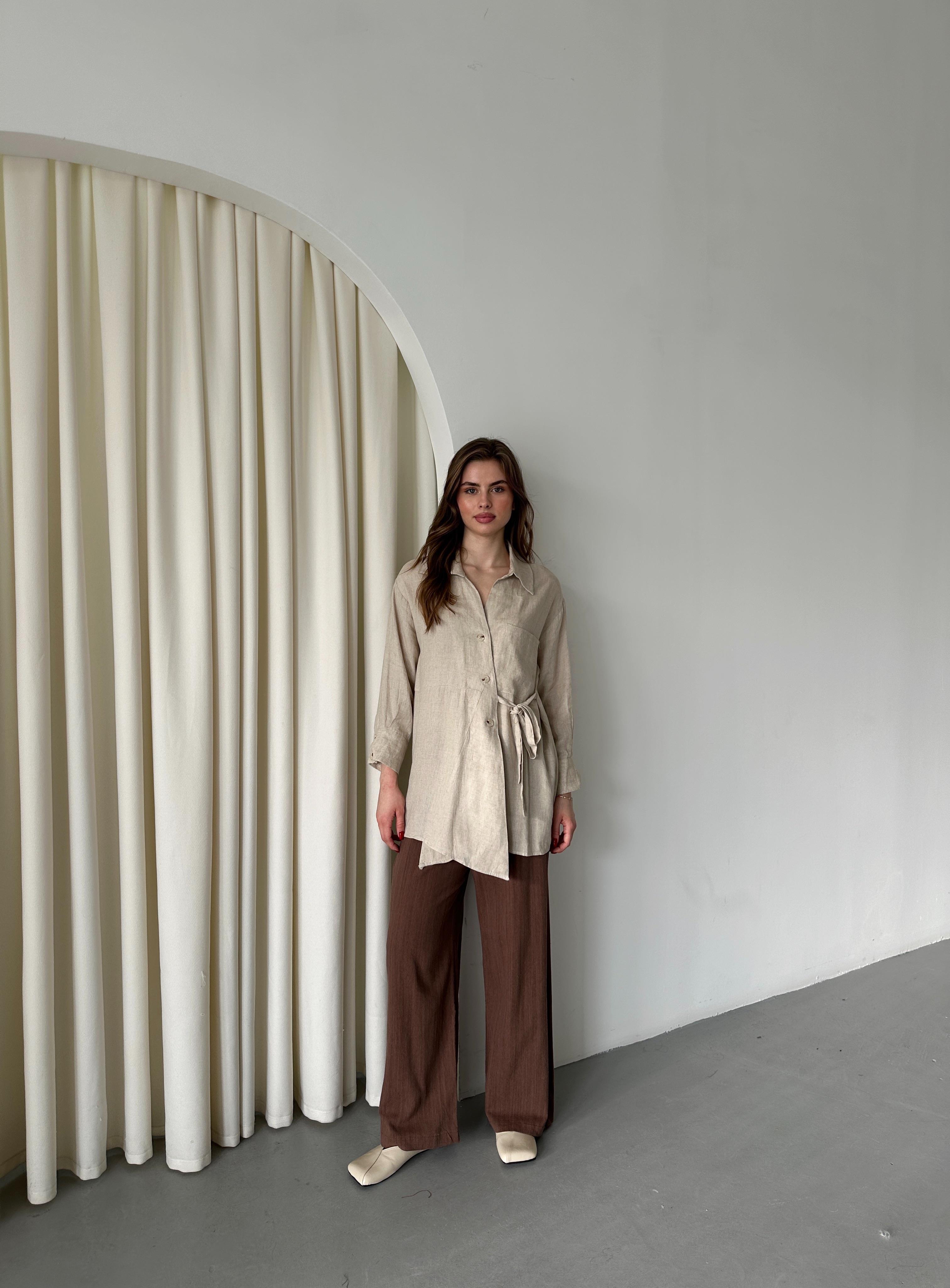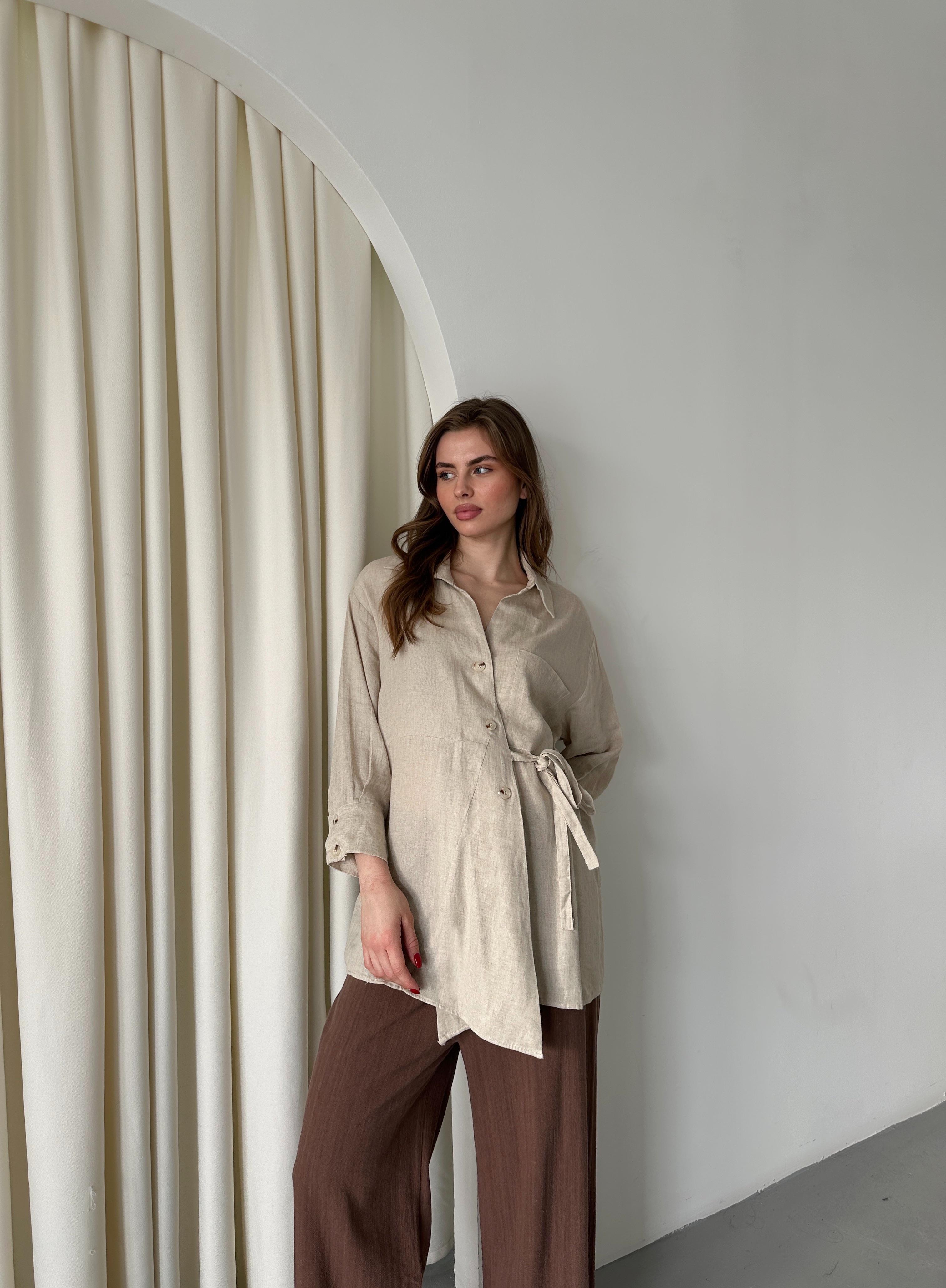 - Natural %100 Pamuk Çapraz Düğmeli Beli Kemerli Gömlek