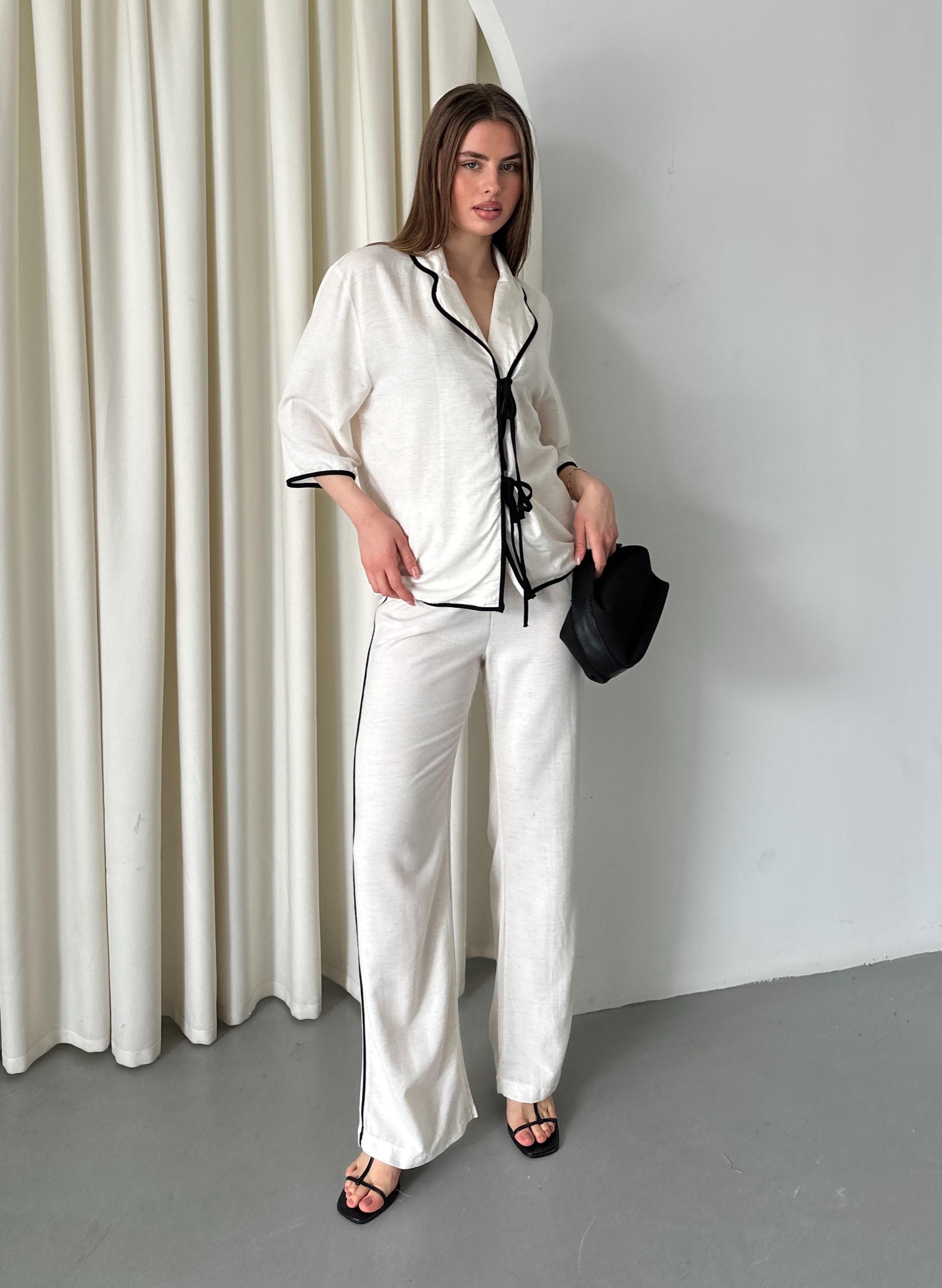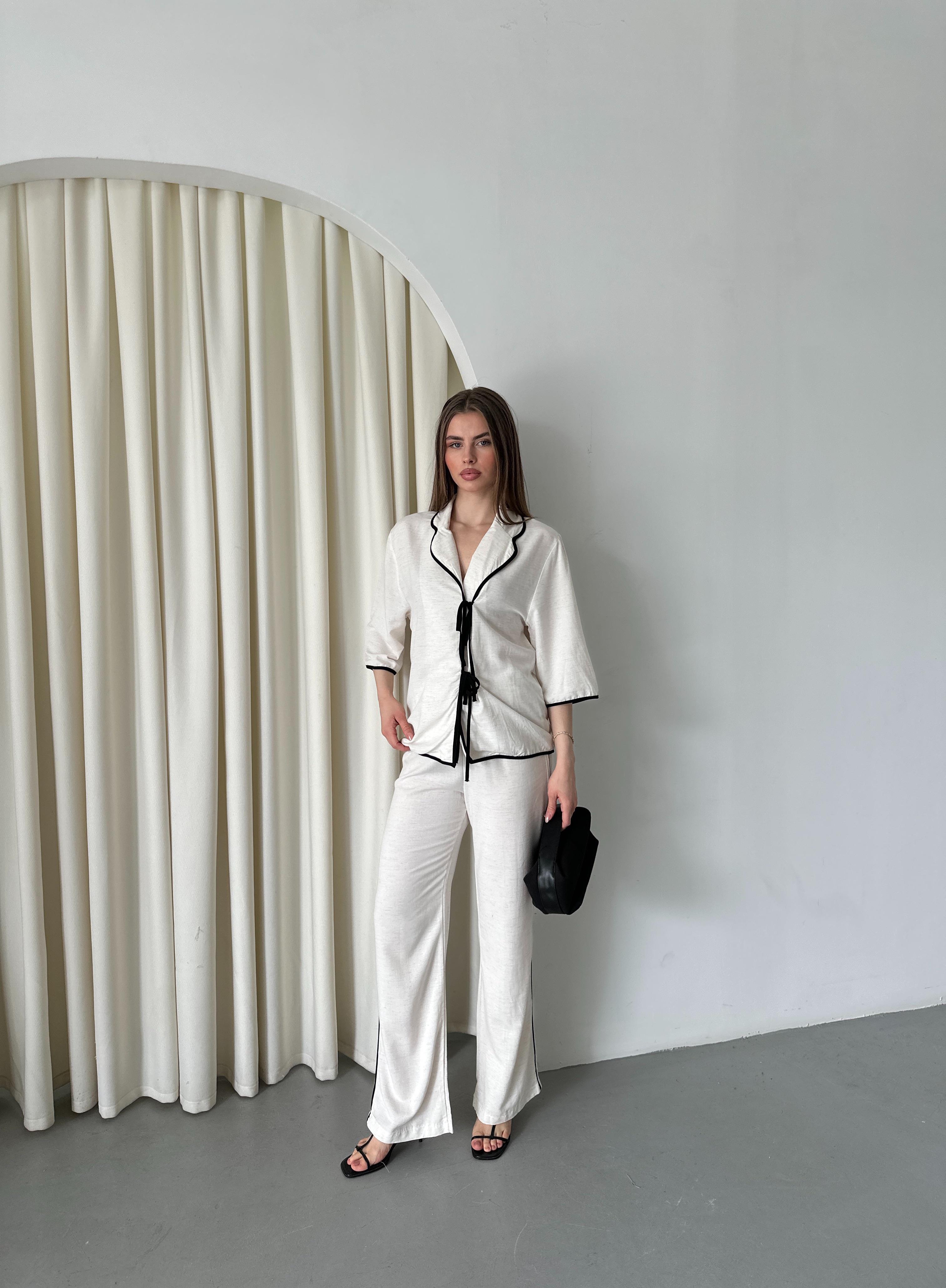 Natural - Siyah Biyeli Bluz Pantolon Takım