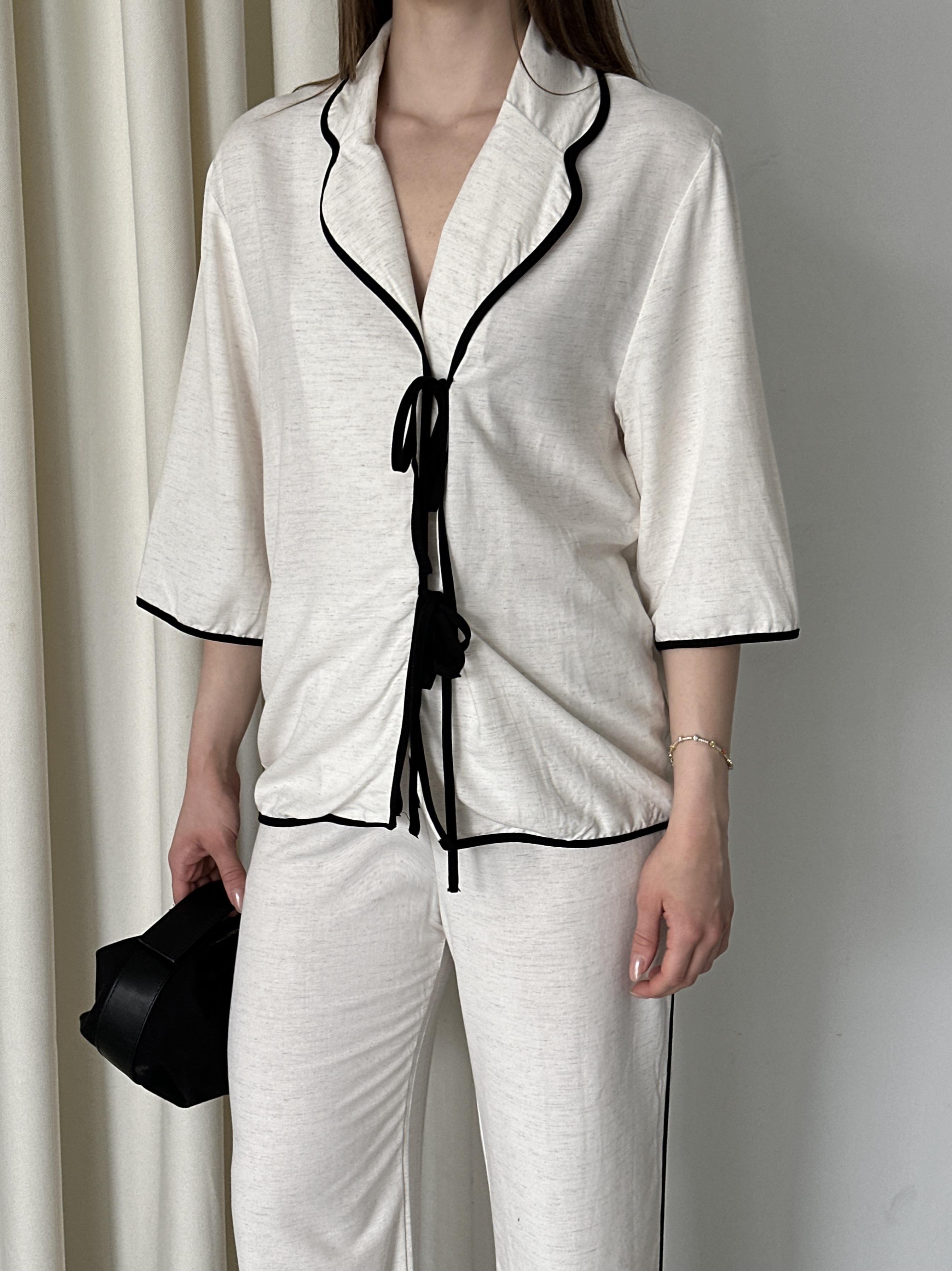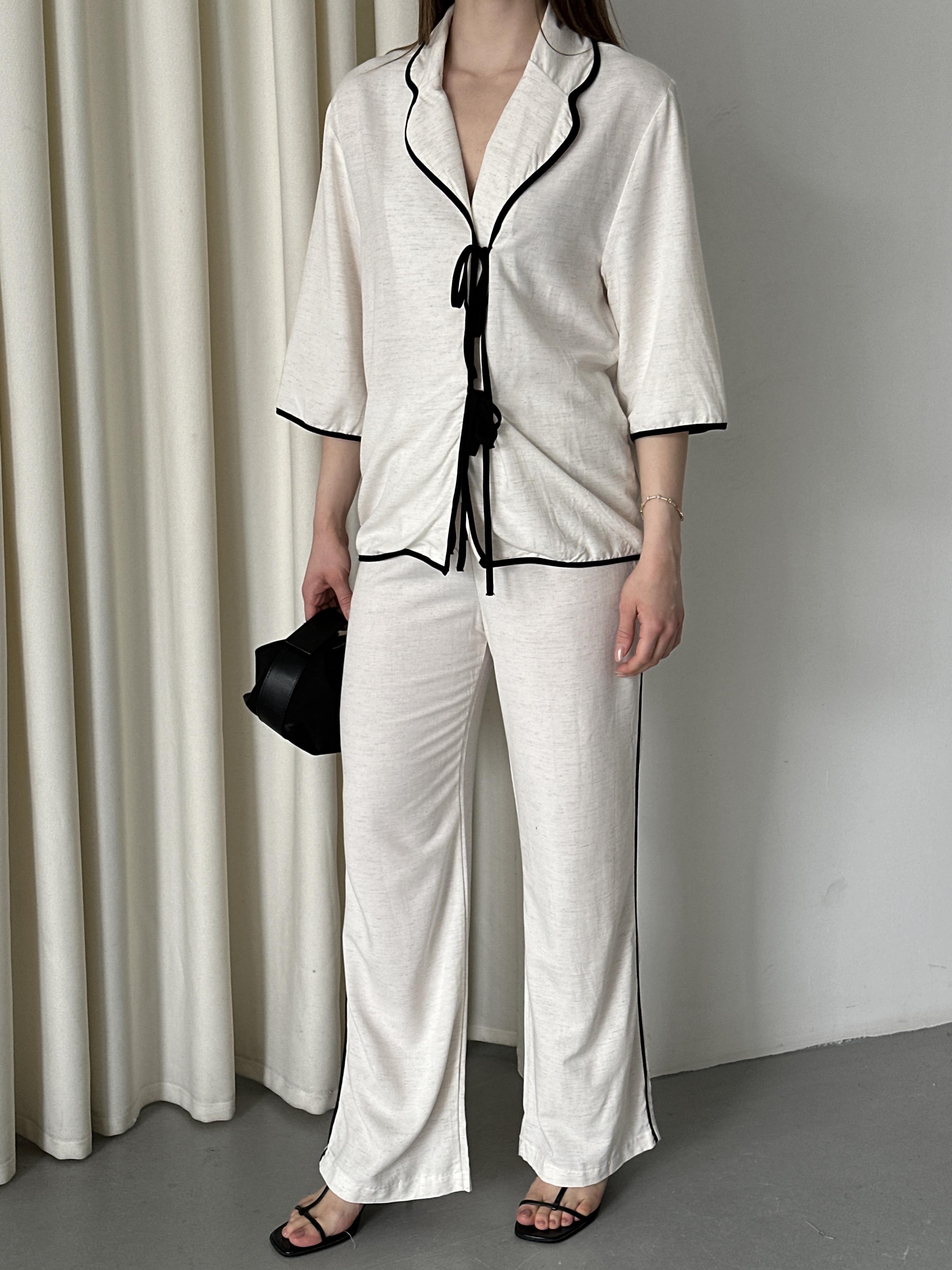 - Natural - Siyah Biyeli Bluz Pantolon Takım