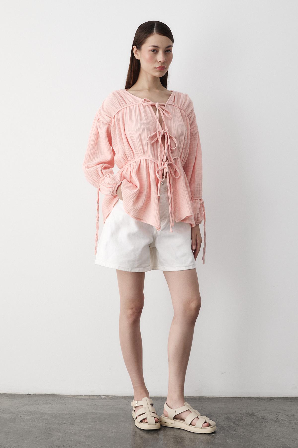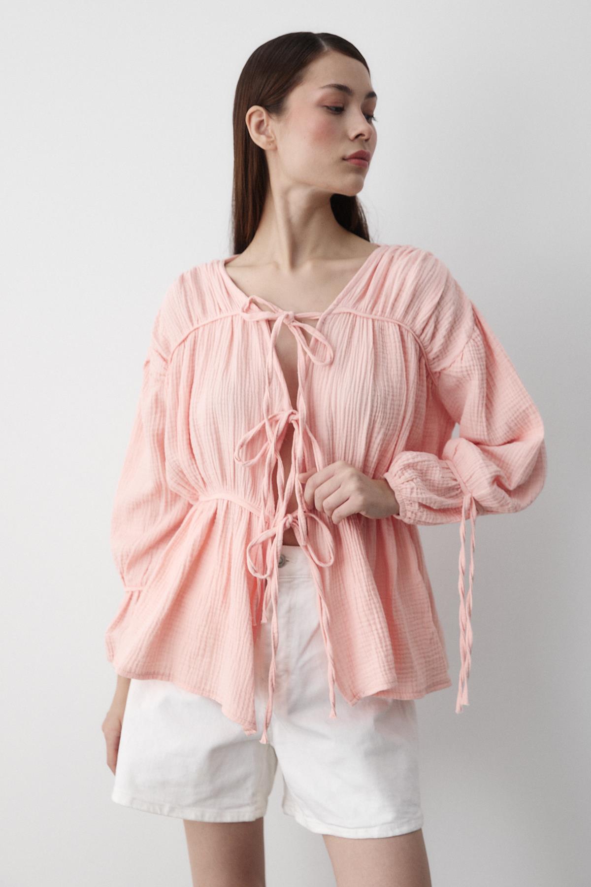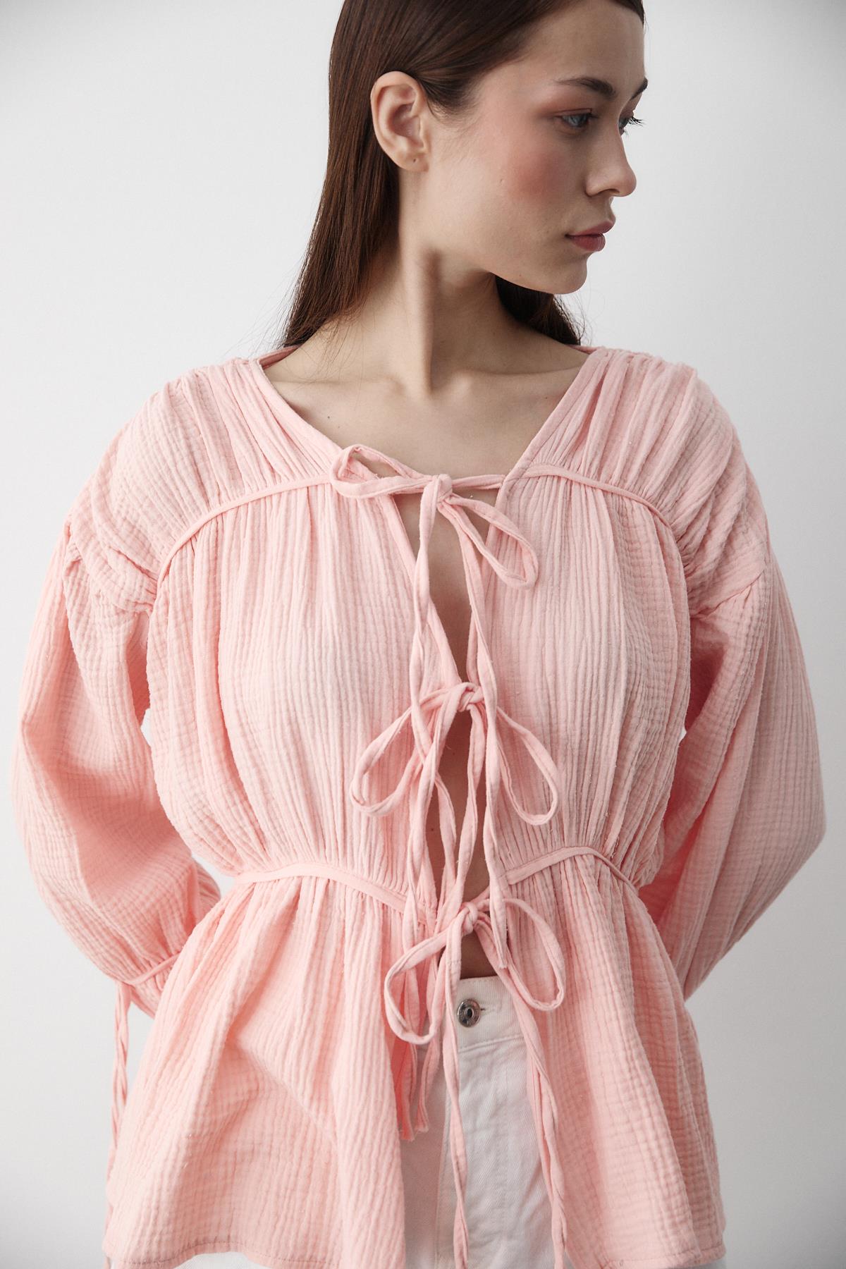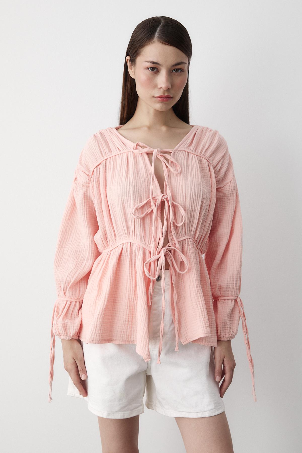 - Pembe %100 Pamuk Kolu Lastikli Müslin Gömlek