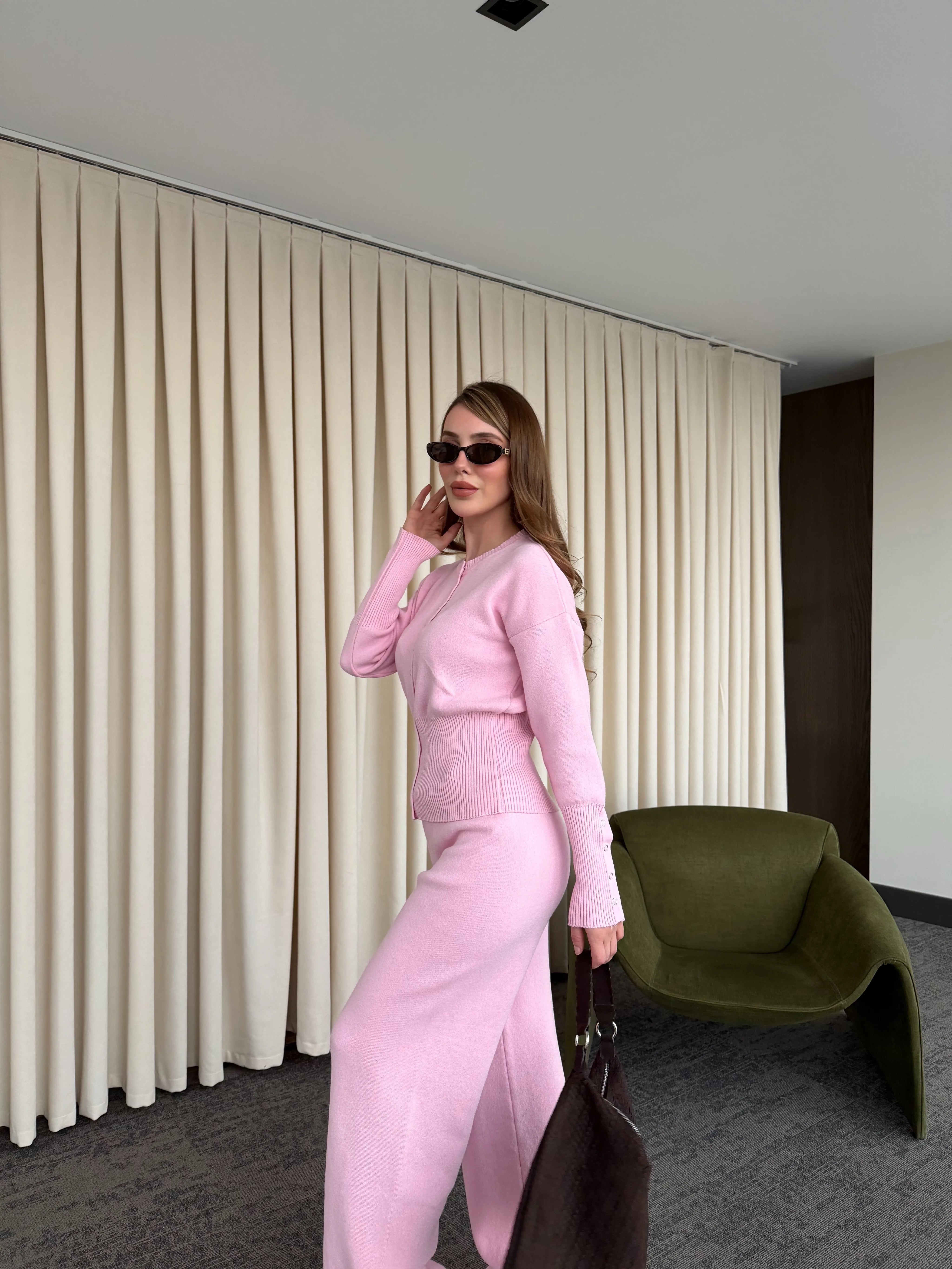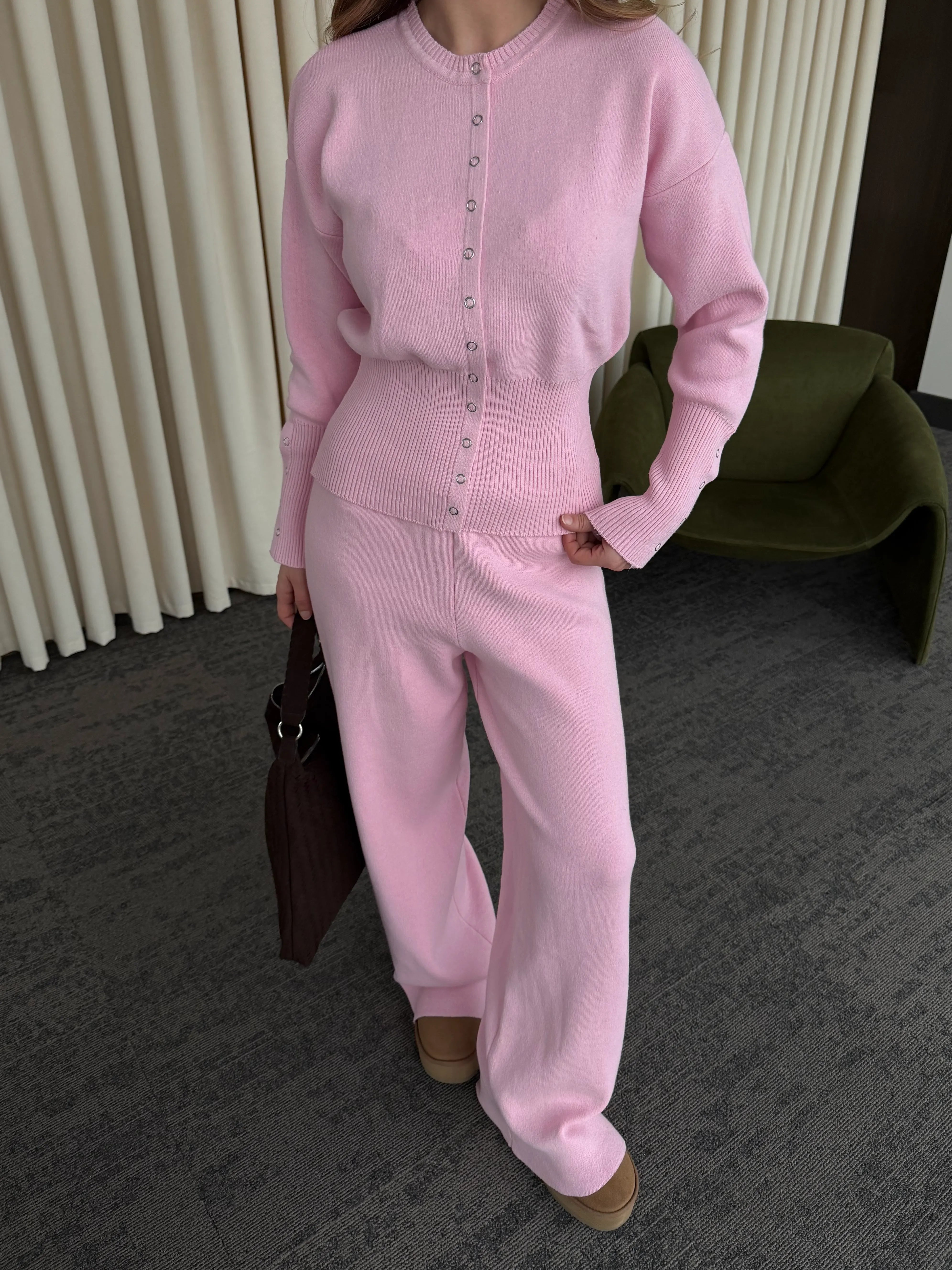 - Pembe Çıtçıt Düğmeli Triko Takım - 904