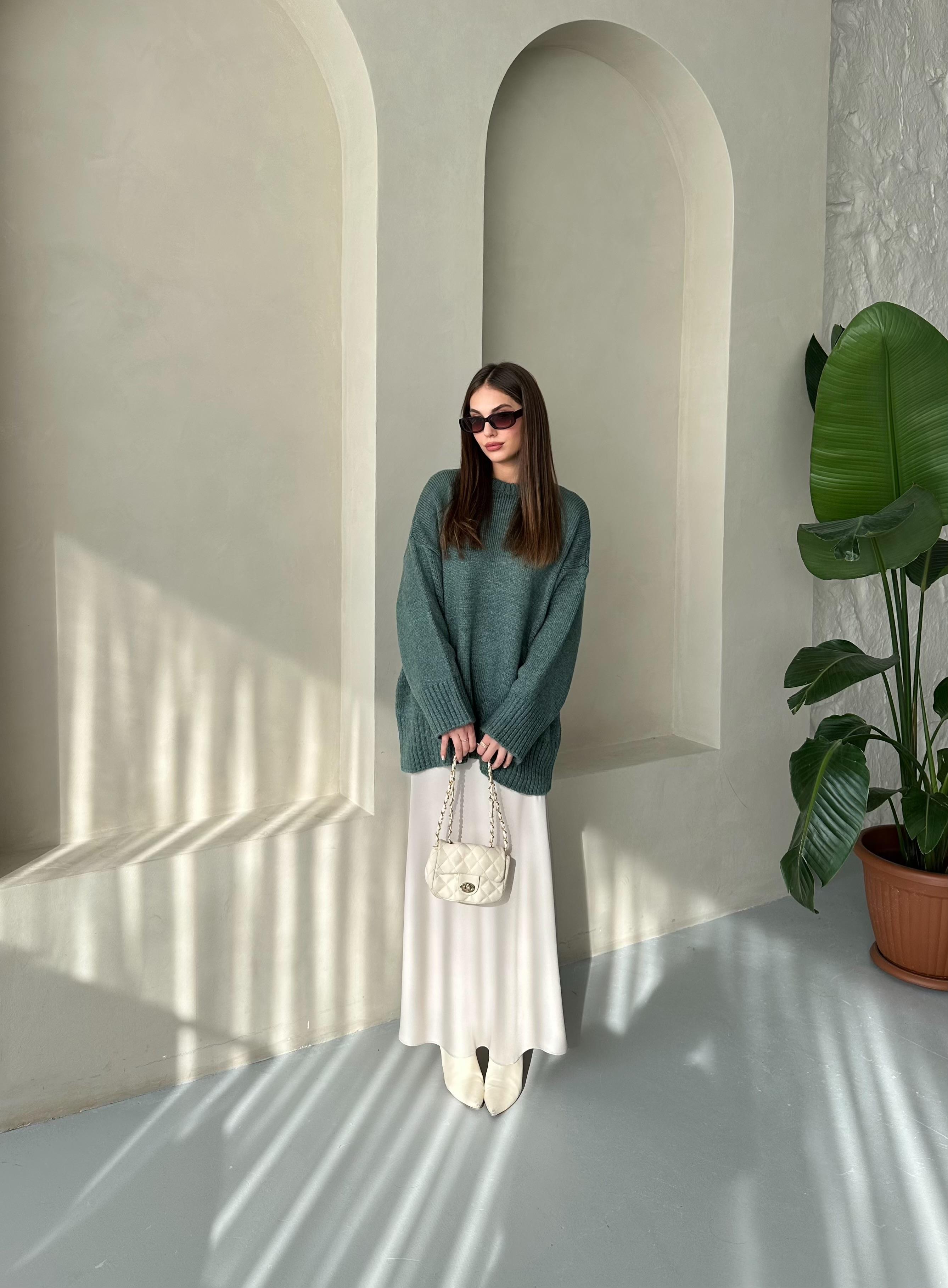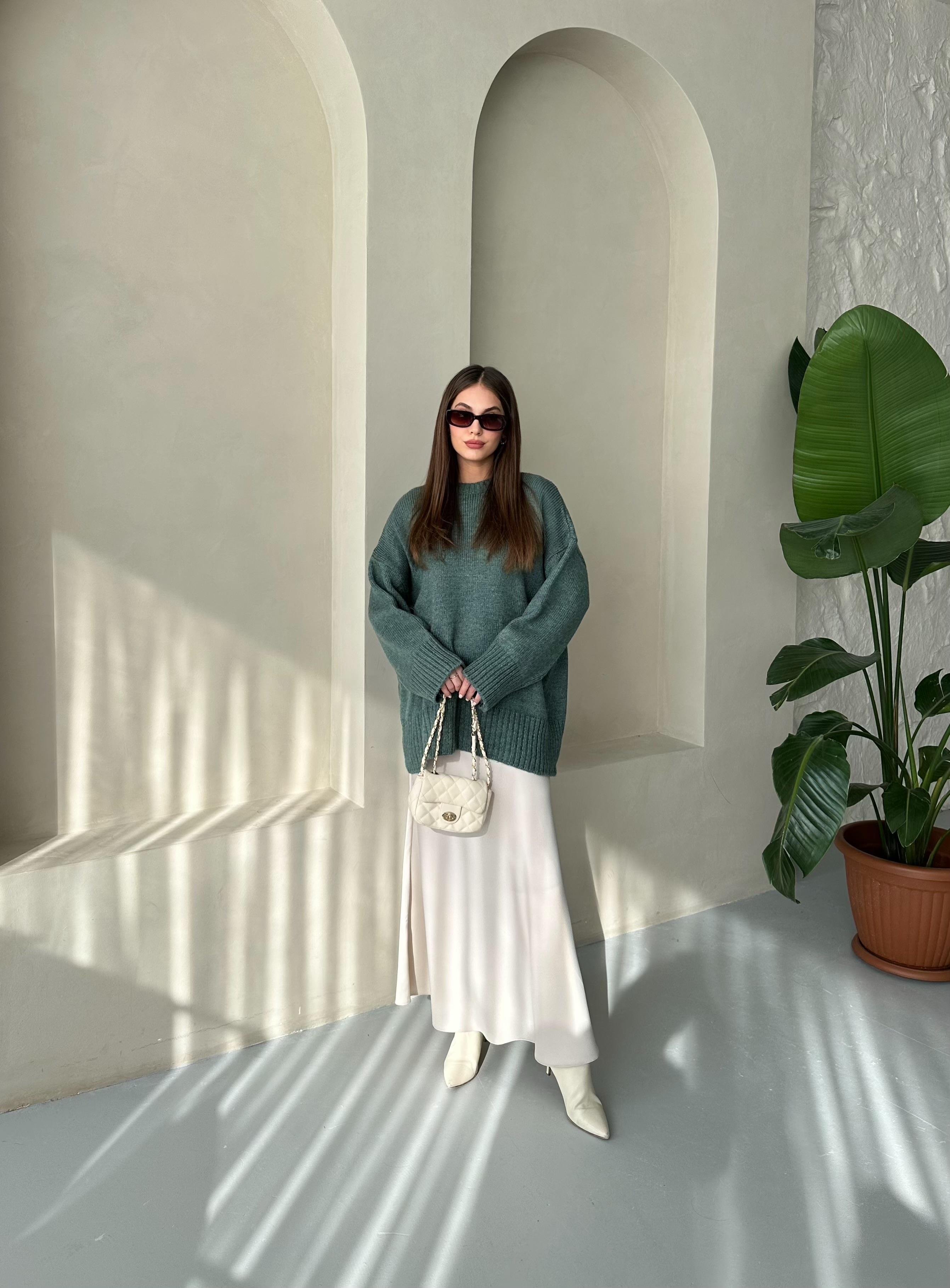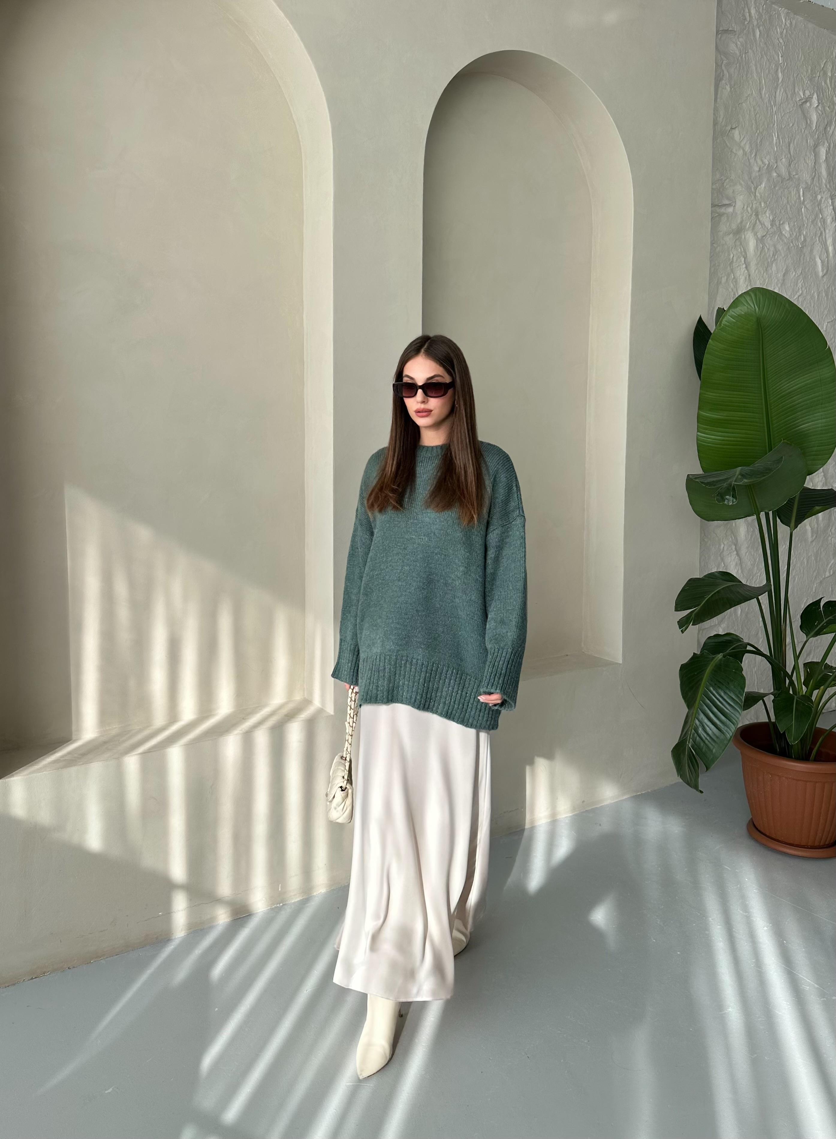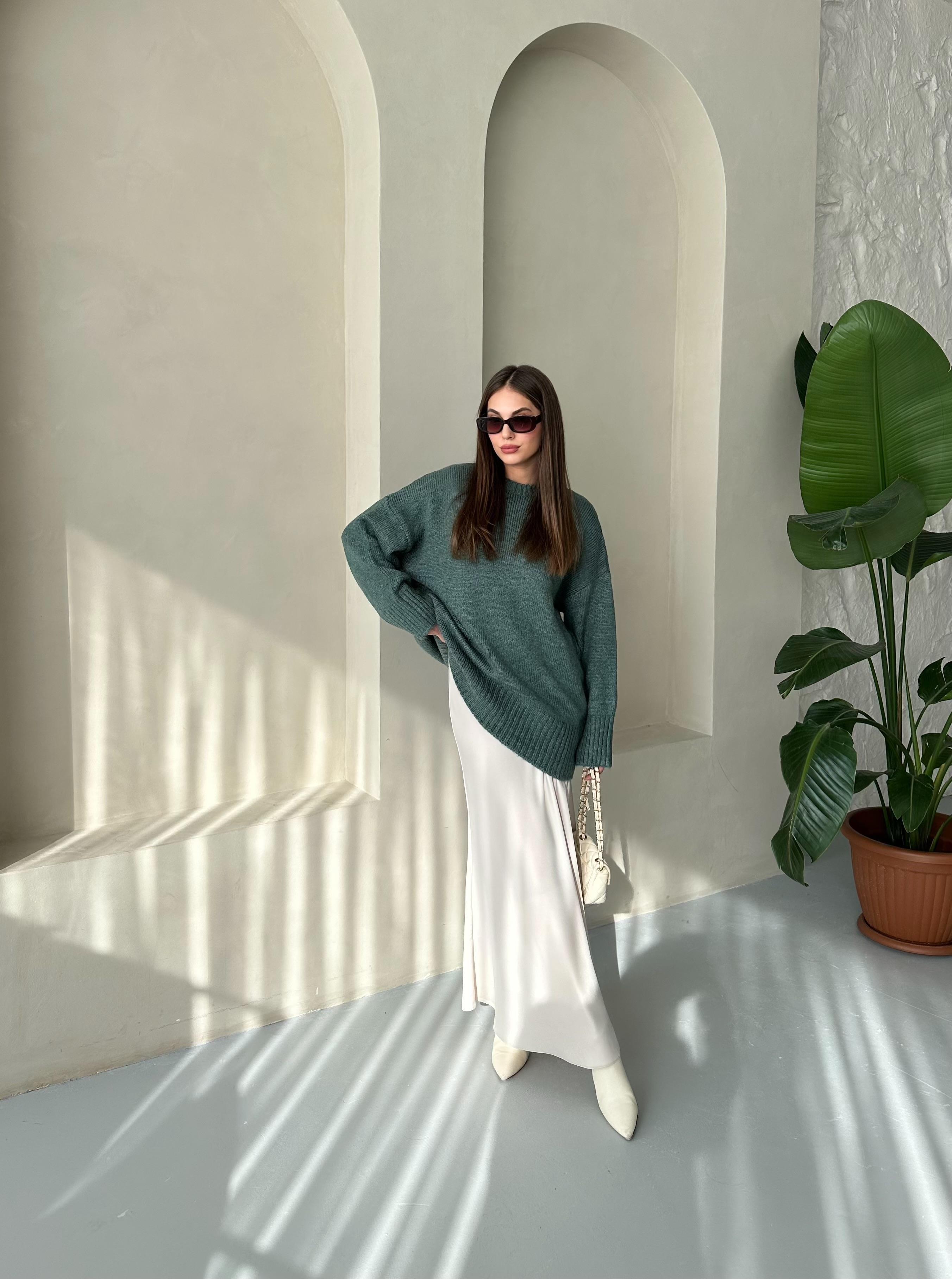 - Petrol Yeşili Düz Basic Kalın Kazak