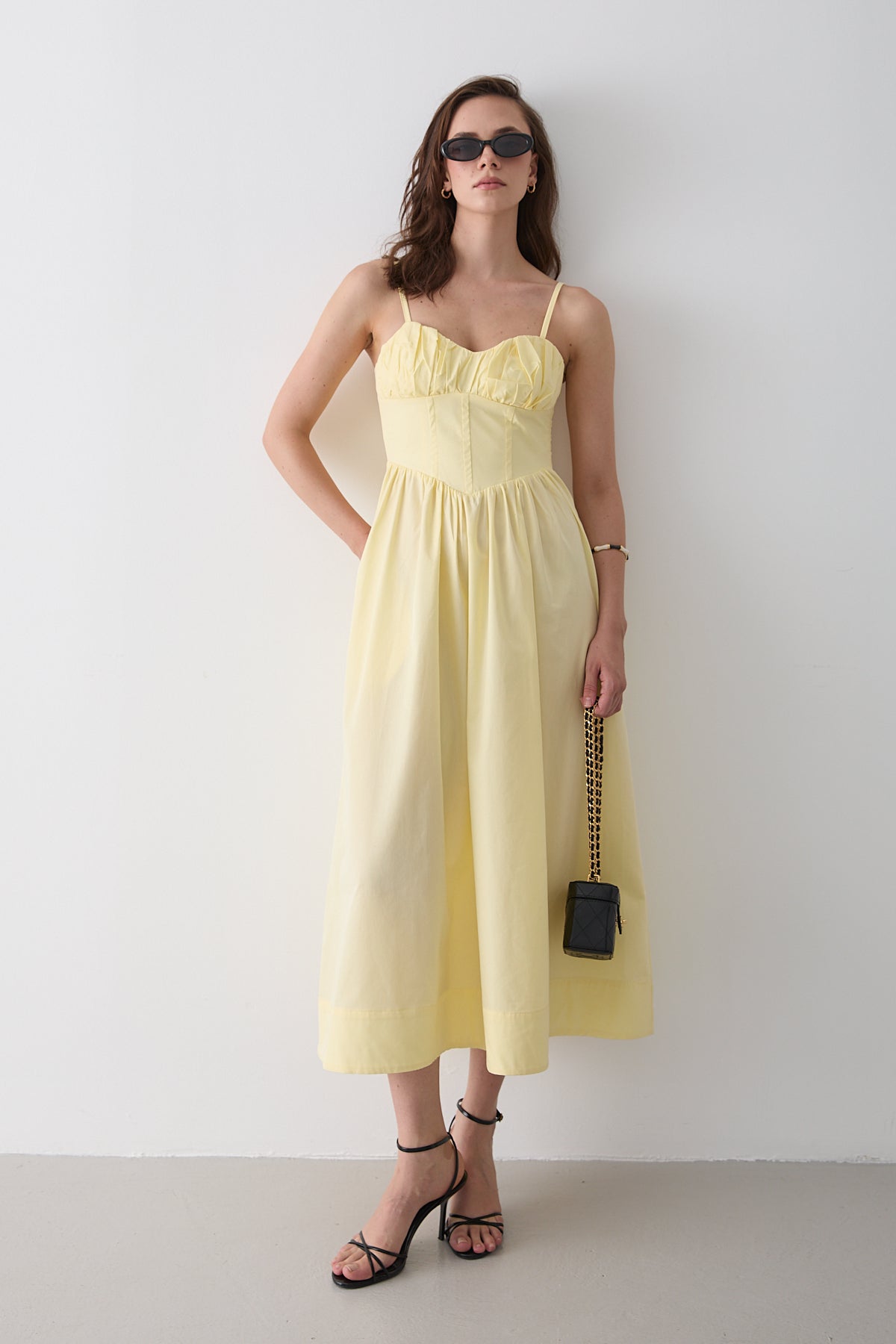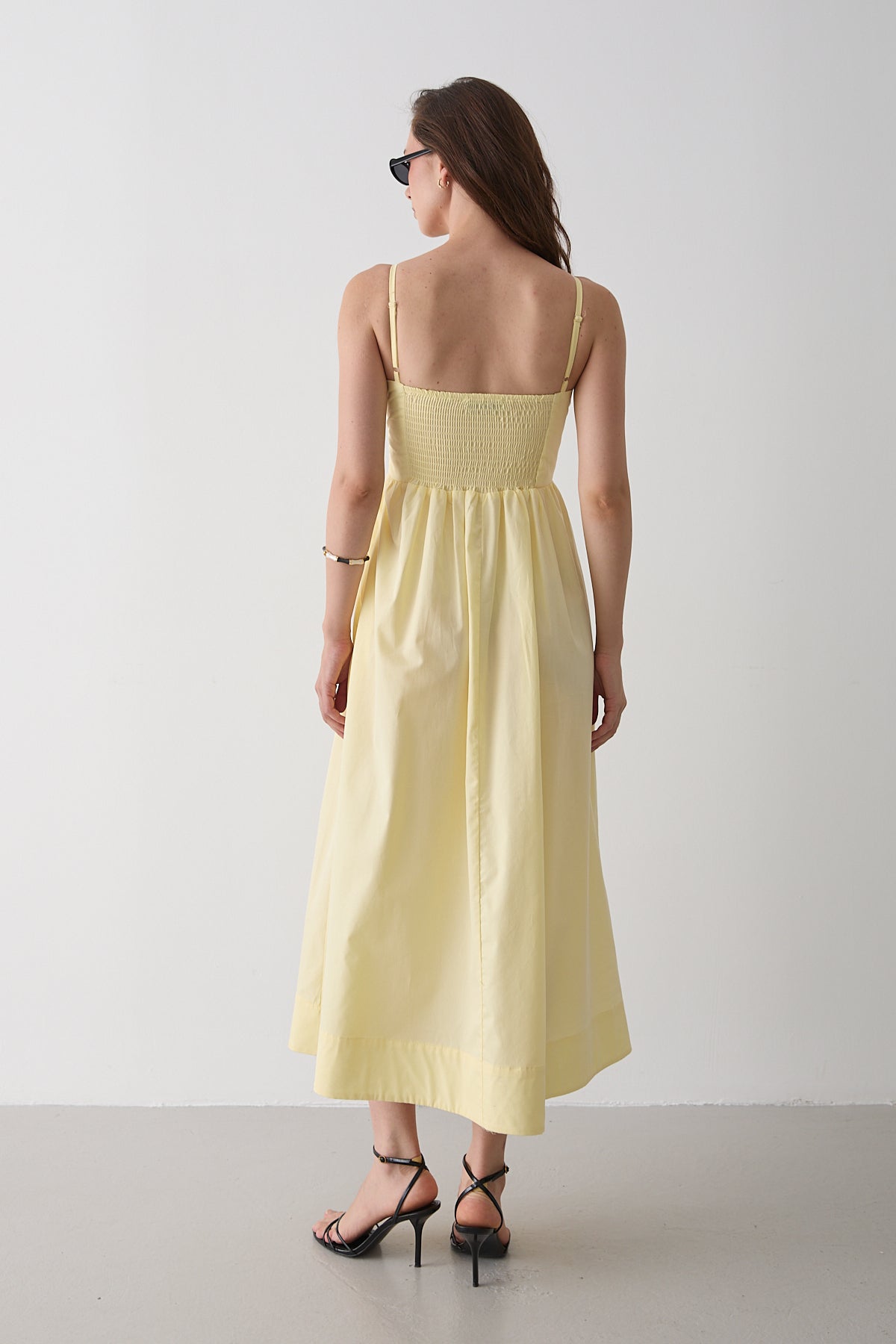 - Sarı Bel Detaylı Poplin Elbise - 2001