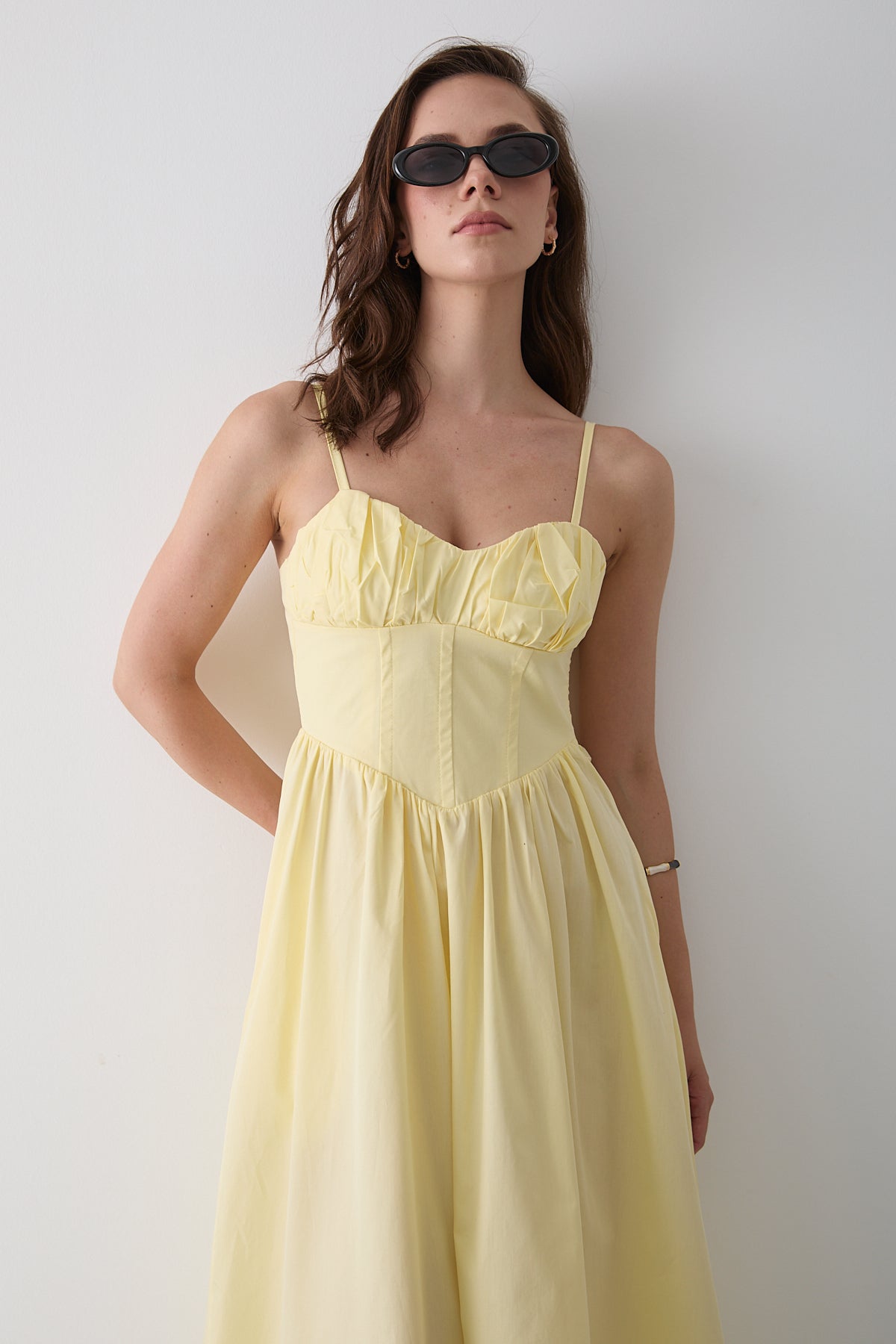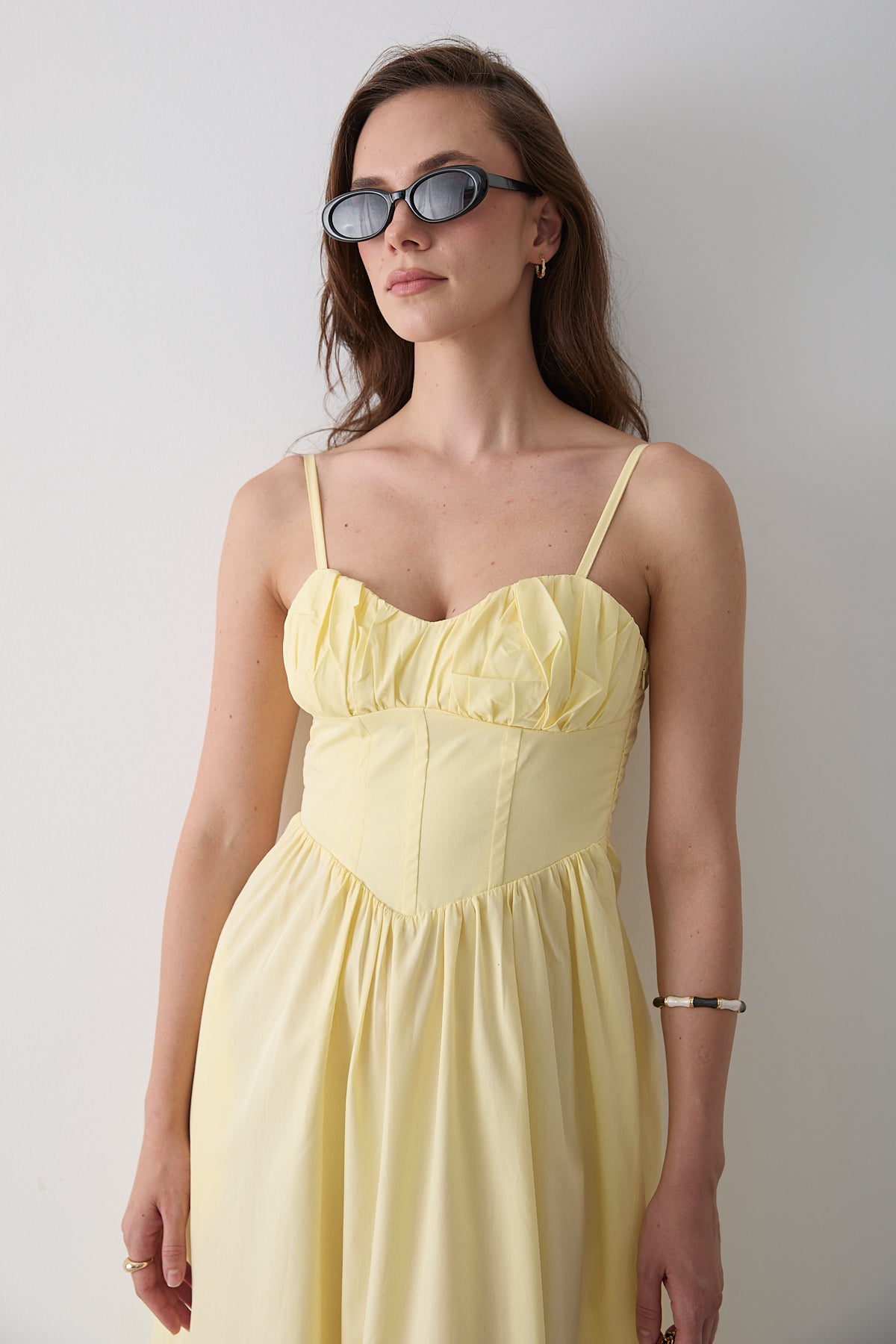 Sarı Bel Detaylı Poplin Elbise - 2001