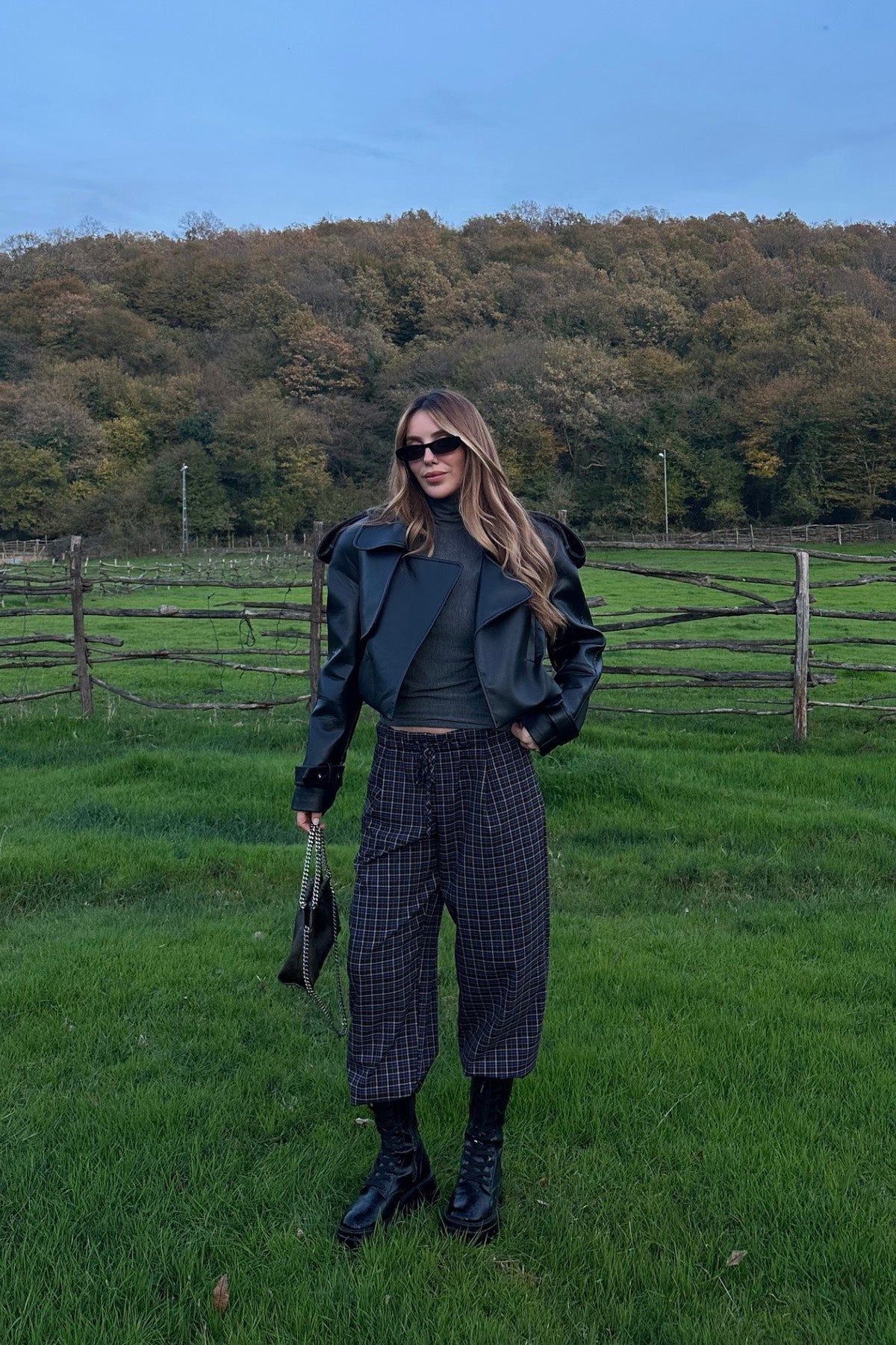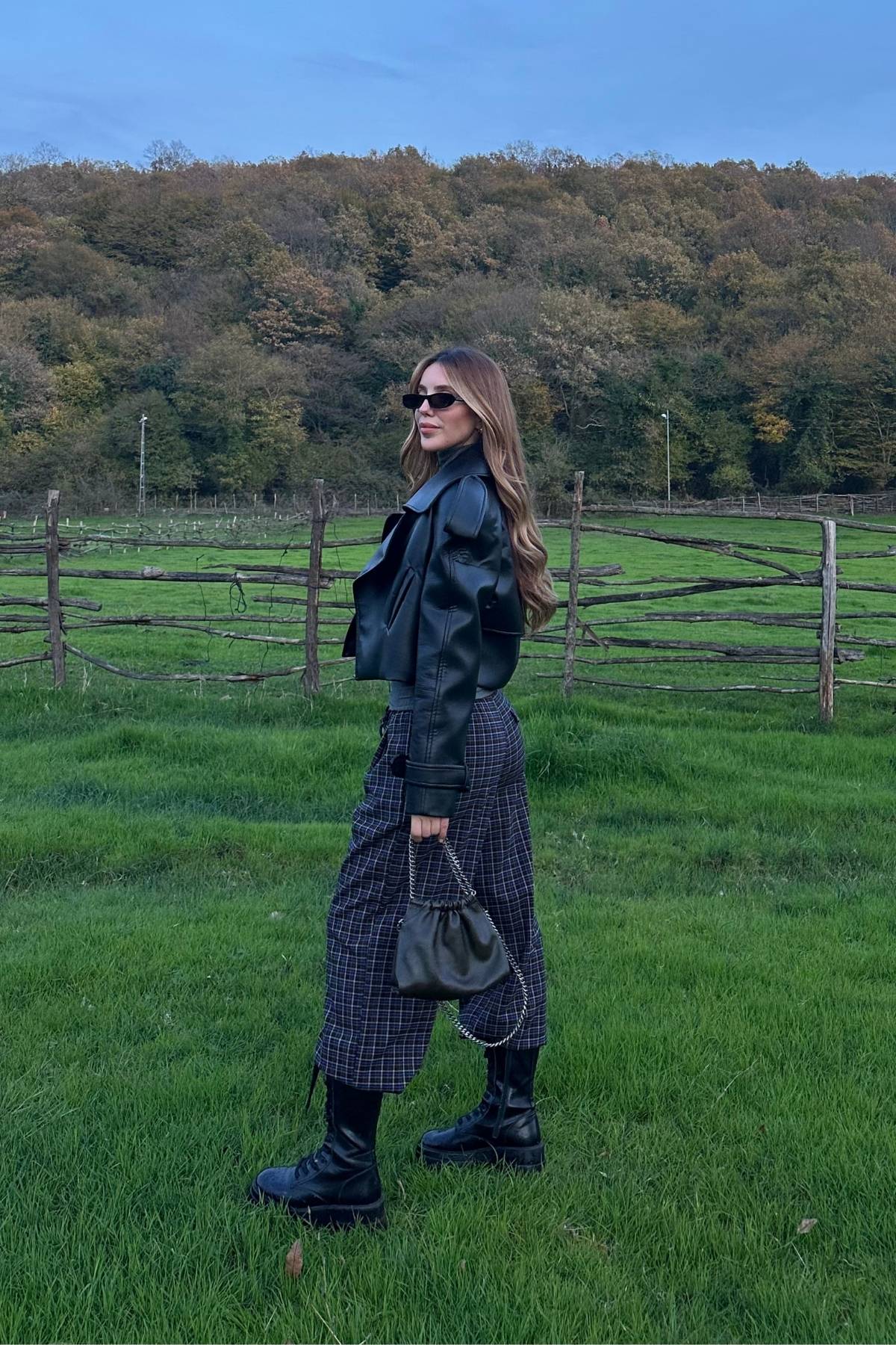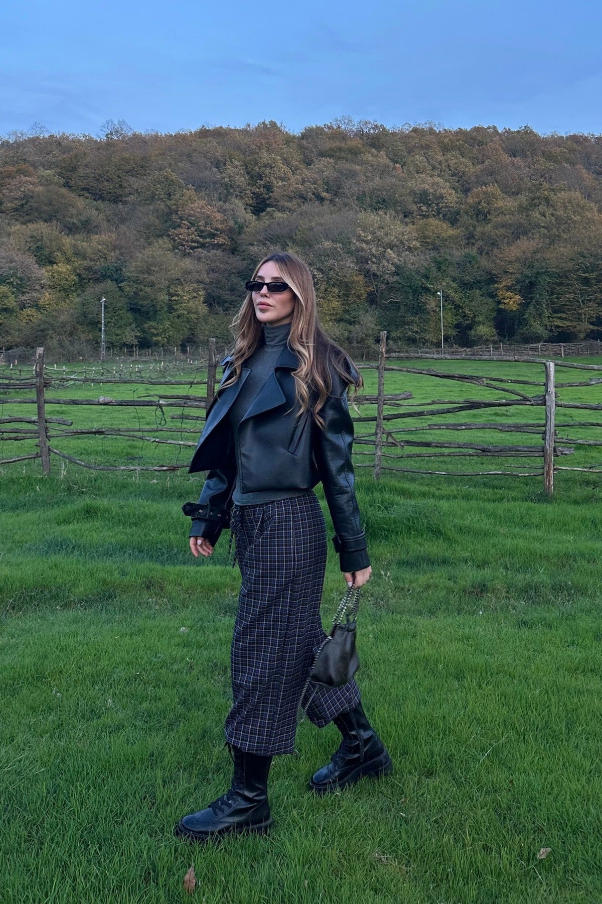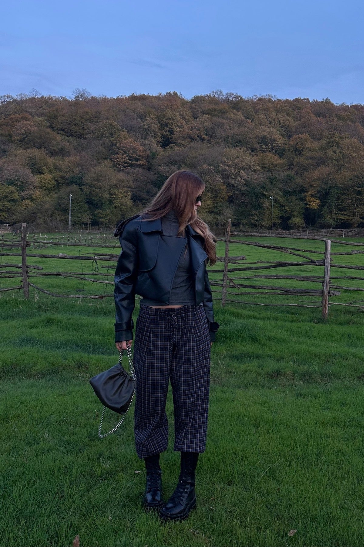 - Siyah Apolet Detaylı Tasarım Deri Ceket