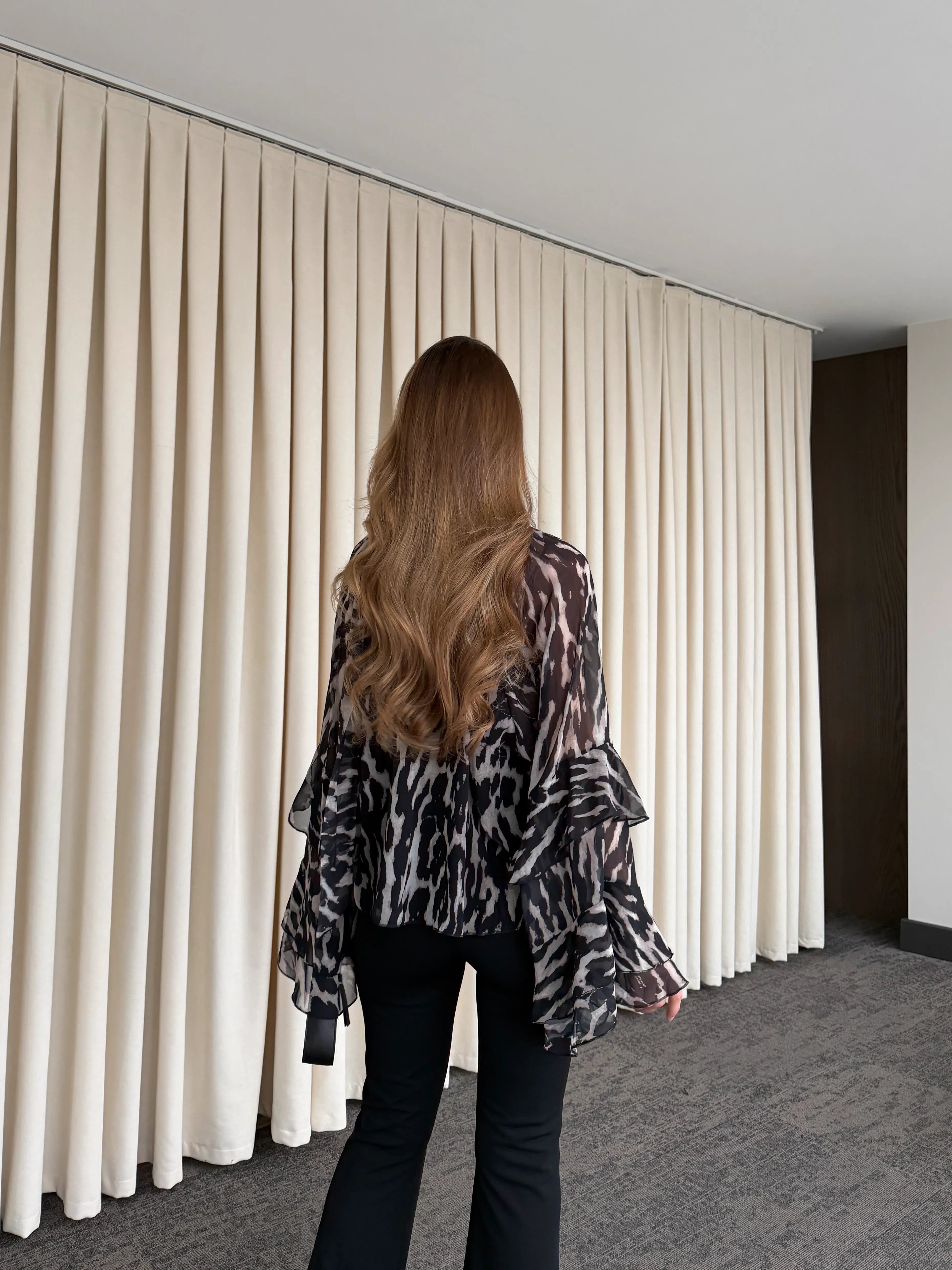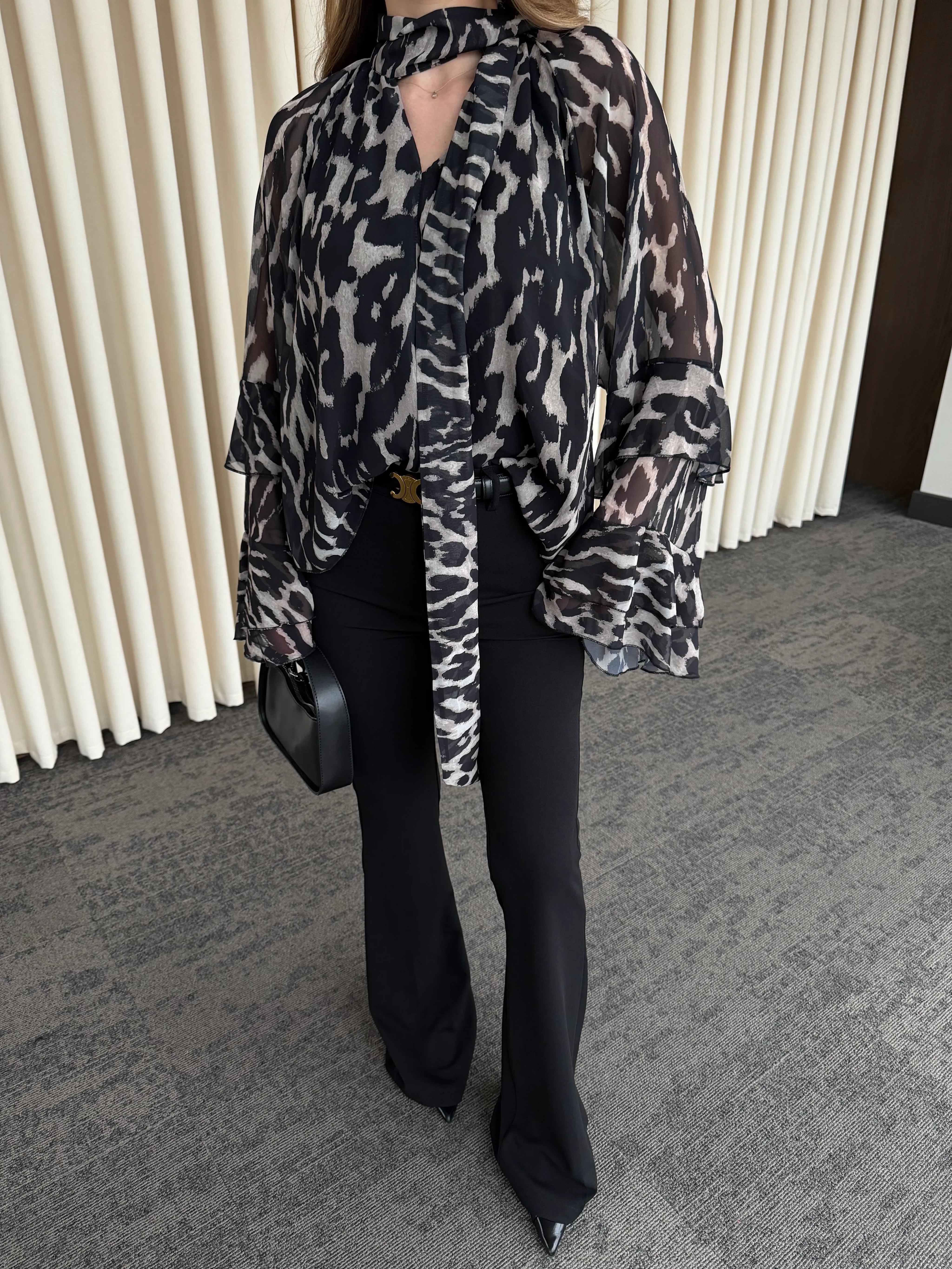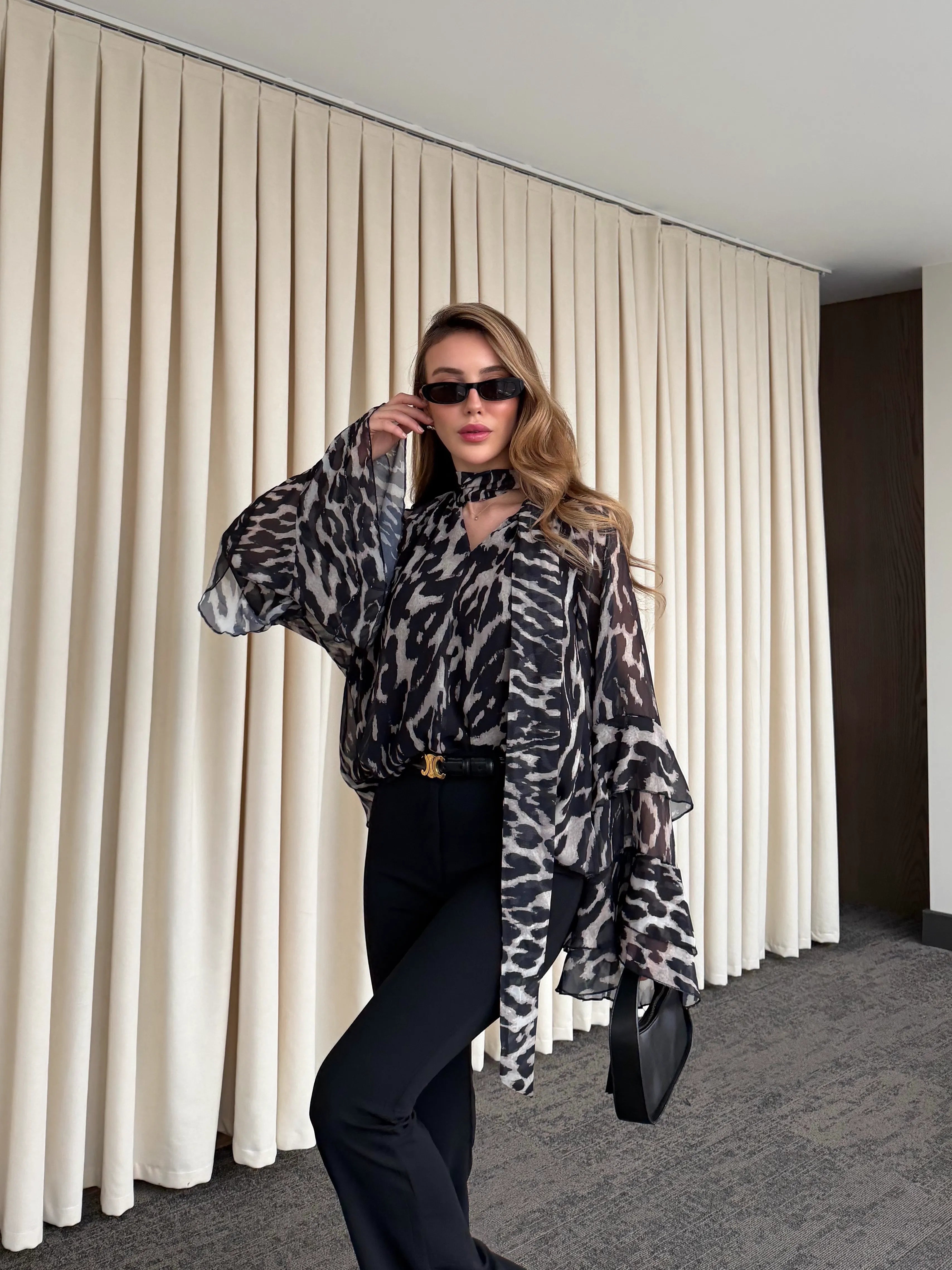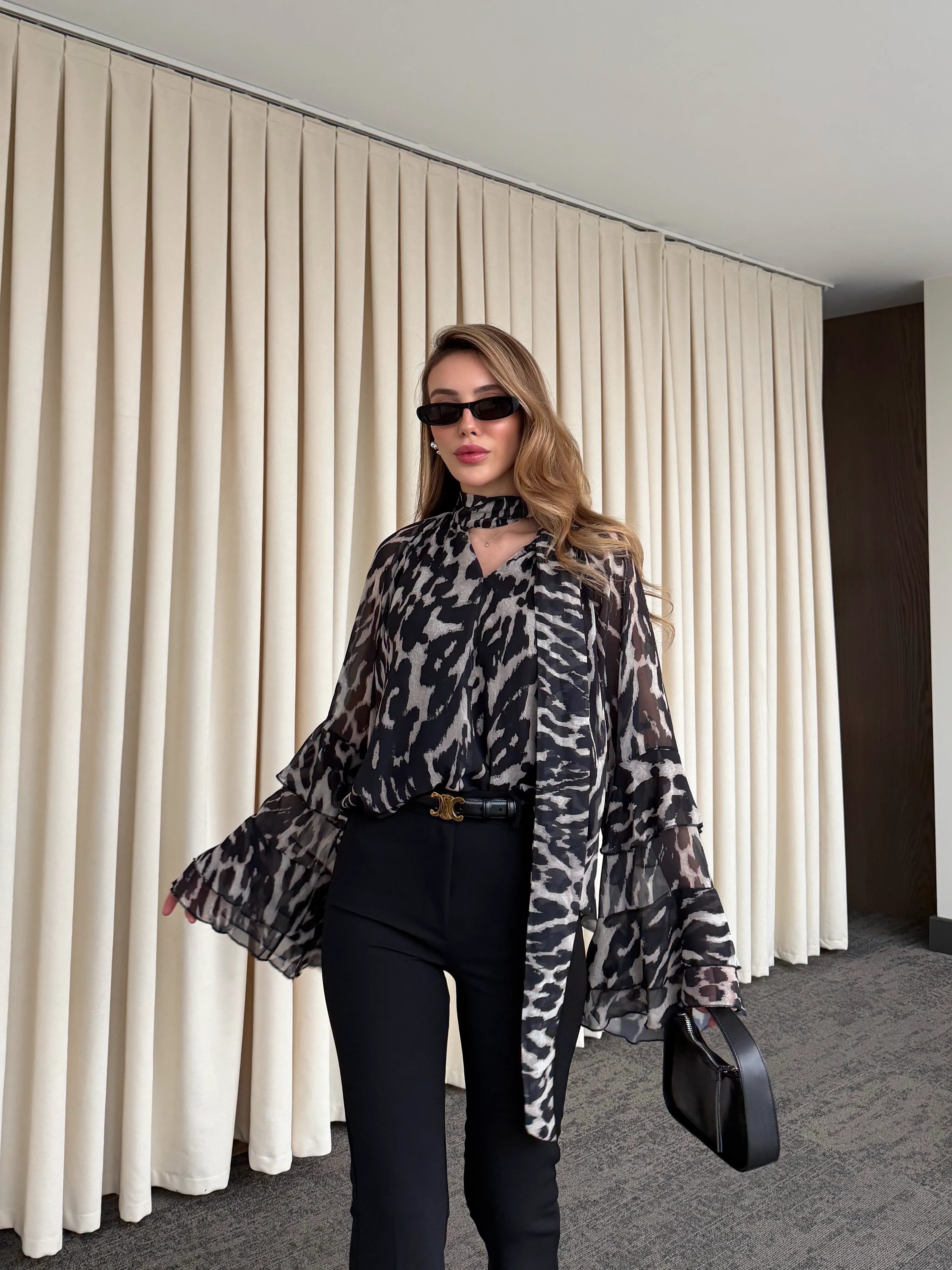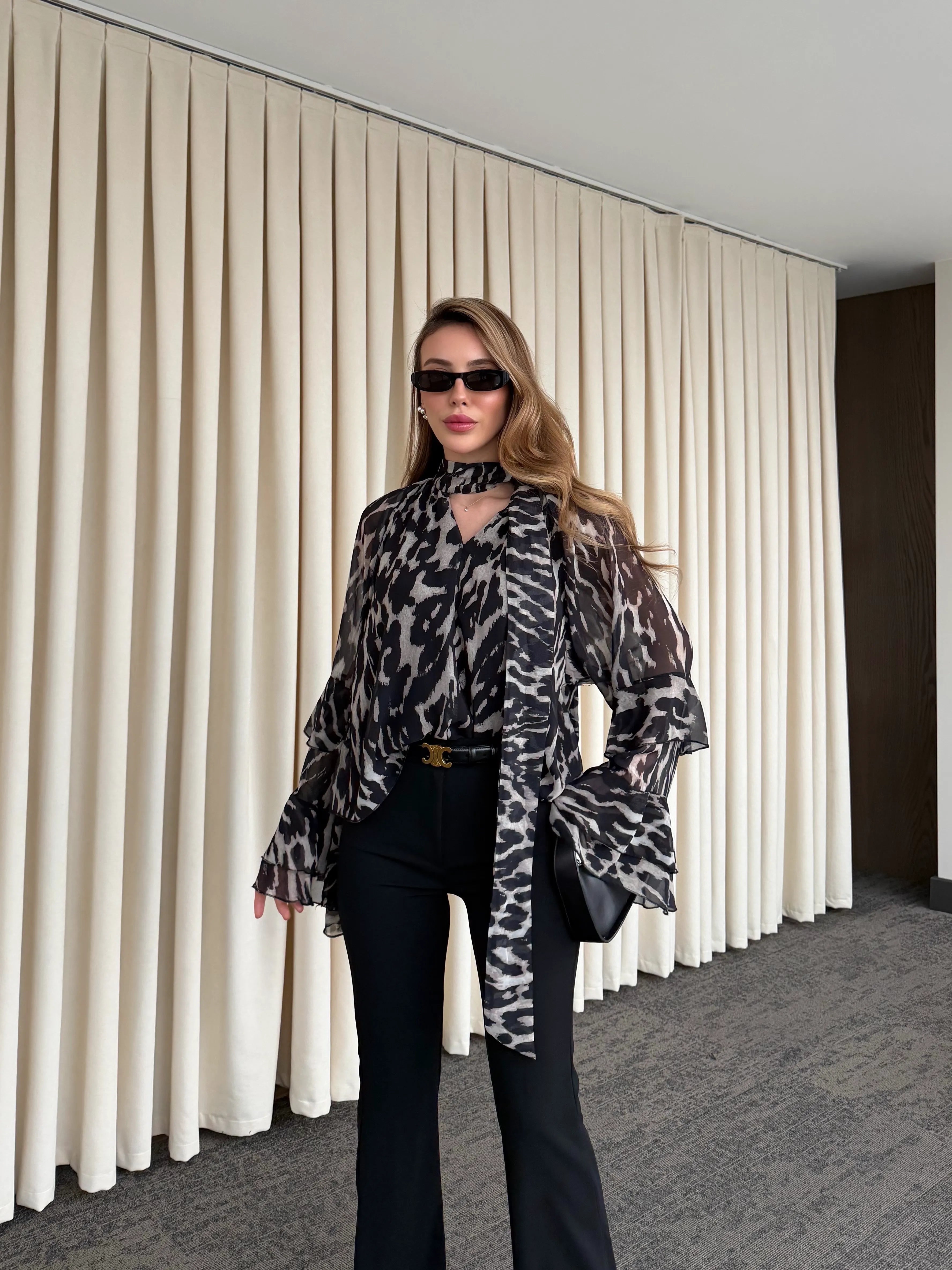 - Siyah Bağlamalı Şifon Bluz - 5024